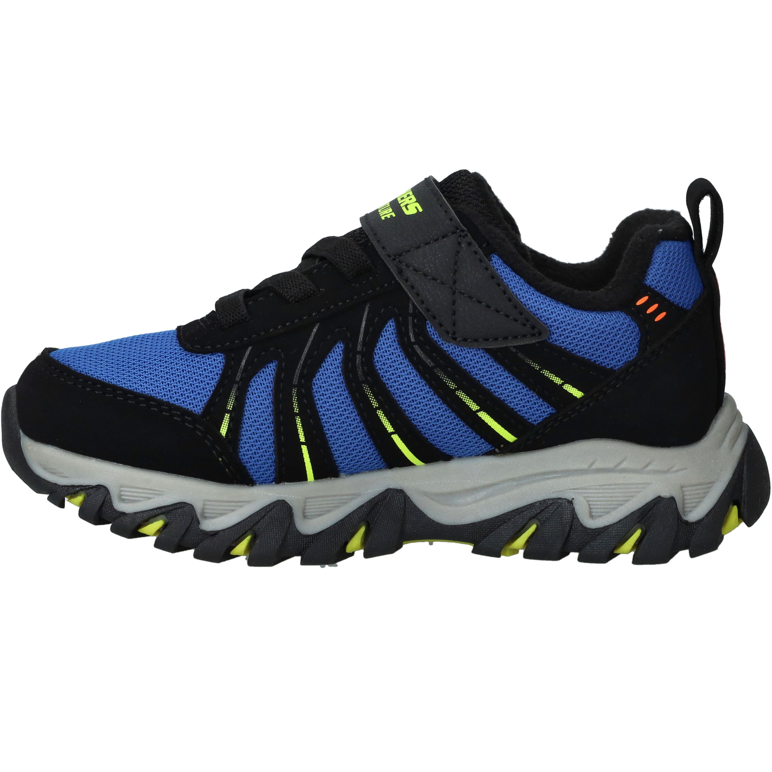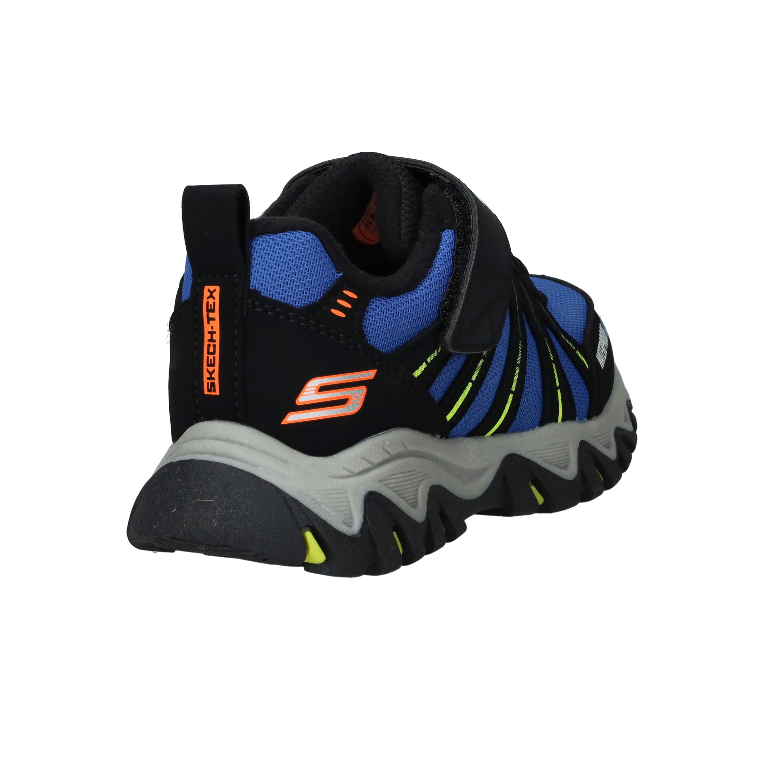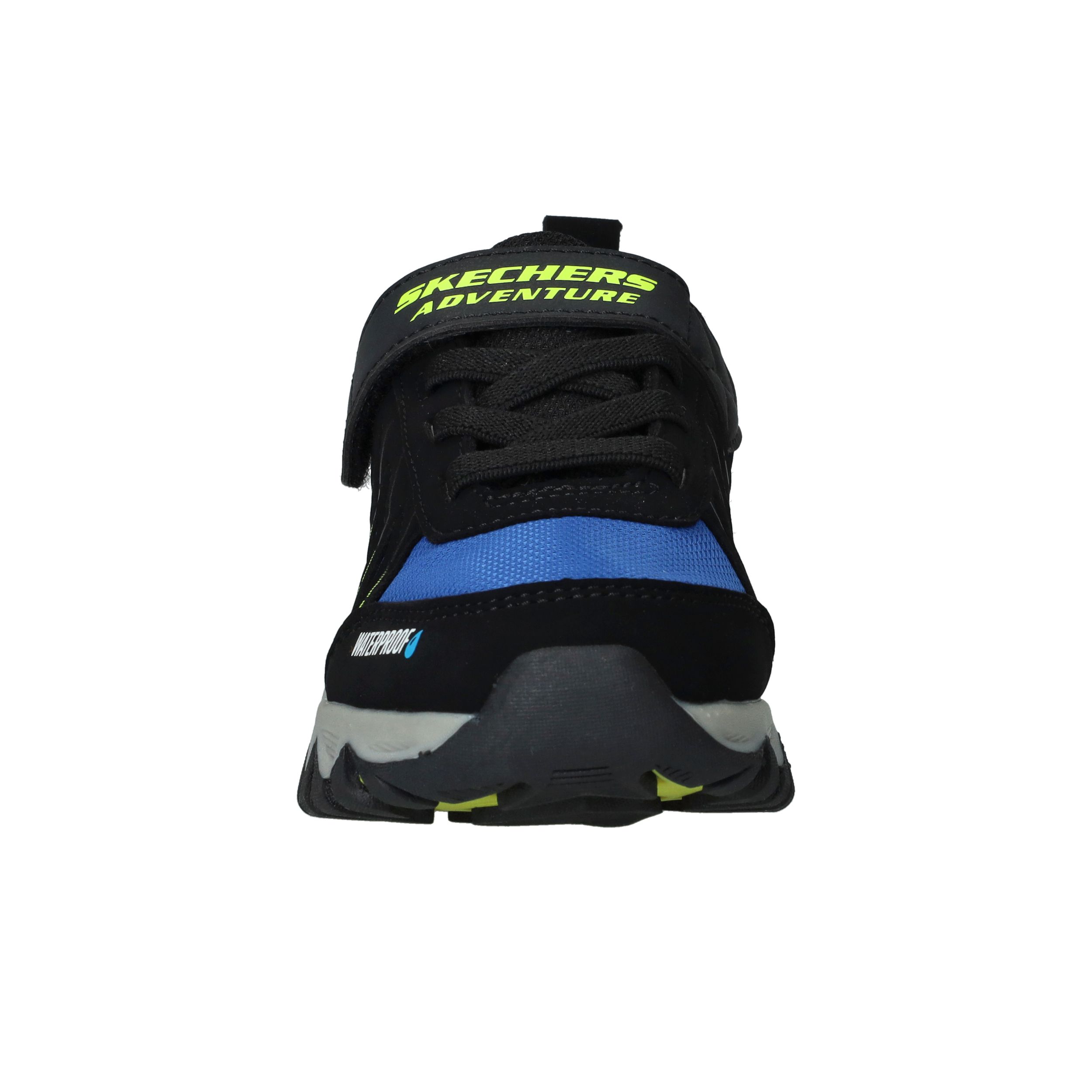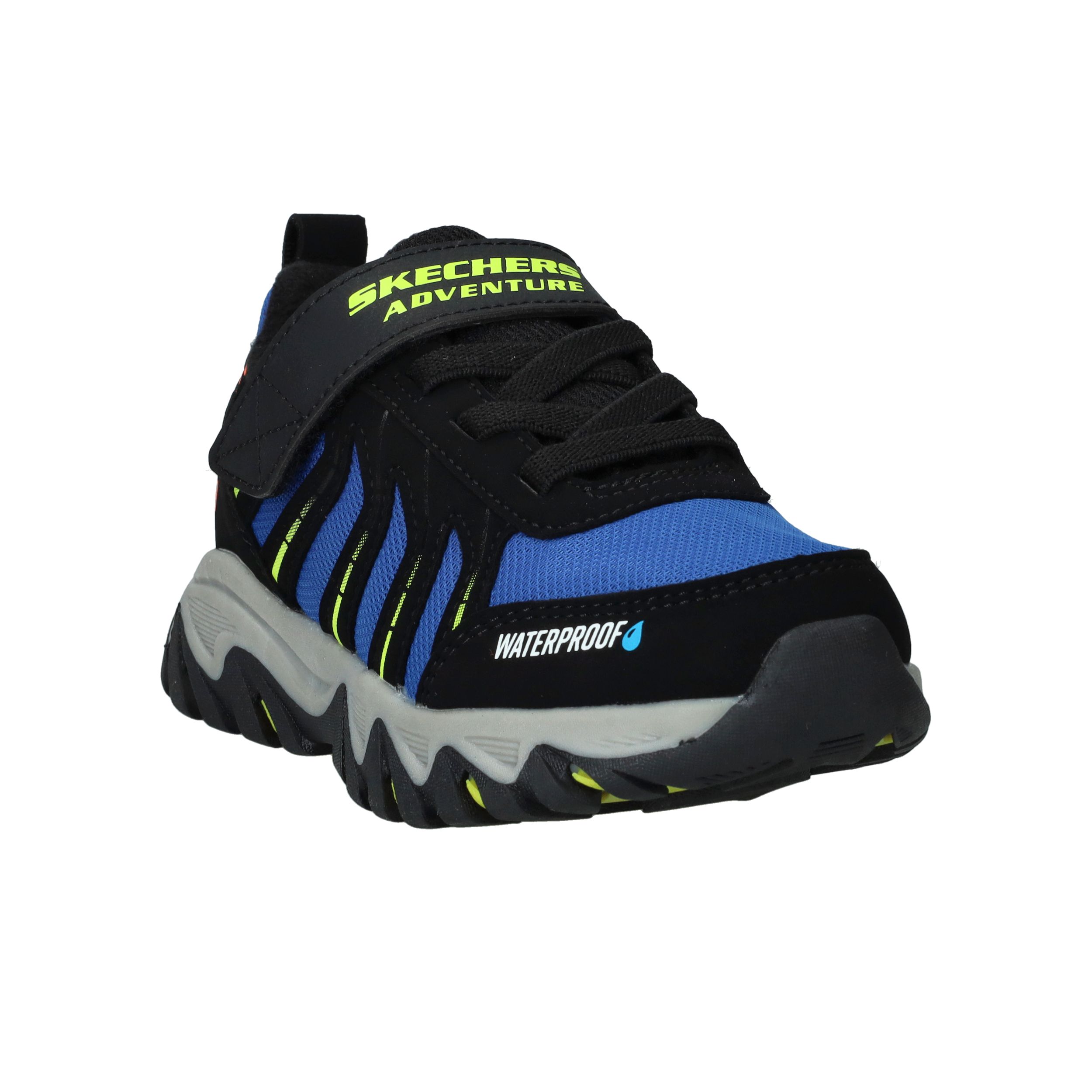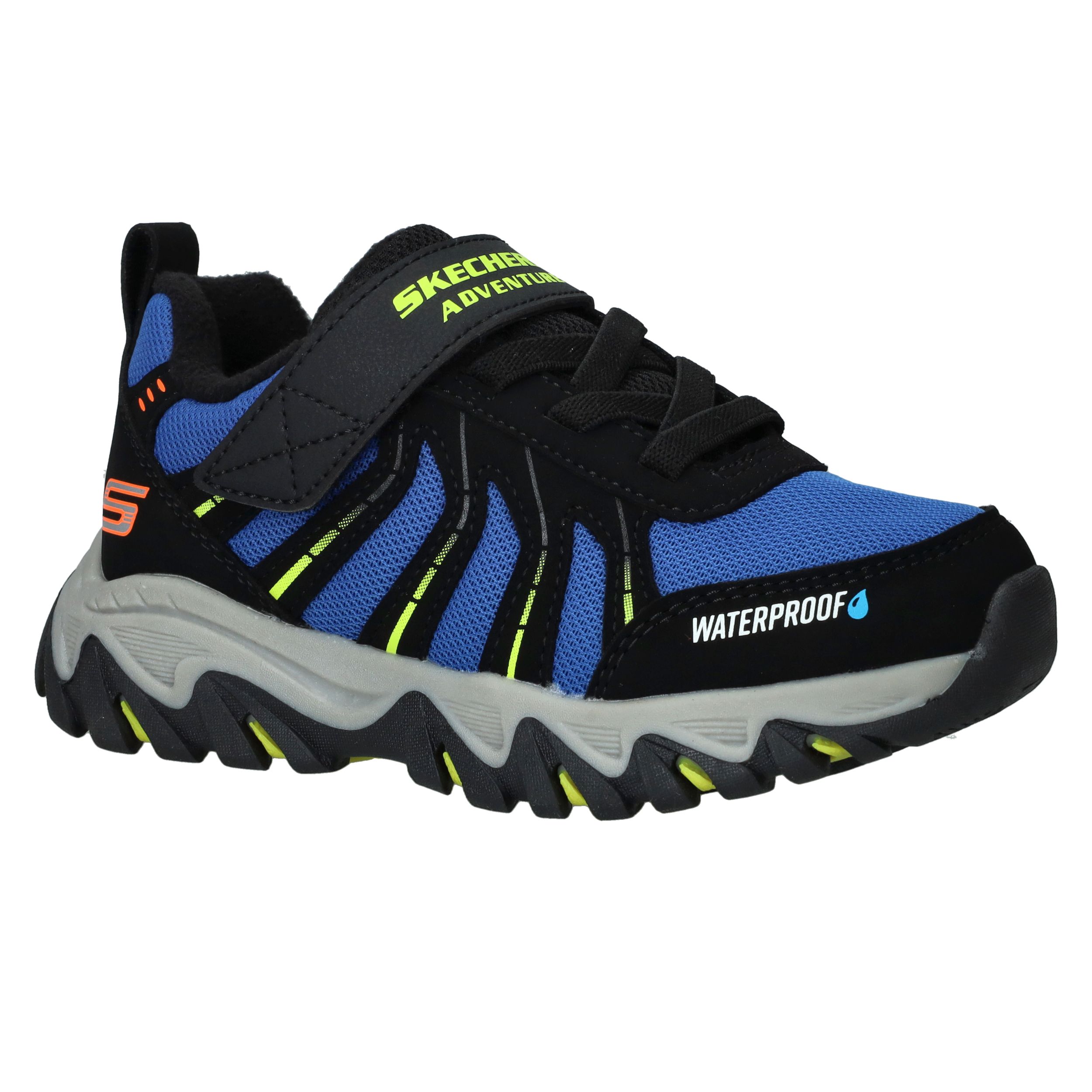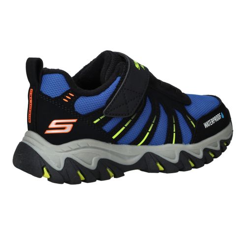 Deze stoere sneakers van Skechers zijn gemaakt voor kleine avonturiers. De combinatie van synthetisch materiaal en ademend textiel zorgt voor een stevige maar comfortabele pasvorm. Dankzij het waterproof design kunnen jongens zorgeloos buitenspelen, ook bij regenachtig weer. Ideaal voor actieve dagen vol ontdekking.
