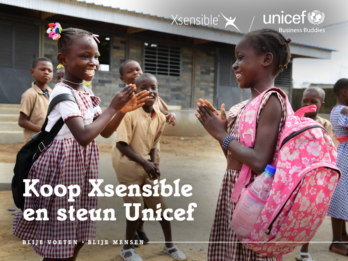 Xsensible brengt niet alleen comfort aan je voeten, maar ook hoop elders. Bij aankoop van een paar Xsensible schoenen, doneer je namelijk 1 bouwsteen voor Unicef Plastic Bouwstenen. Met jouw steun bouwt Unicef in Ivoorkust nieuwe klaslokalen van gerecycled plastic afval. Zo dragen we allemaal samen bij aan het oplossen van het afvalprobleem en geven we duizenden kinderen toegang tot onderwijs met het Unicef Business Buddies project. Bekijk meer informatie over dit project hieronder of op de website van Unicef.