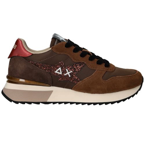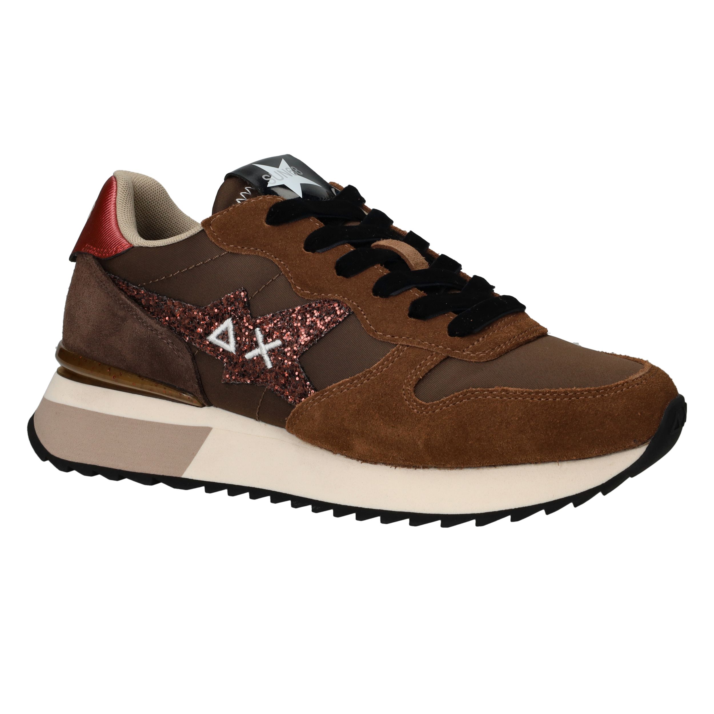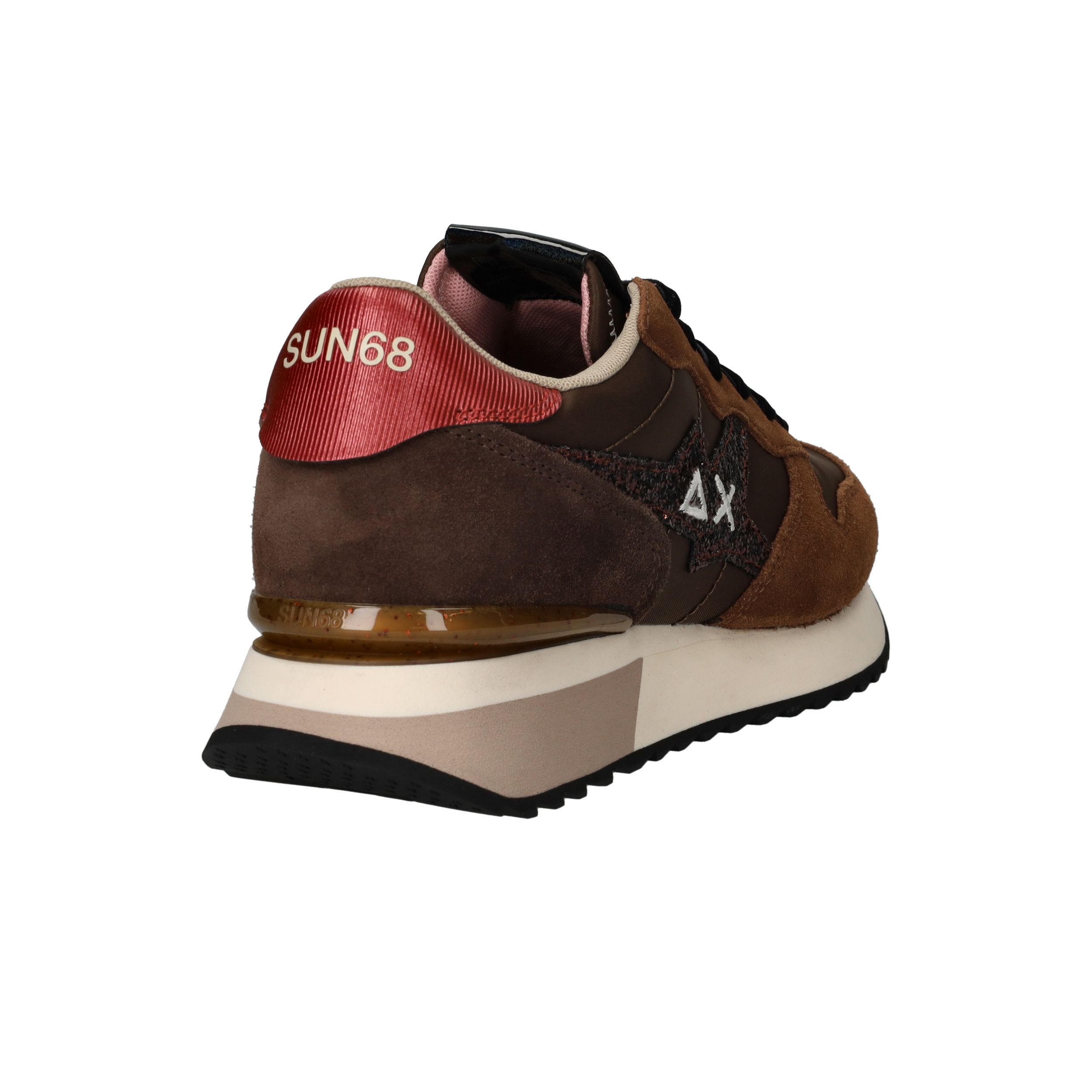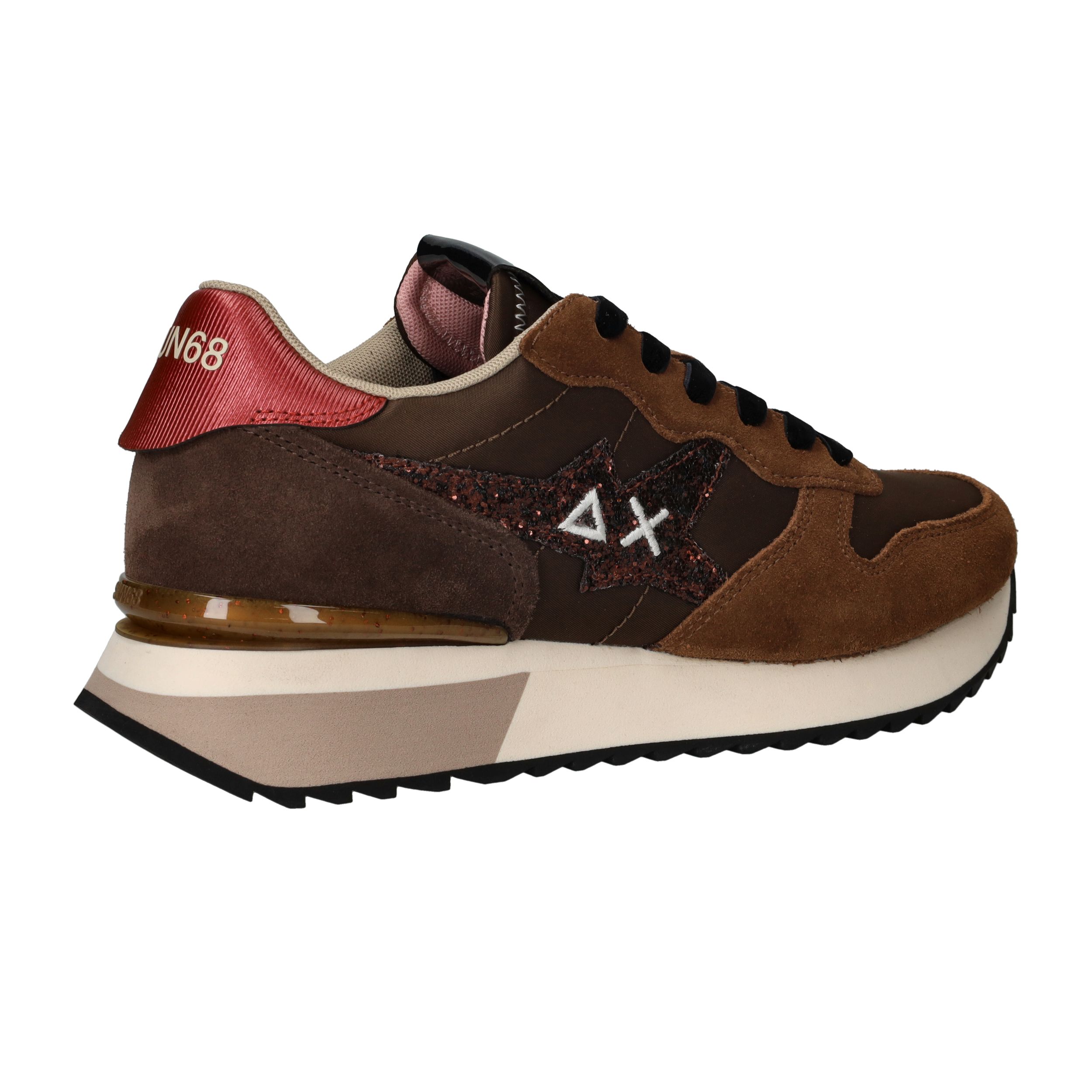 De SUN68 Stargirl sneakers zijn een stijlvolle en trendy keuze voor iedere dag. Deze bruine dames sneakers combineren suède, textiel en kunstleer met een opvallend glitterlogo dat zorgt voor een speelse en modieuze uitstraling. Dankzij de comfortabele G-voetbreedte en de stevige zool kun je rekenen op draagcomfort en stabiliteit. Ideaal voor dames die houden van sportieve mode met een vleugje glamour.