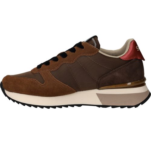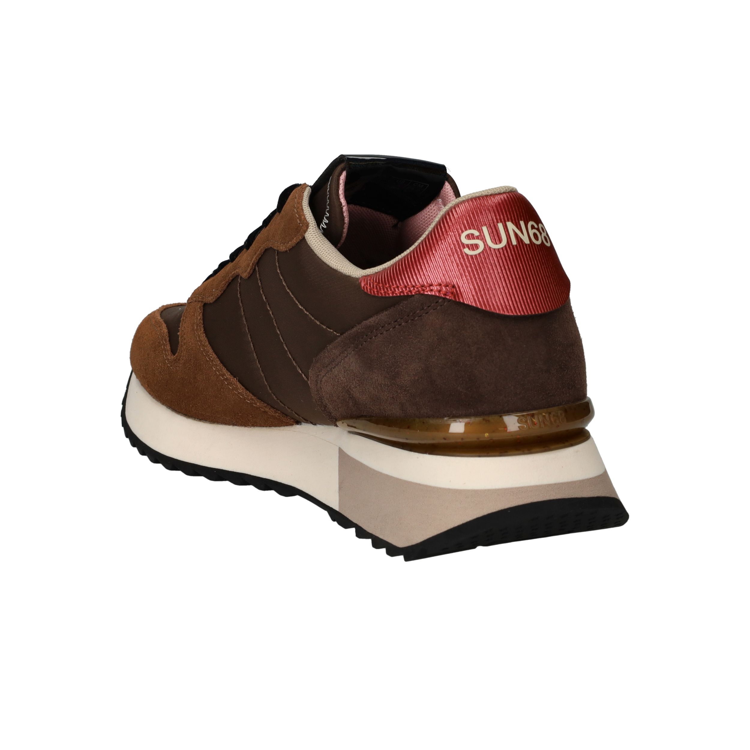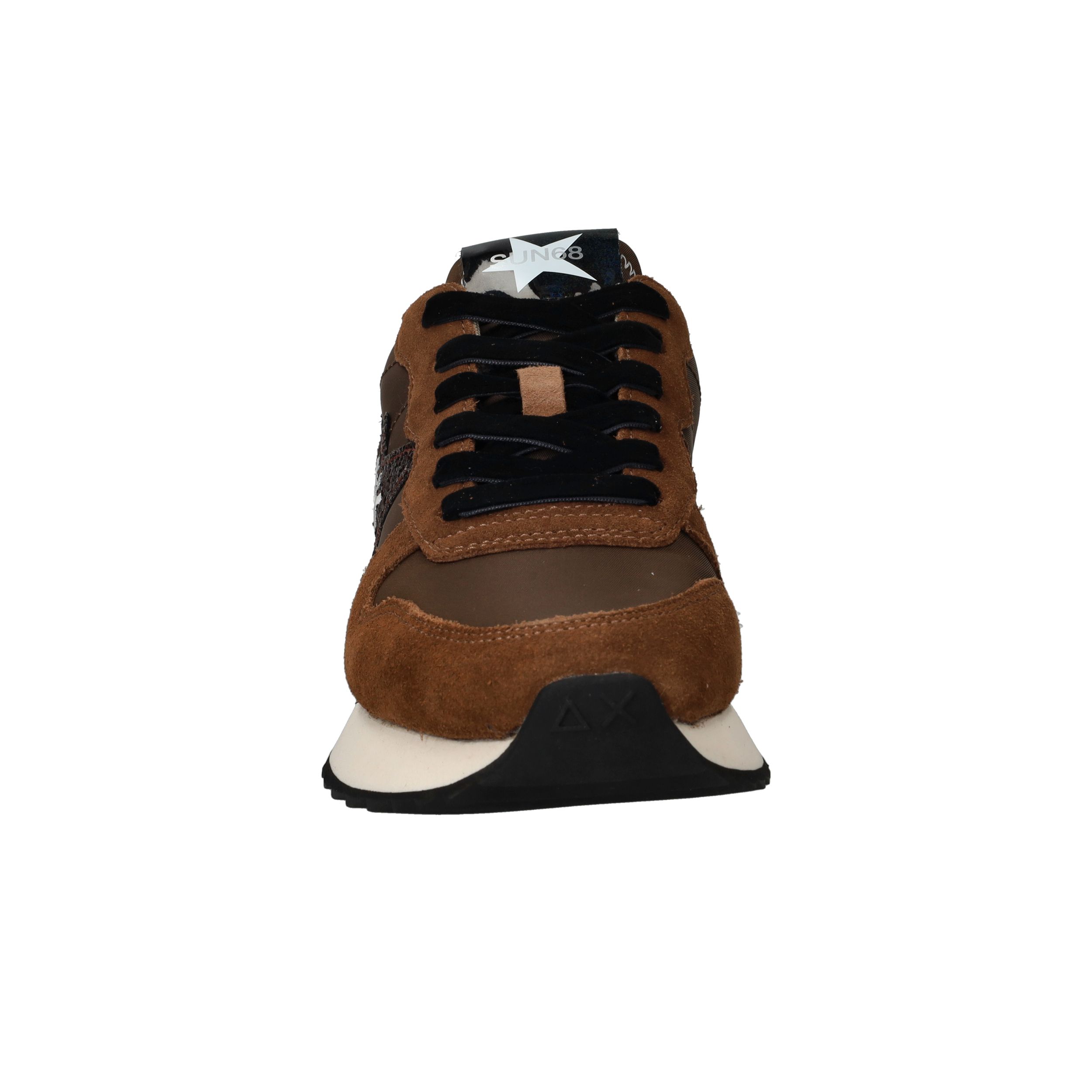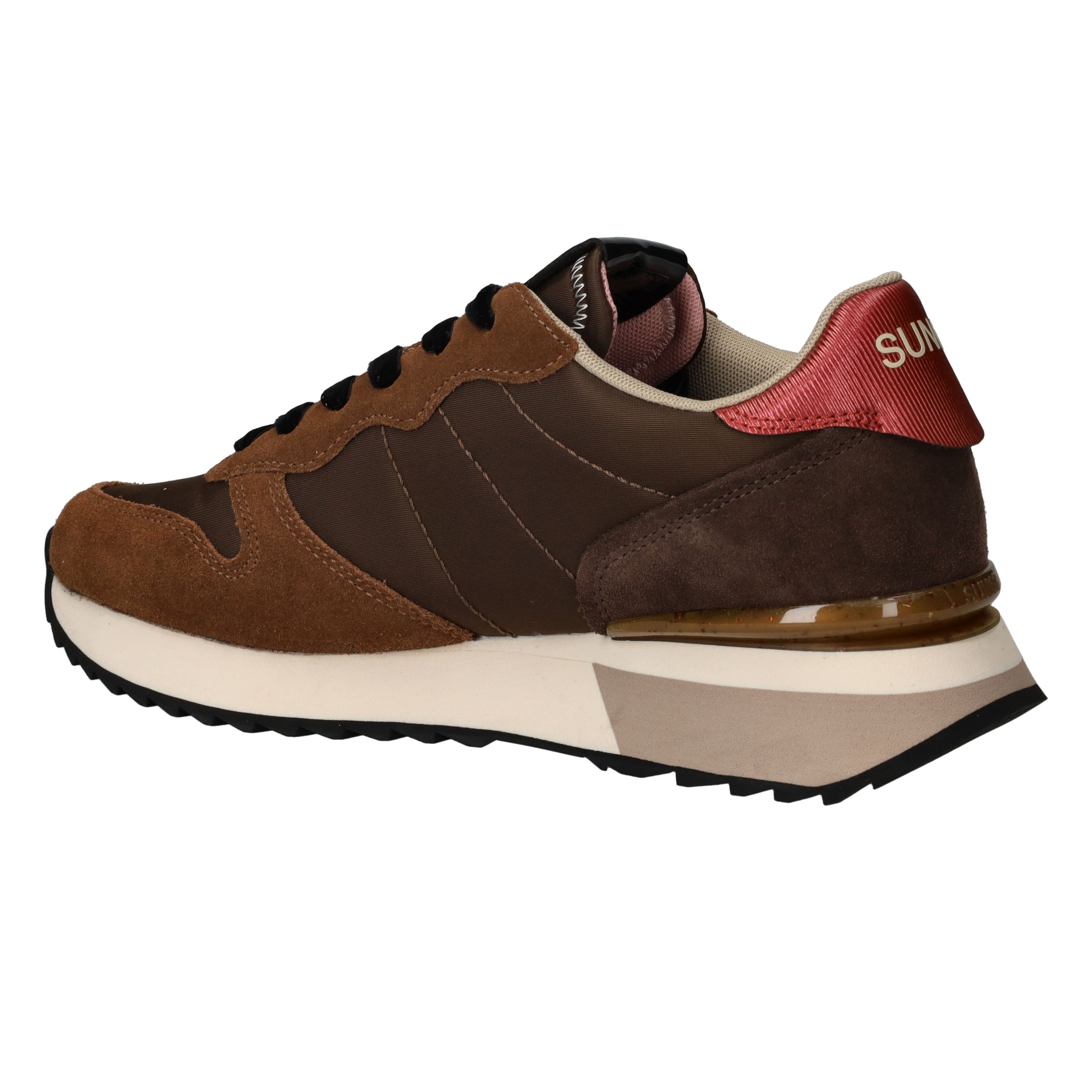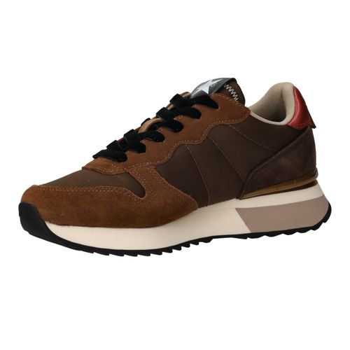 De SUN68 Stargirl sneakers zijn een stijlvolle en trendy keuze voor iedere dag. Deze bruine dames sneakers combineren suède, textiel en kunstleer met een opvallend glitterlogo dat zorgt voor een speelse en modieuze uitstraling. Dankzij de comfortabele G-voetbreedte en de stevige zool kun je rekenen op draagcomfort en stabiliteit. Ideaal voor dames die houden van sportieve mode met een vleugje glamour.
