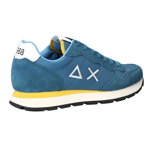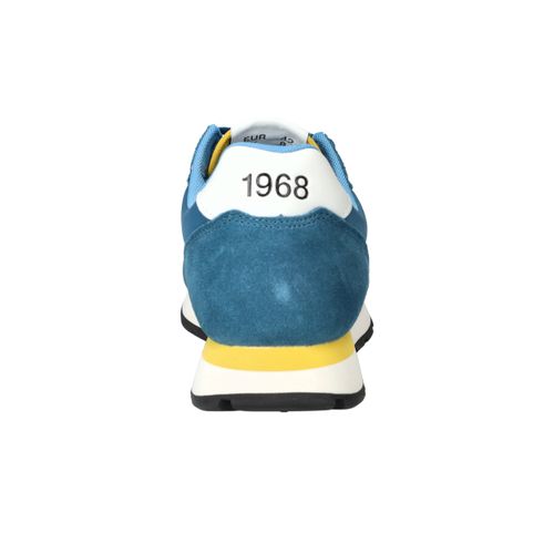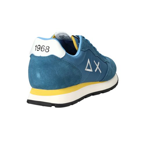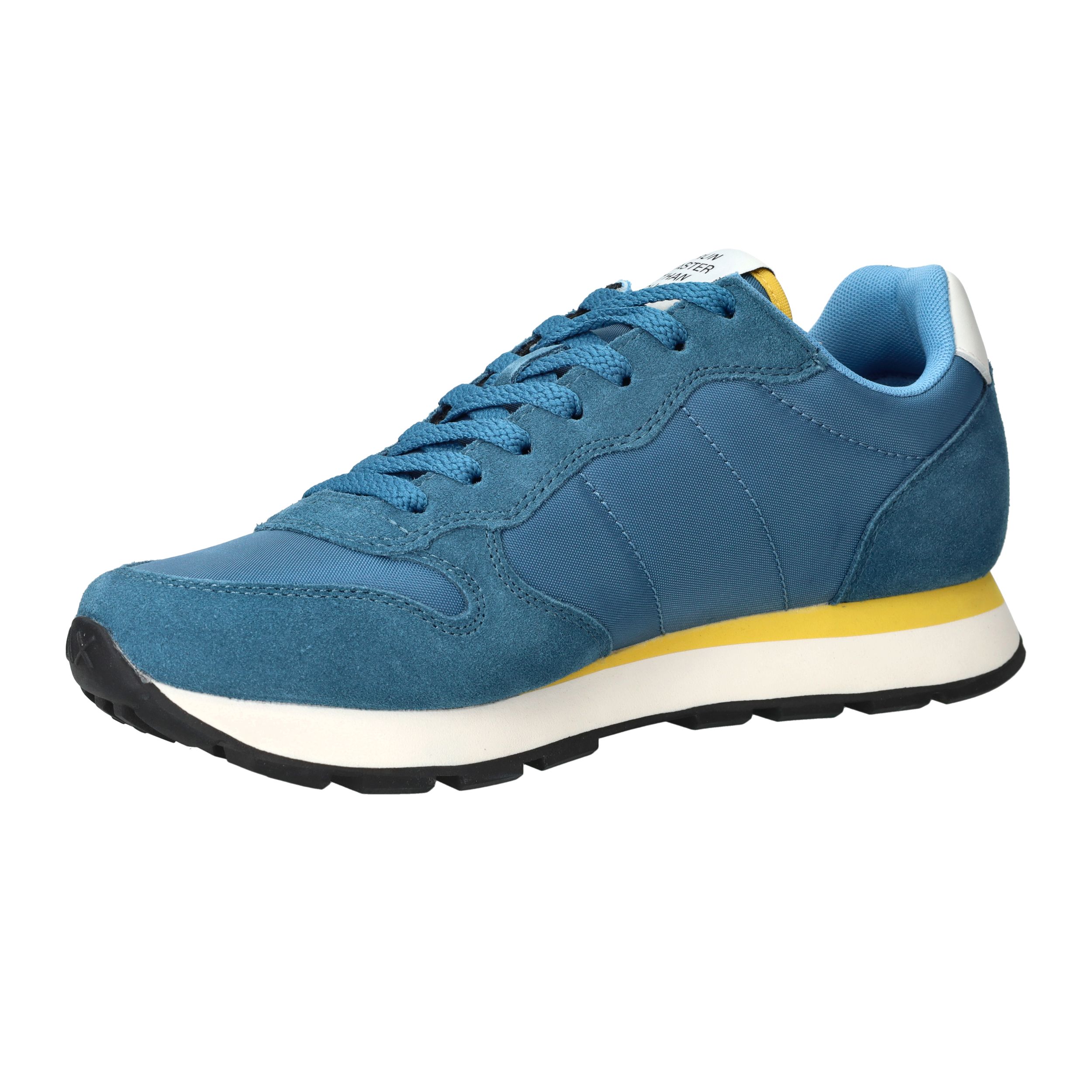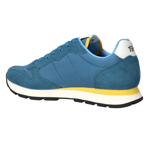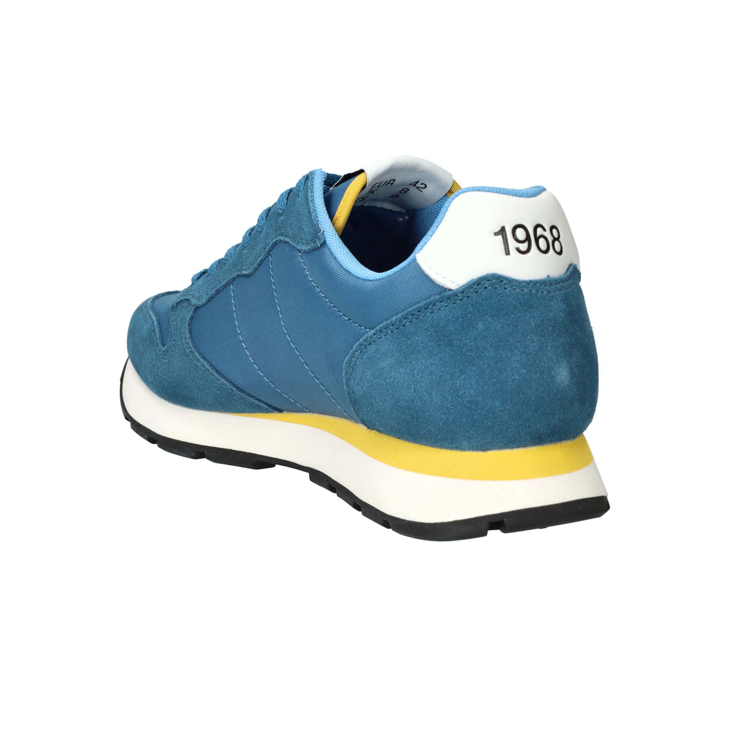 Gave blauwe Sun 68 Tom Solid sneaker voor heren met flitsende gele accenten! De opvallende zool maakt de sneaker helemaal af.