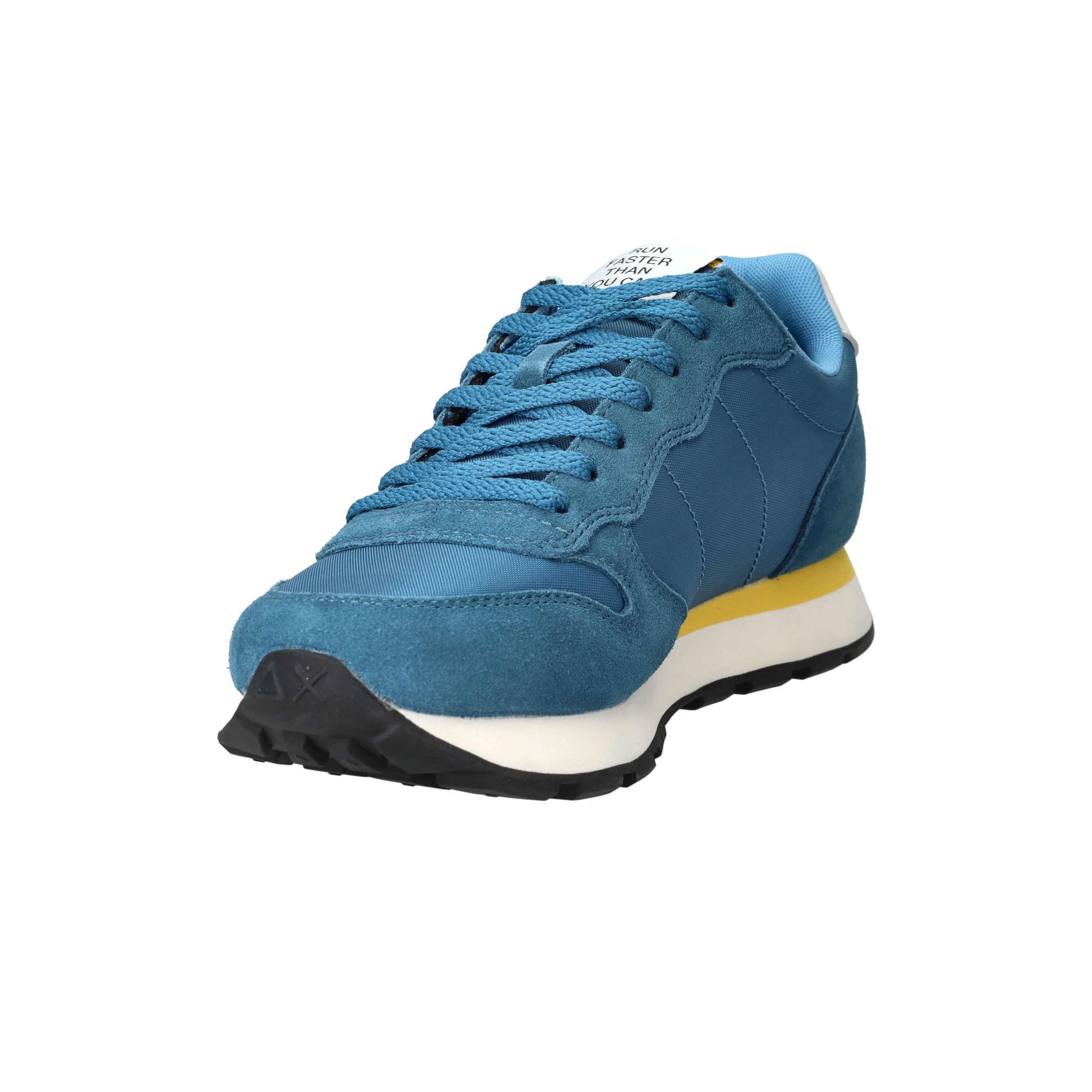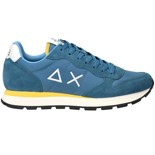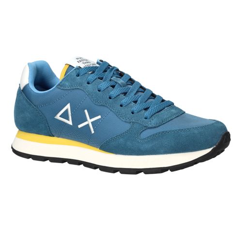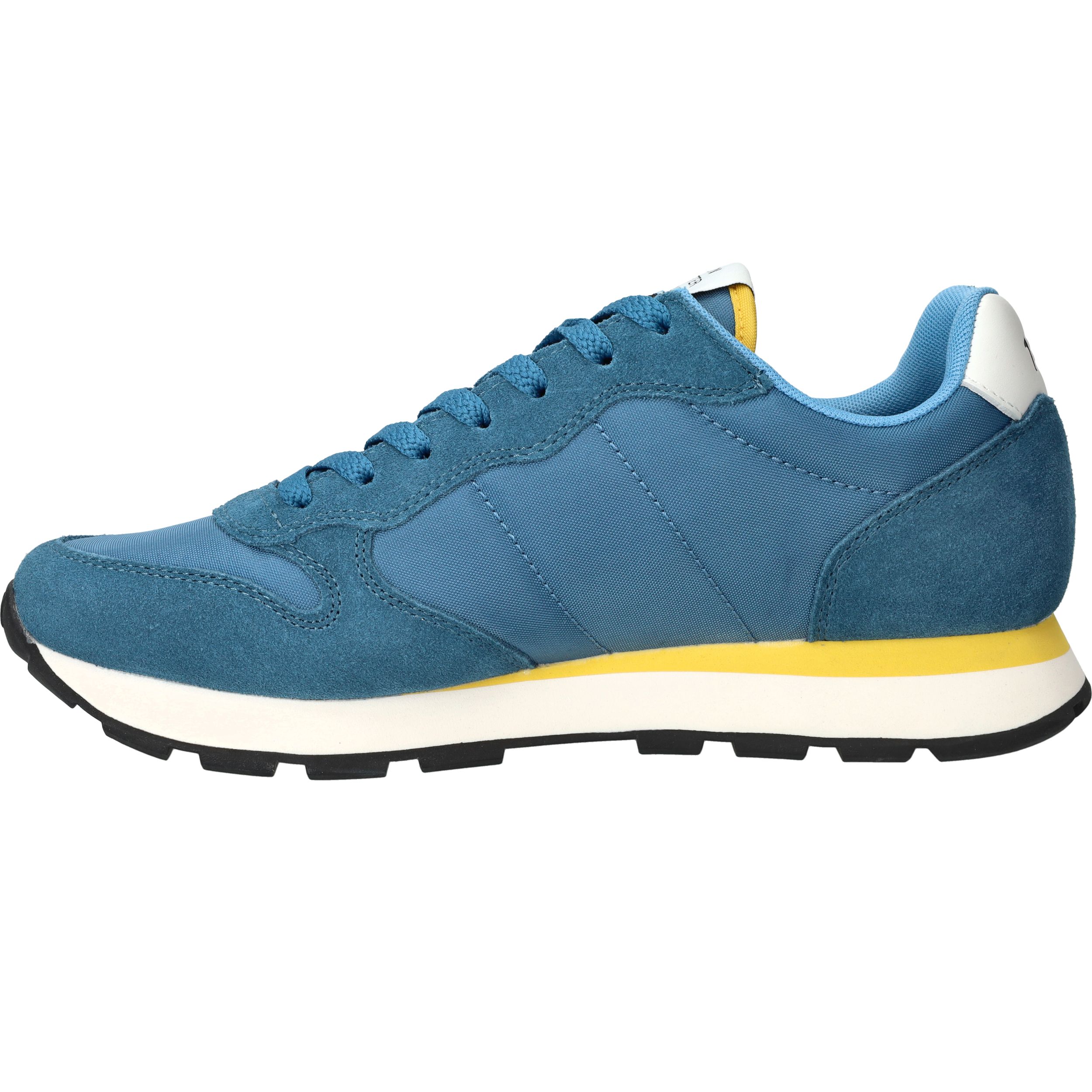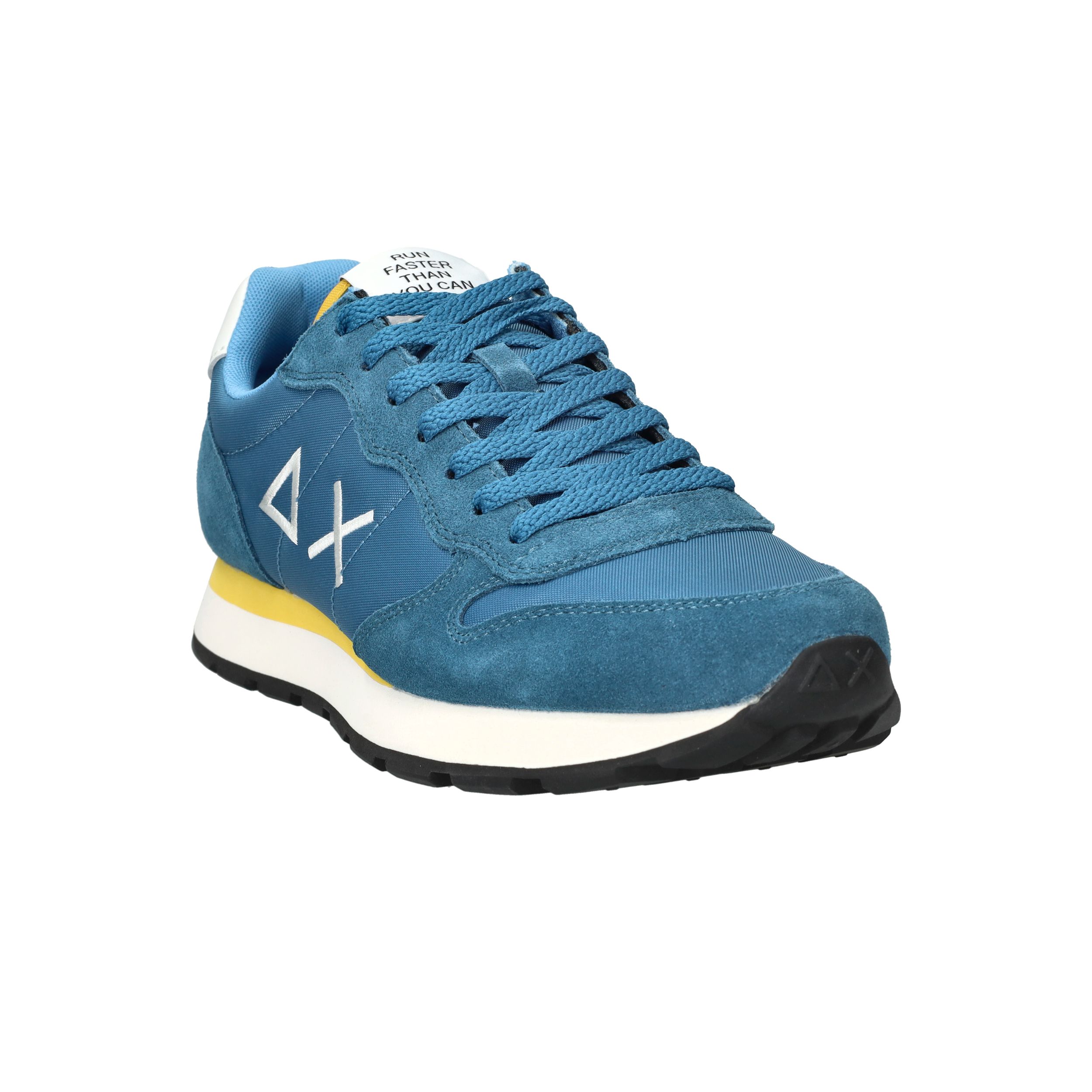 Gave blauwe Sun 68 Tom Solid sneaker voor heren met flitsende gele accenten! De opvallende zool maakt de sneaker helemaal af.