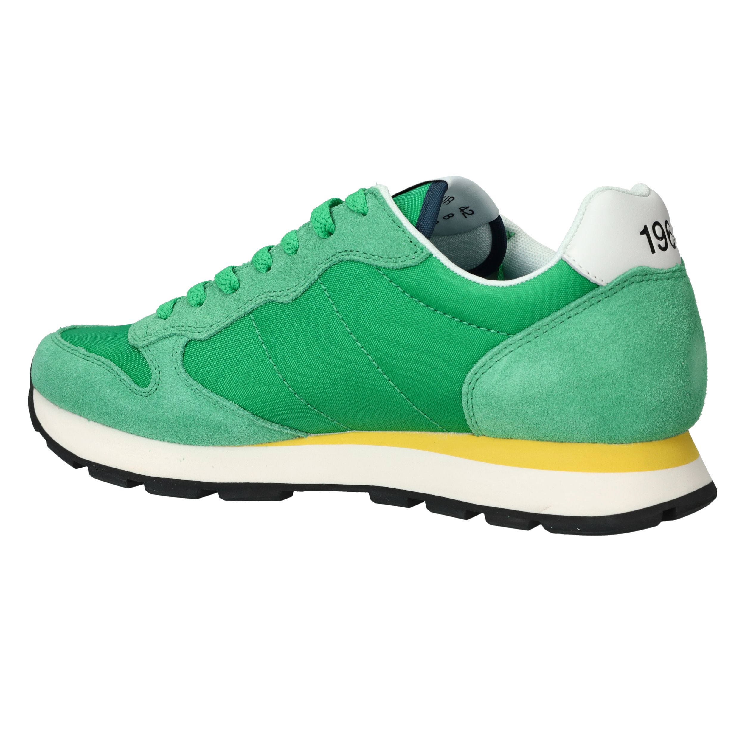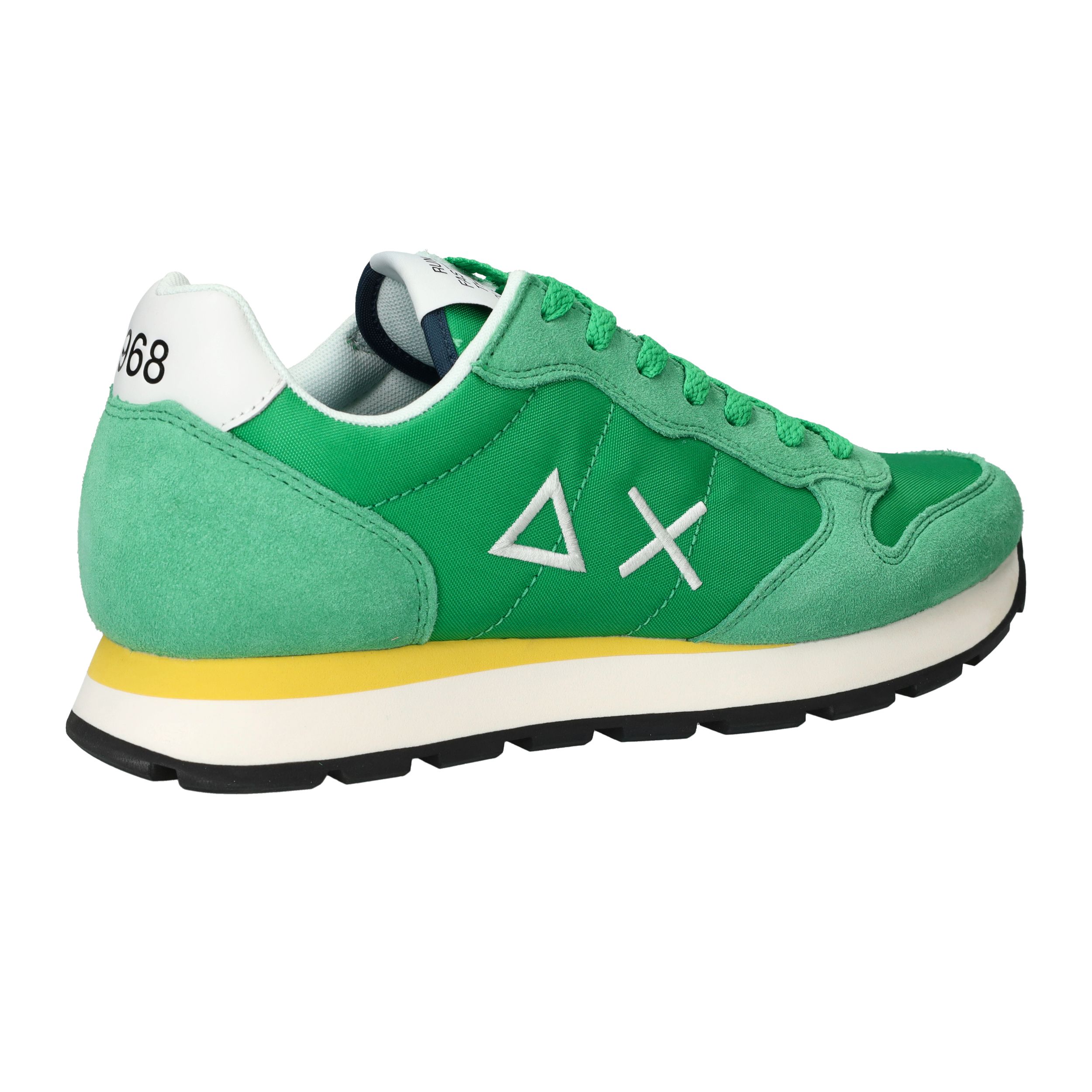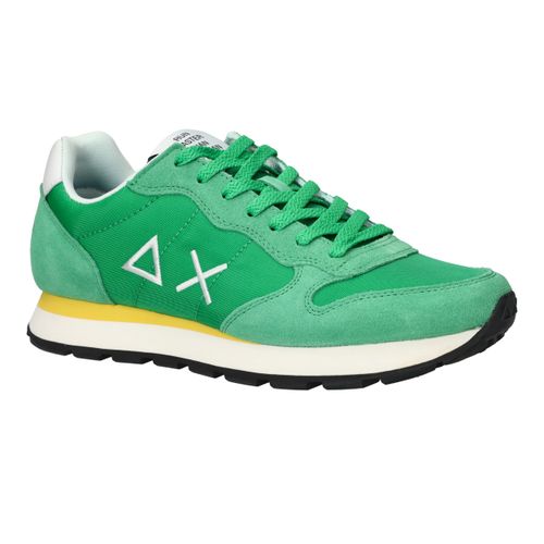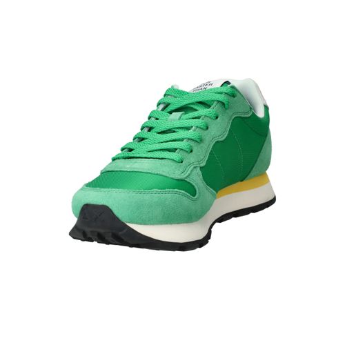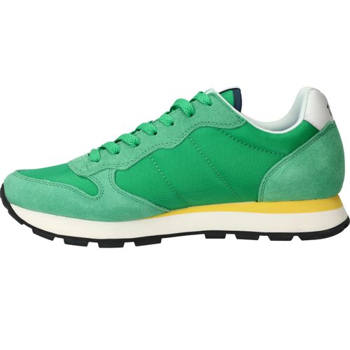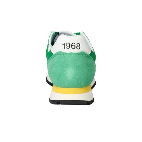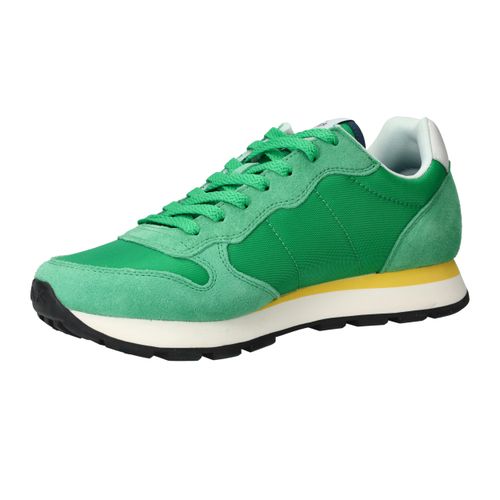 Flitsende groene Sun 68 Tom Solid sneaker voor heren met leuke gele details! De opvallende zool maakt de sneaker helemaal af.