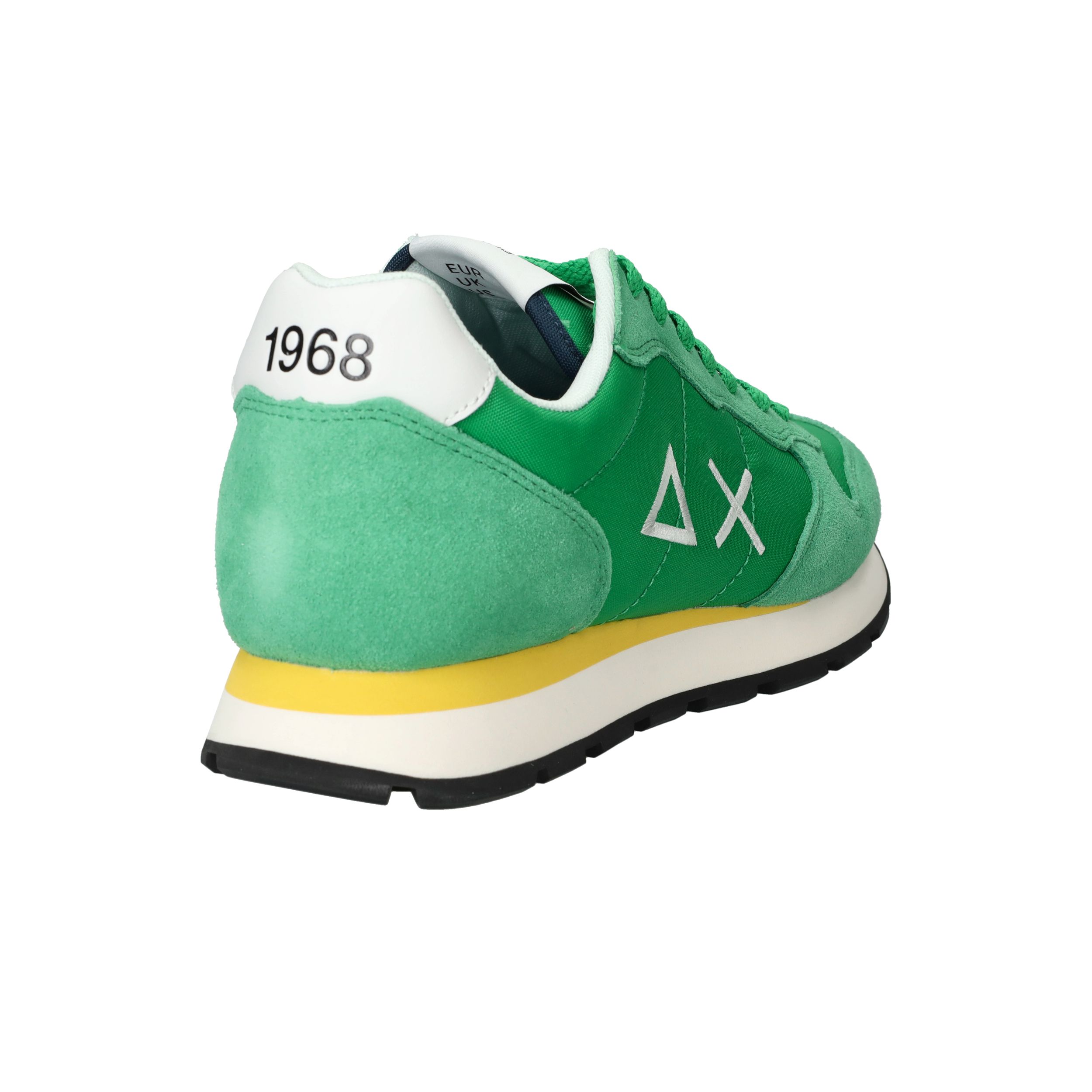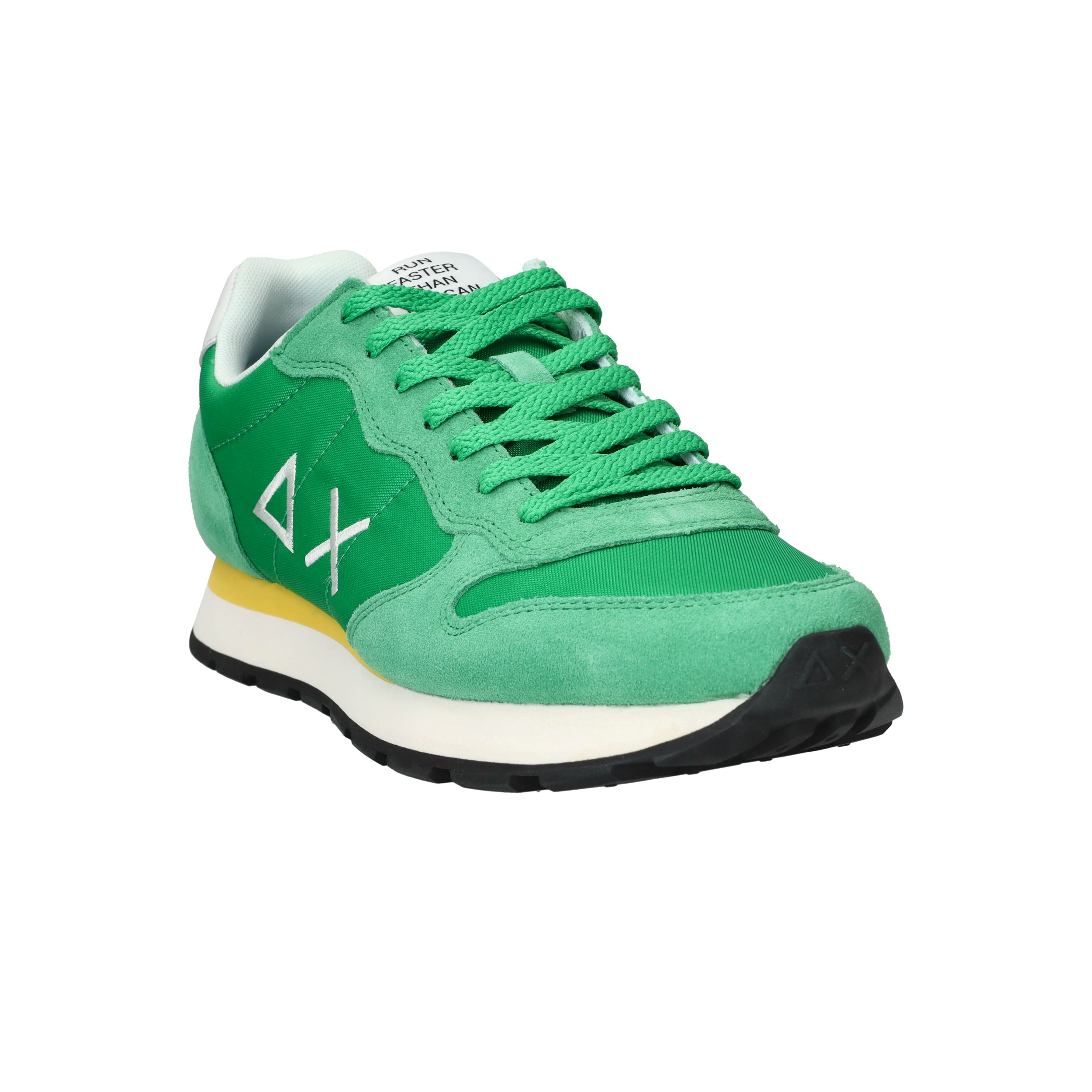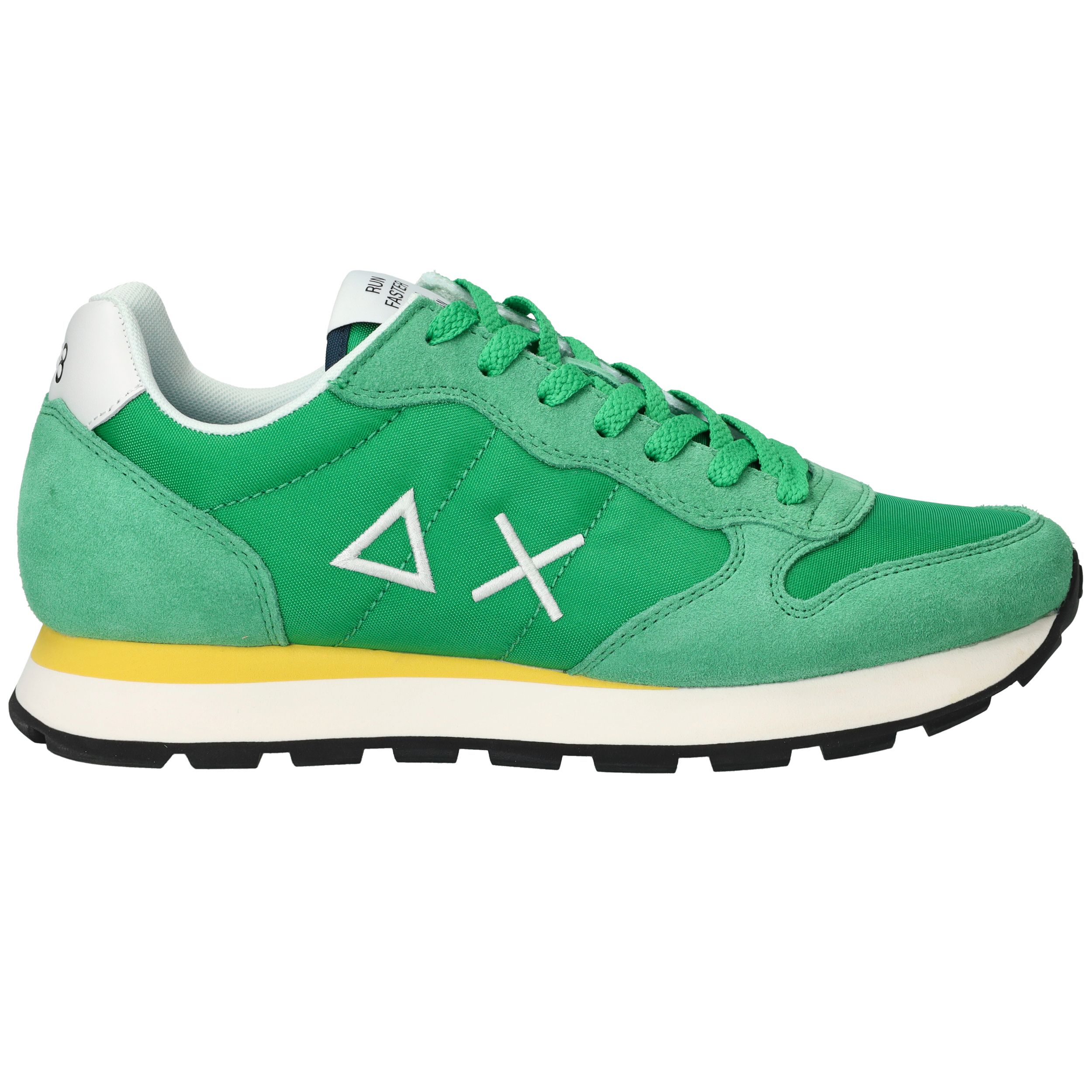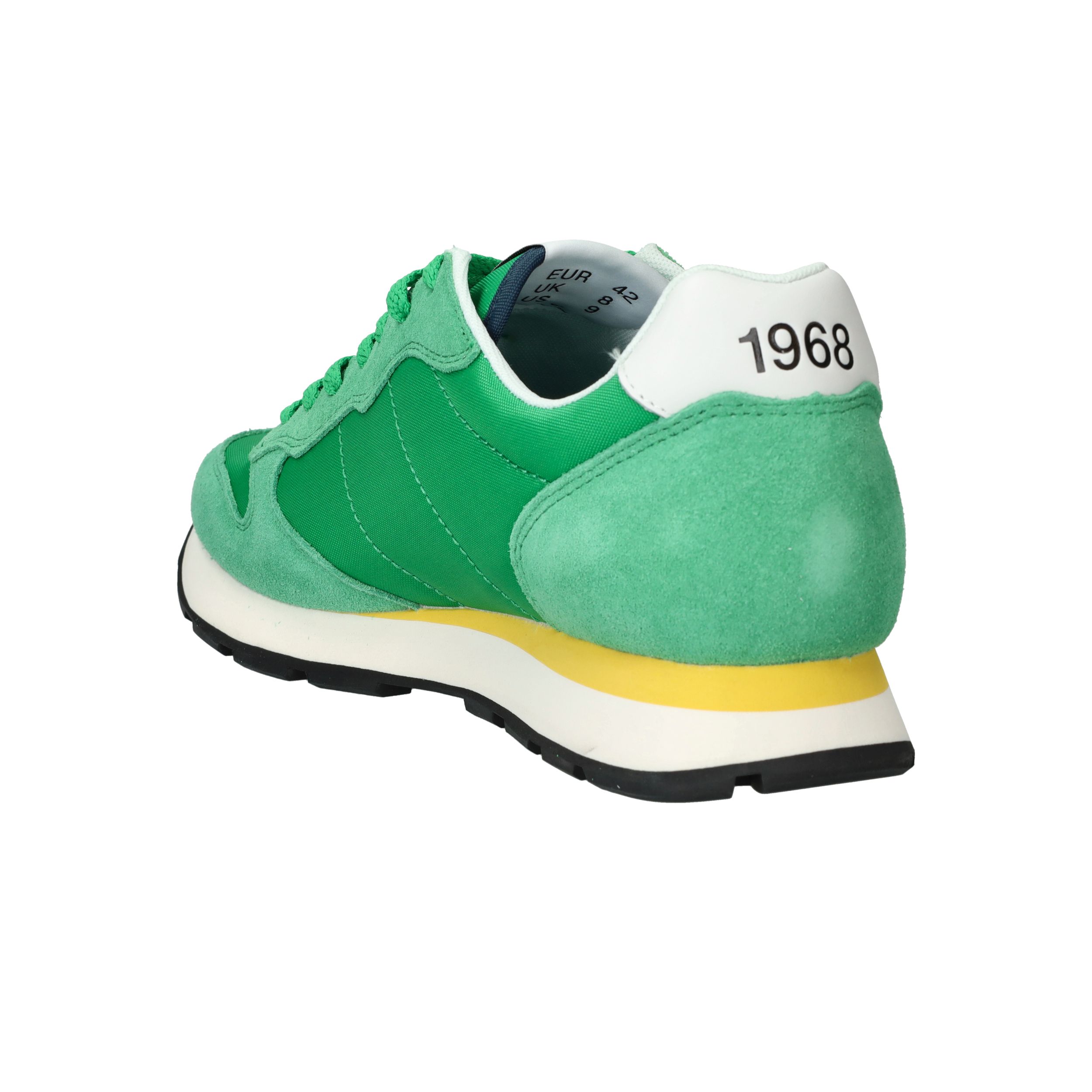 Flitsende groene Sun 68 Tom Solid sneaker voor heren met leuke gele details! De opvallende zool maakt de sneaker helemaal af.