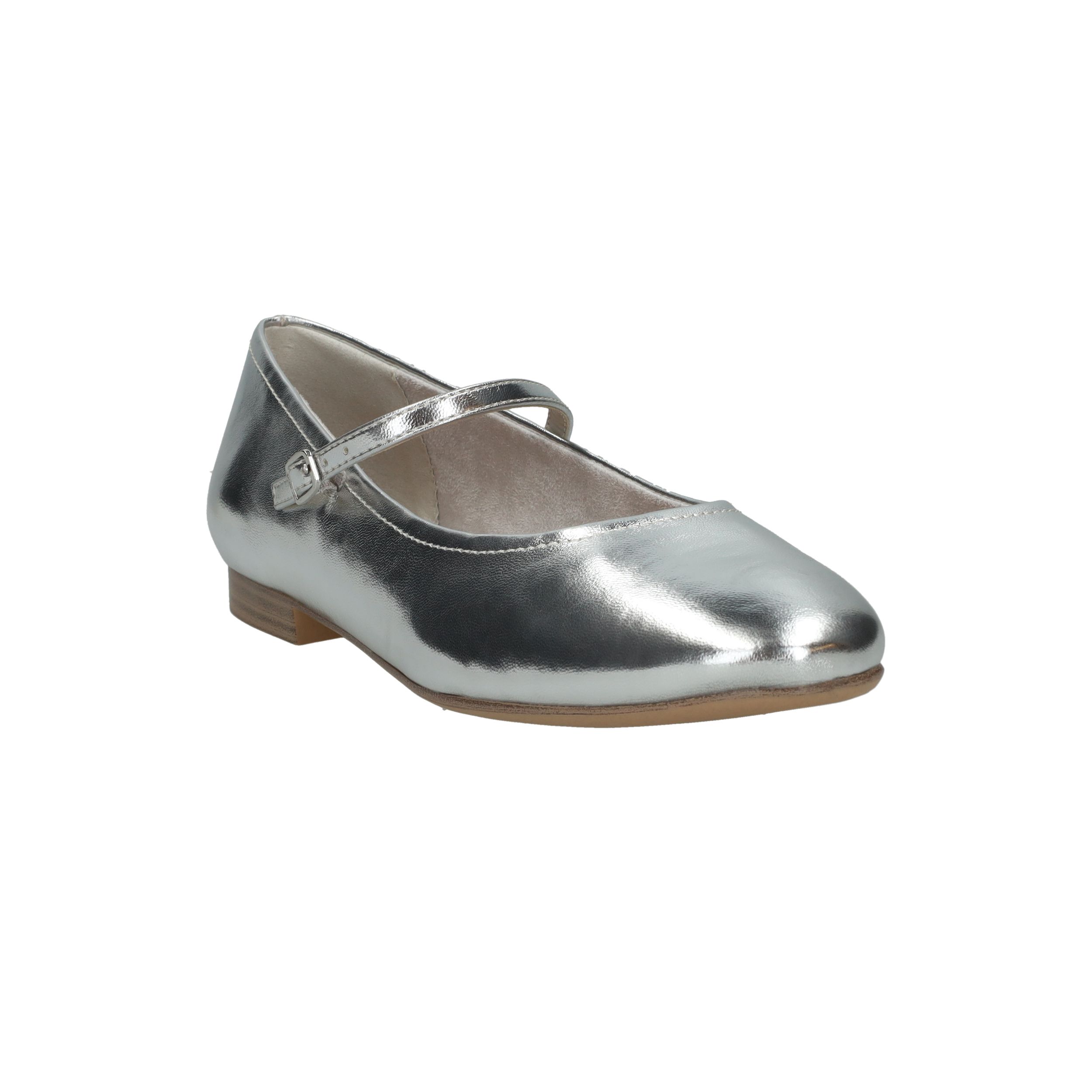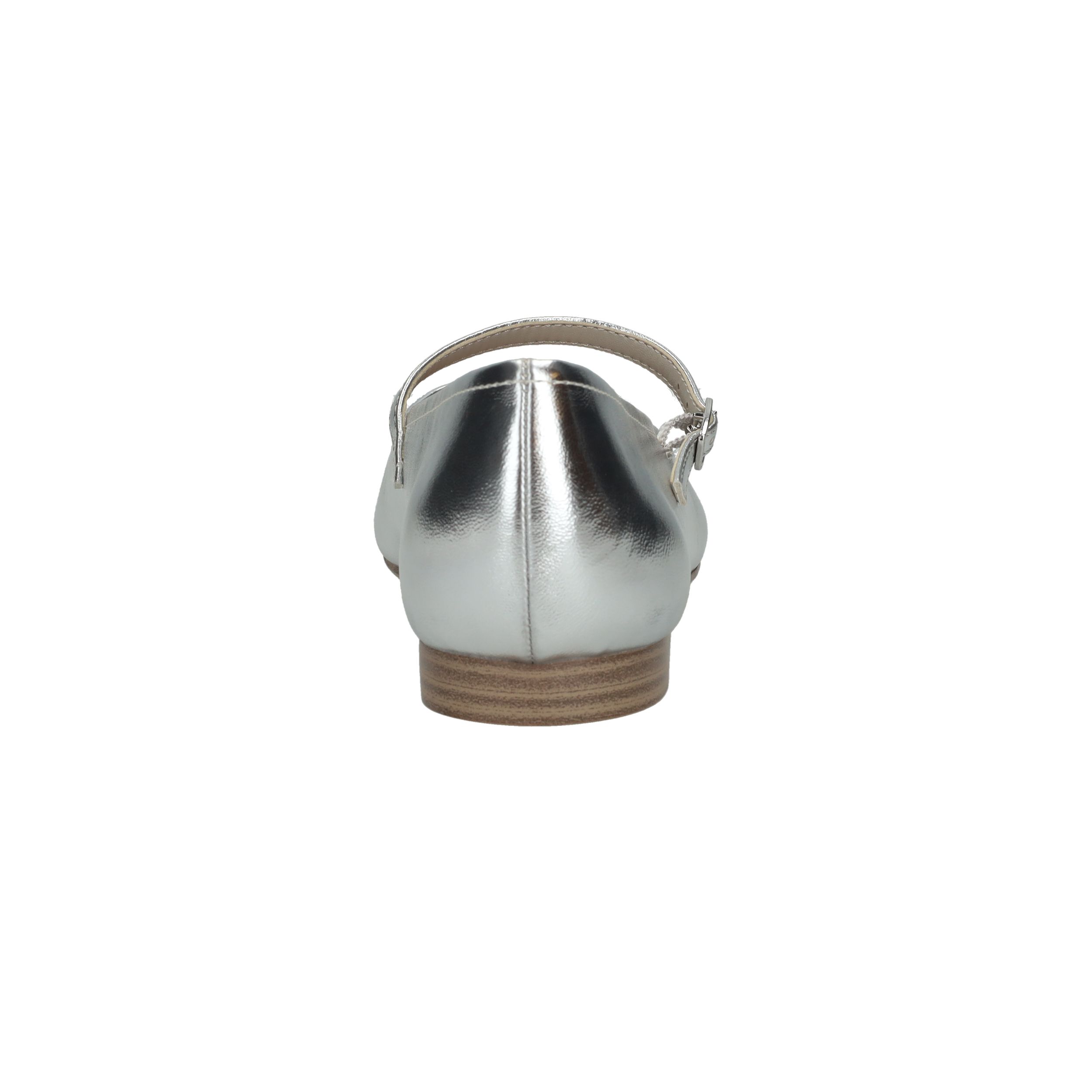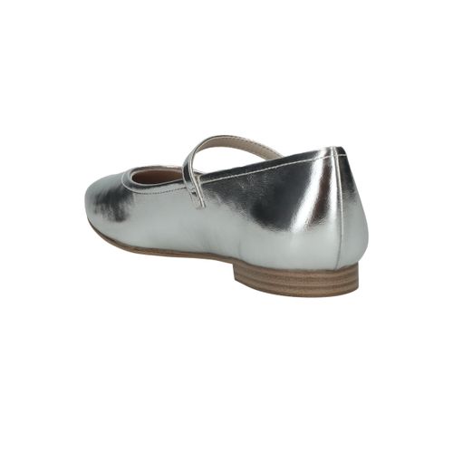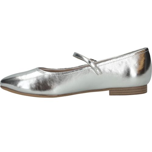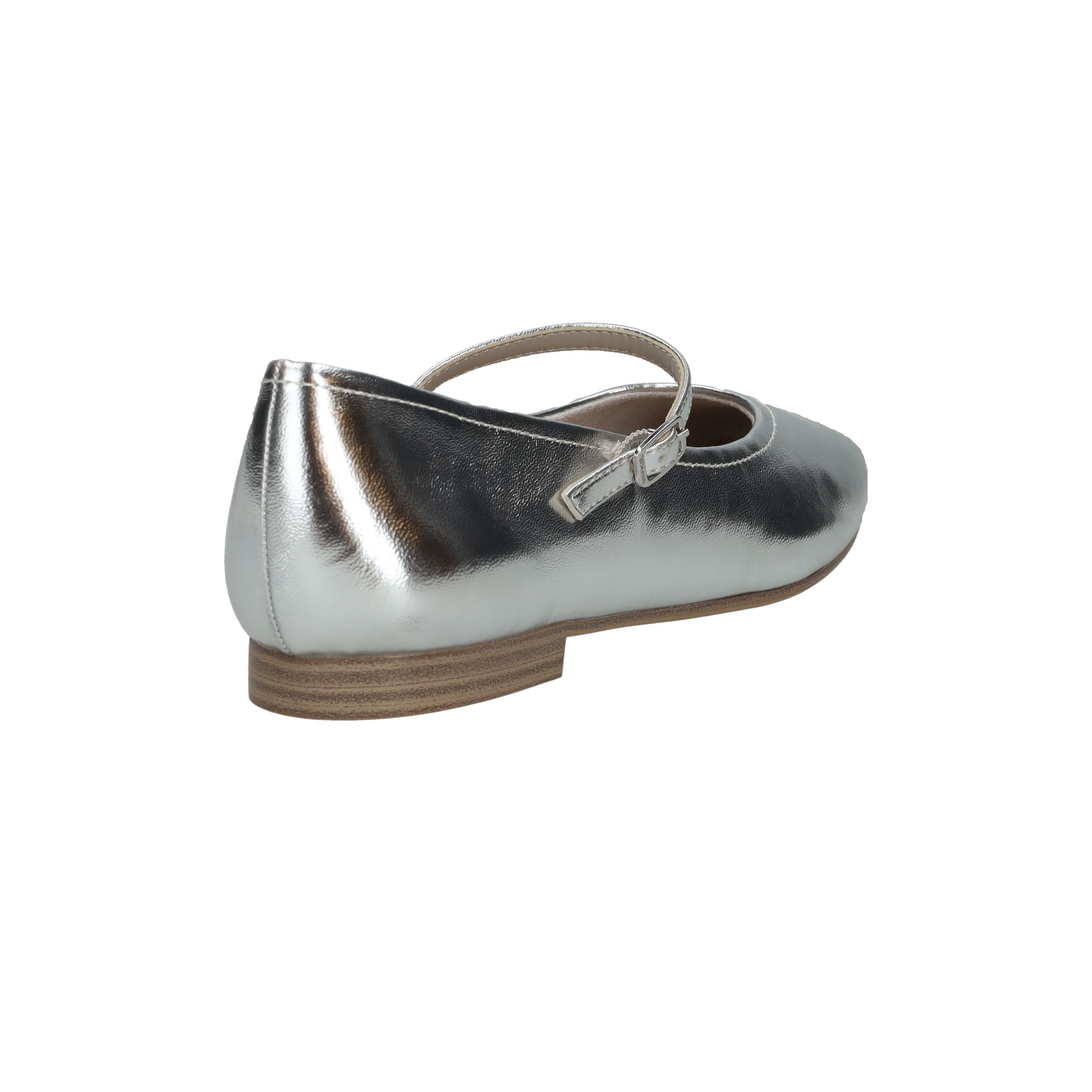 Geen pijnlijke voeten tijdens een feestje met deze Tamaris ballerina! De metallic zilveren ballerina heeft een laag hakje en draag je bij een feestelijke outfit of juist een casual look.