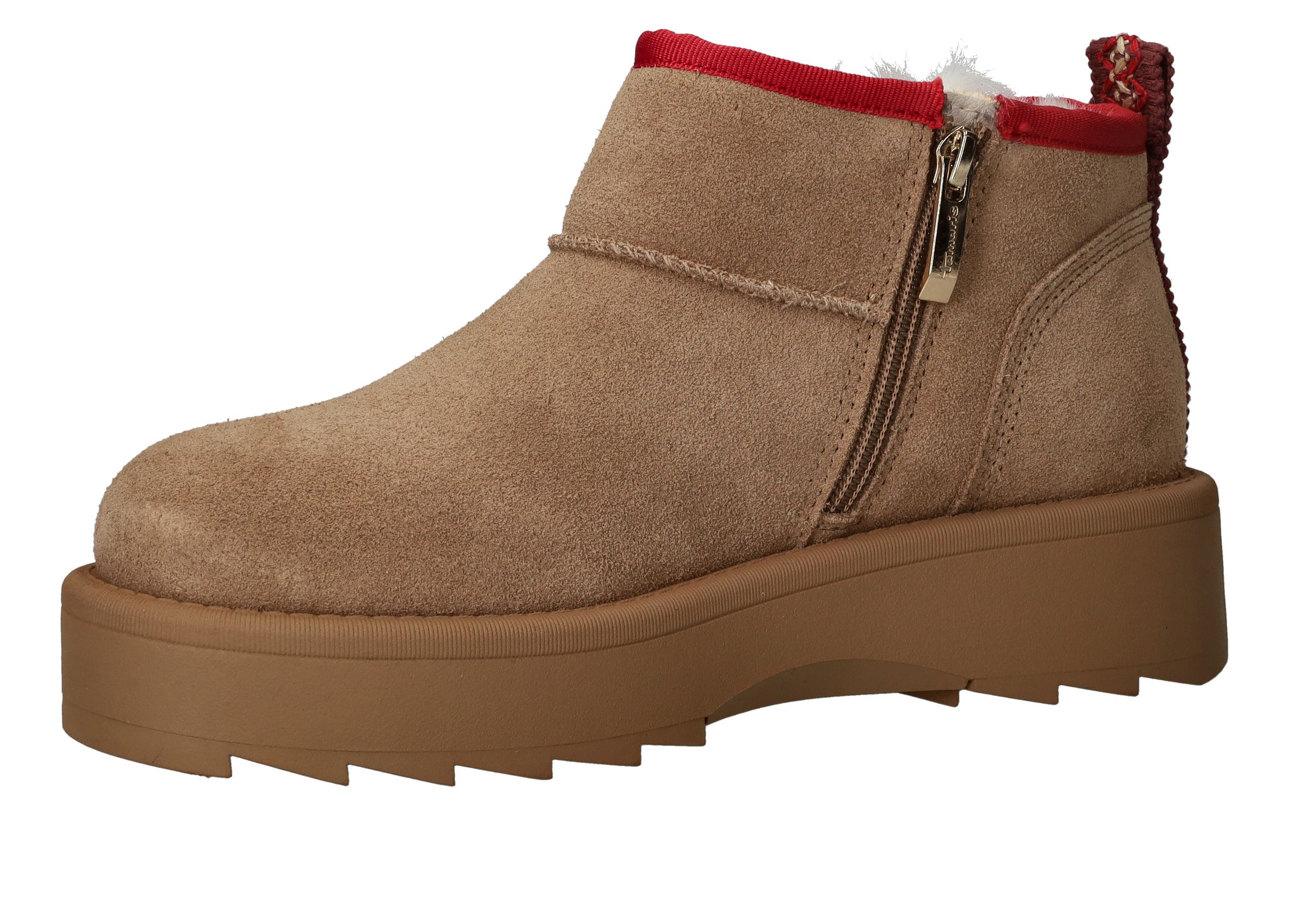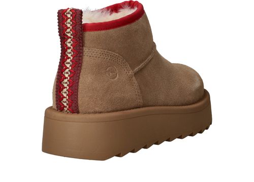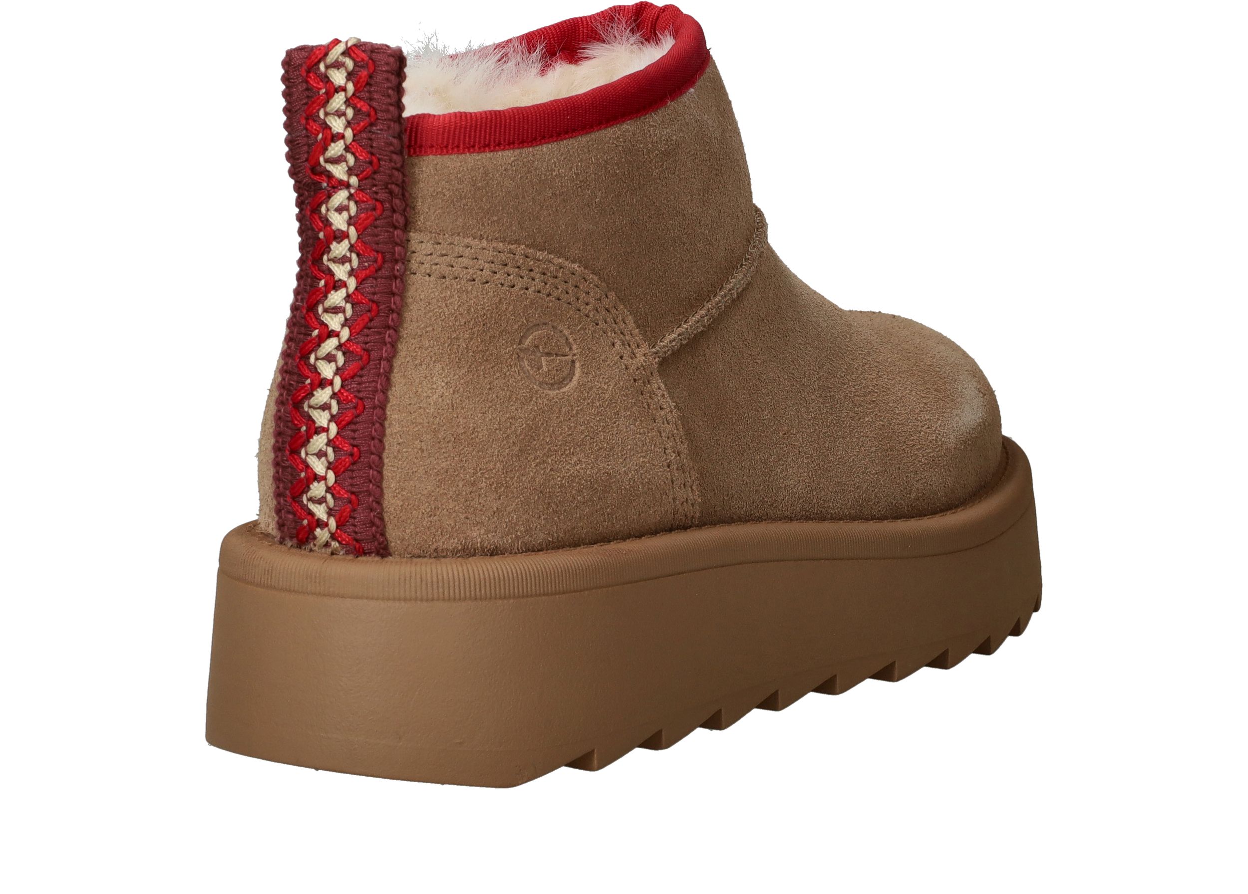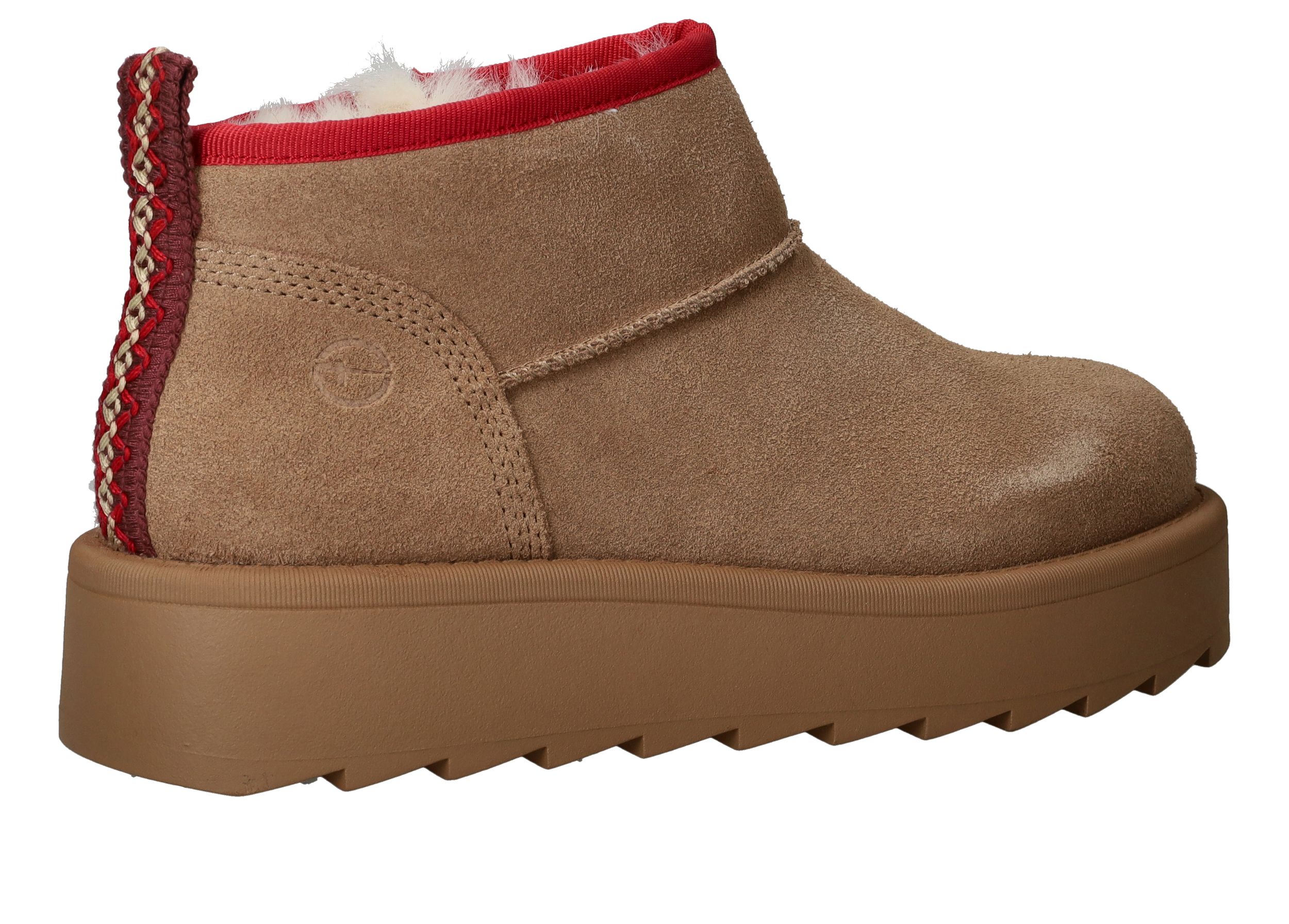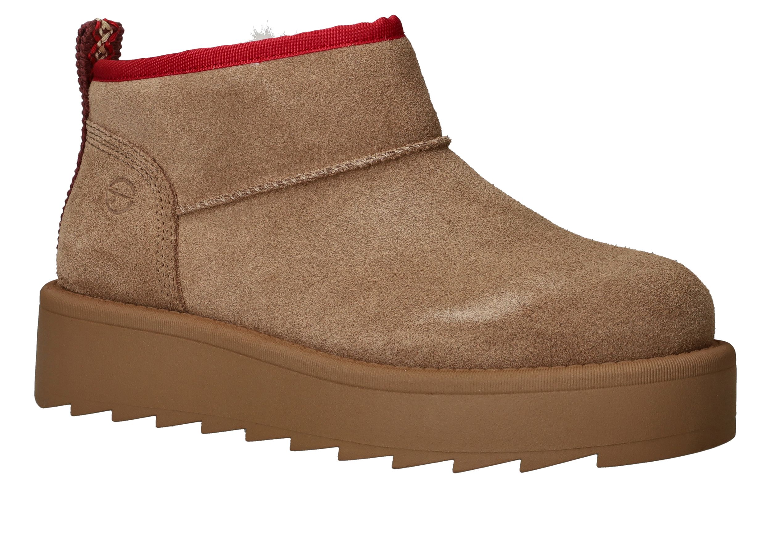 Ga voor warme voeten met deze beige Tamaris boots met toffe platformzool! De boots zijn gemaakt van suède en afgewerkt met een opvallend rood sierbandje.