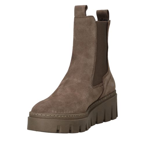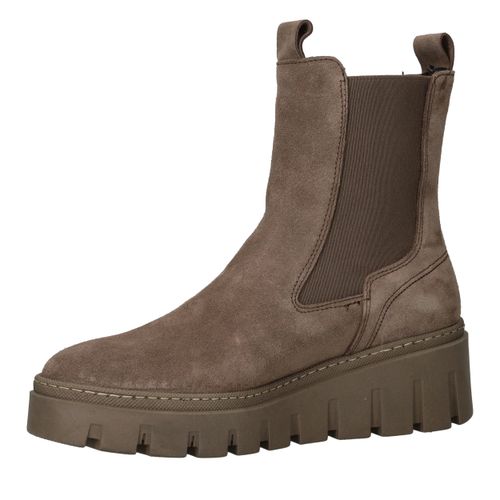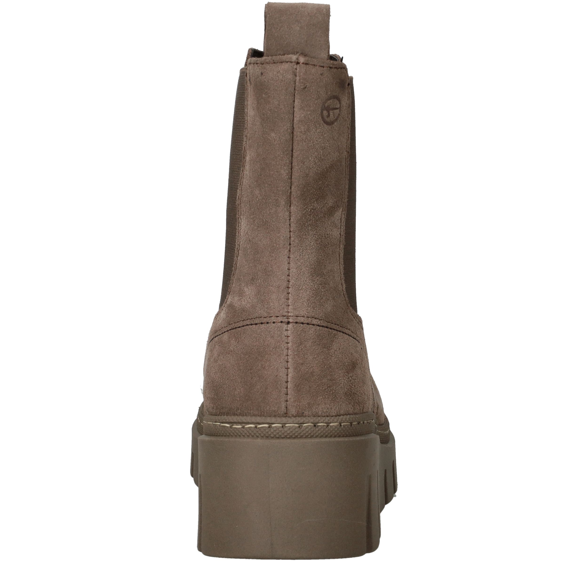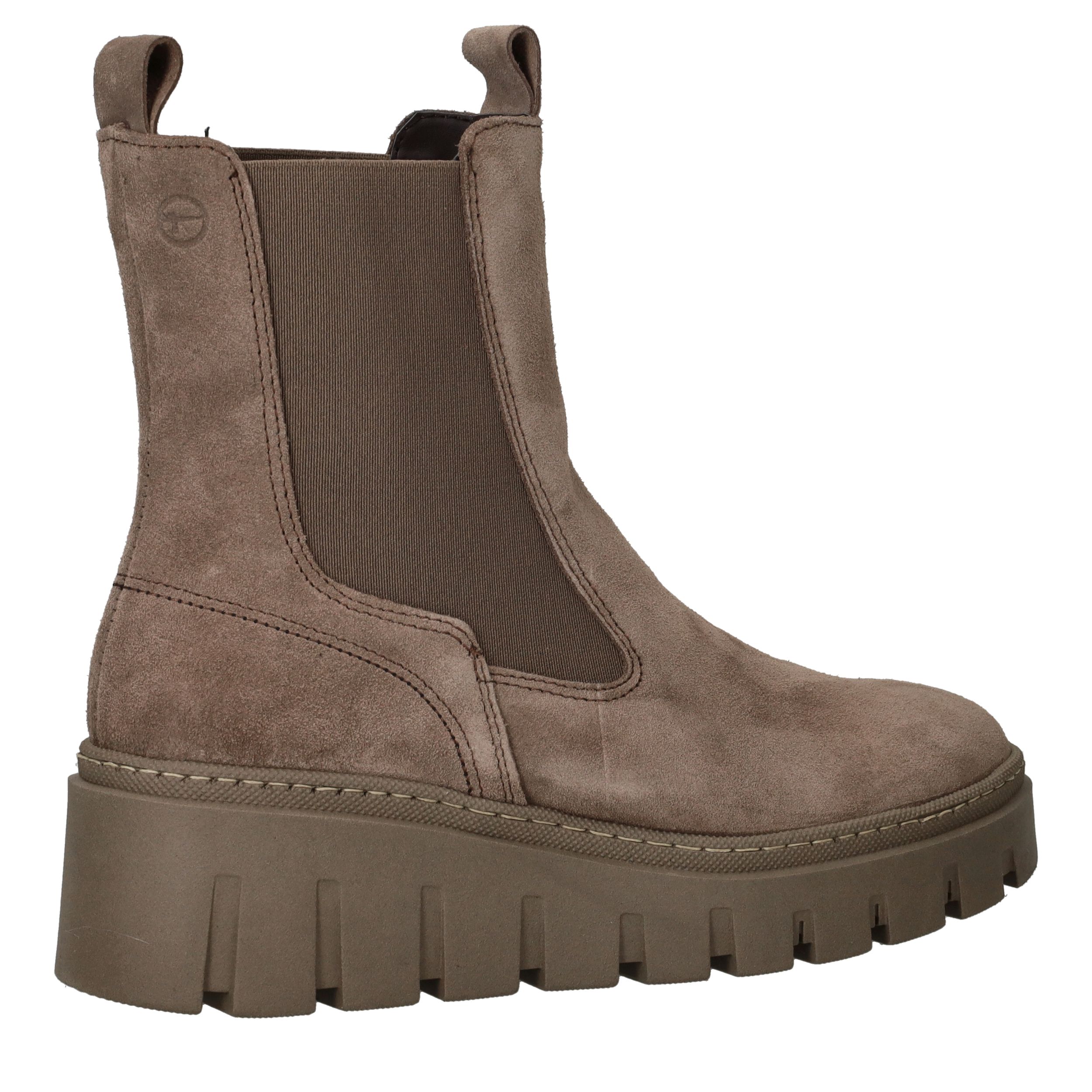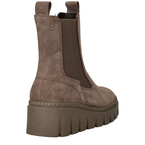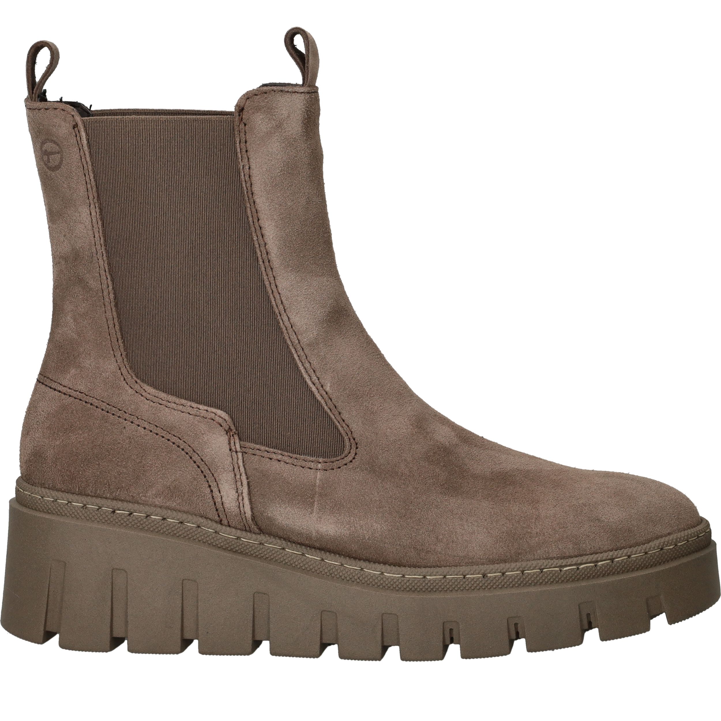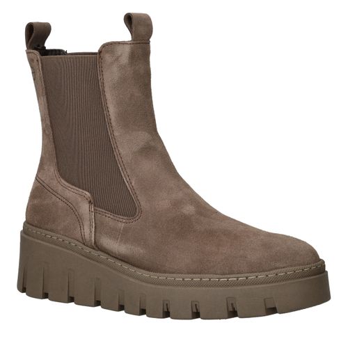 Deze Tamaris chelseaboot is uitgevoerd in taupe suède en combineert comfort met een modieuze uitstraling. De schoen is perfect te dragen bij zowel casual als meer geklede outfits.
