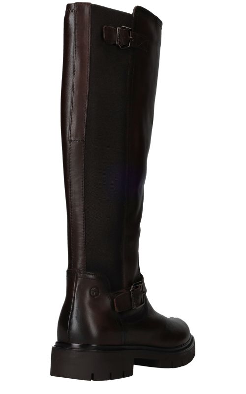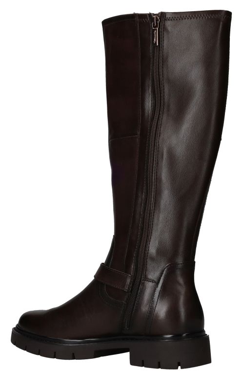 Deze Tamaris Comfort lange laars voor dames in rijke bruine kleur combineert een elegante uitstraling met optimaal draagcomfort. De buitenkant is vervaardigd uit hoogwaardig leer en synthetisch materiaal dat zorgt voor duurzaamheid en flexibiliteit. De zachte voering van textiel en kunstleer voelt prettig aan en biedt ademend comfort. De stevige profielzool en subtiele gespsluitingen geven de laars een stoere, modieuze look – ideaal voor dagelijks gebruik in het najaar en de winter.