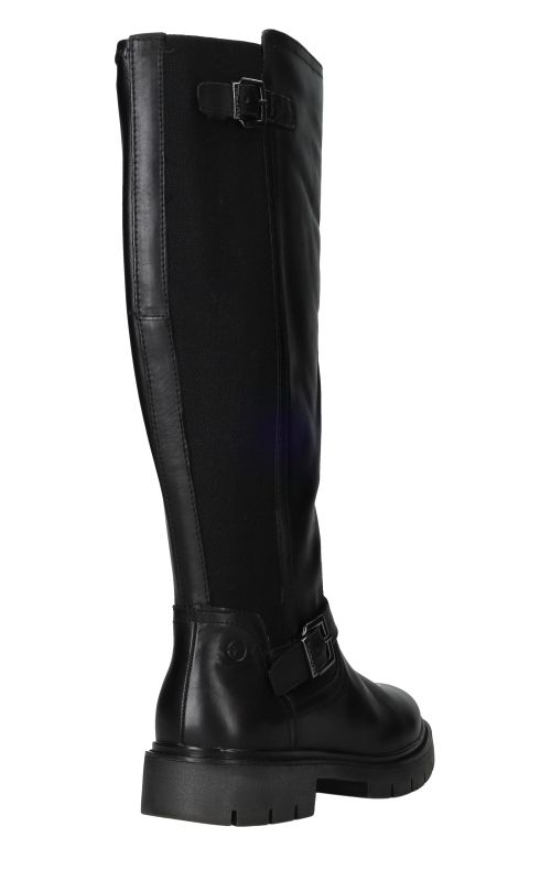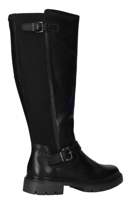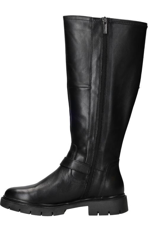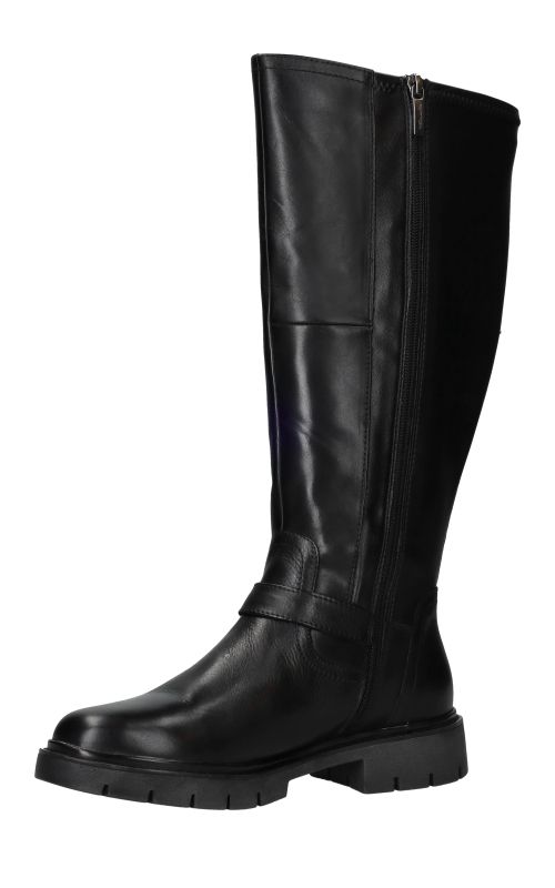 De Tamaris Comfort laars voor dames is een stijlvolle en comfortabele keuze voor elke dag. Deze hoge laars in klassiek zwart is gemaakt van een combinatie van hoogwaardig leer en synthetisch materiaal, wat zorgt voor stevigheid en een elegante uitstraling. De zachte textiele voering houdt je voeten behaaglijk warm, terwijl de stevige profielzool stabiliteit en grip biedt. Ideaal voor de koude seizoenen met een vleugje verfijning.