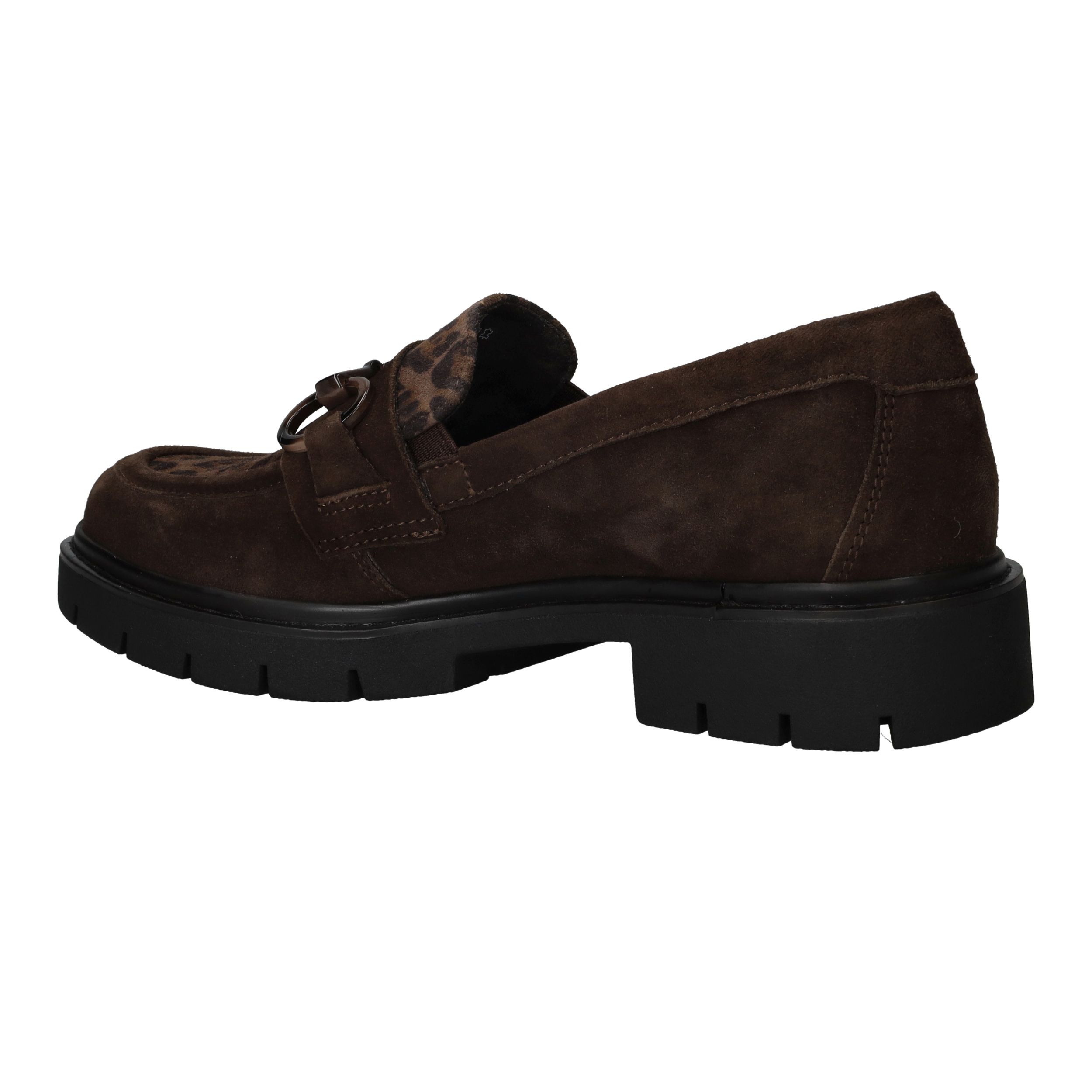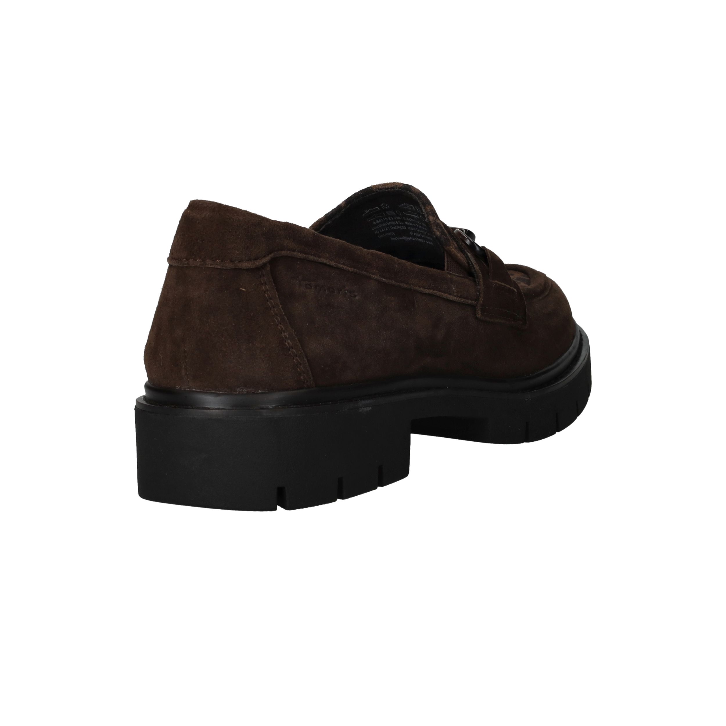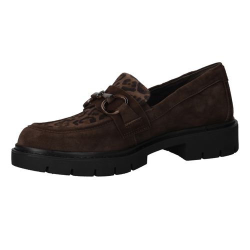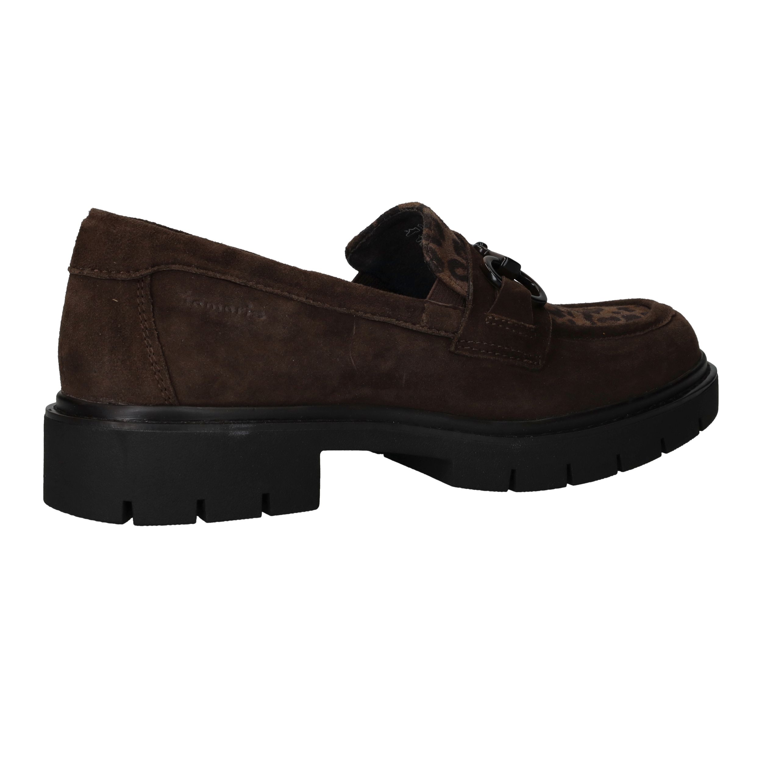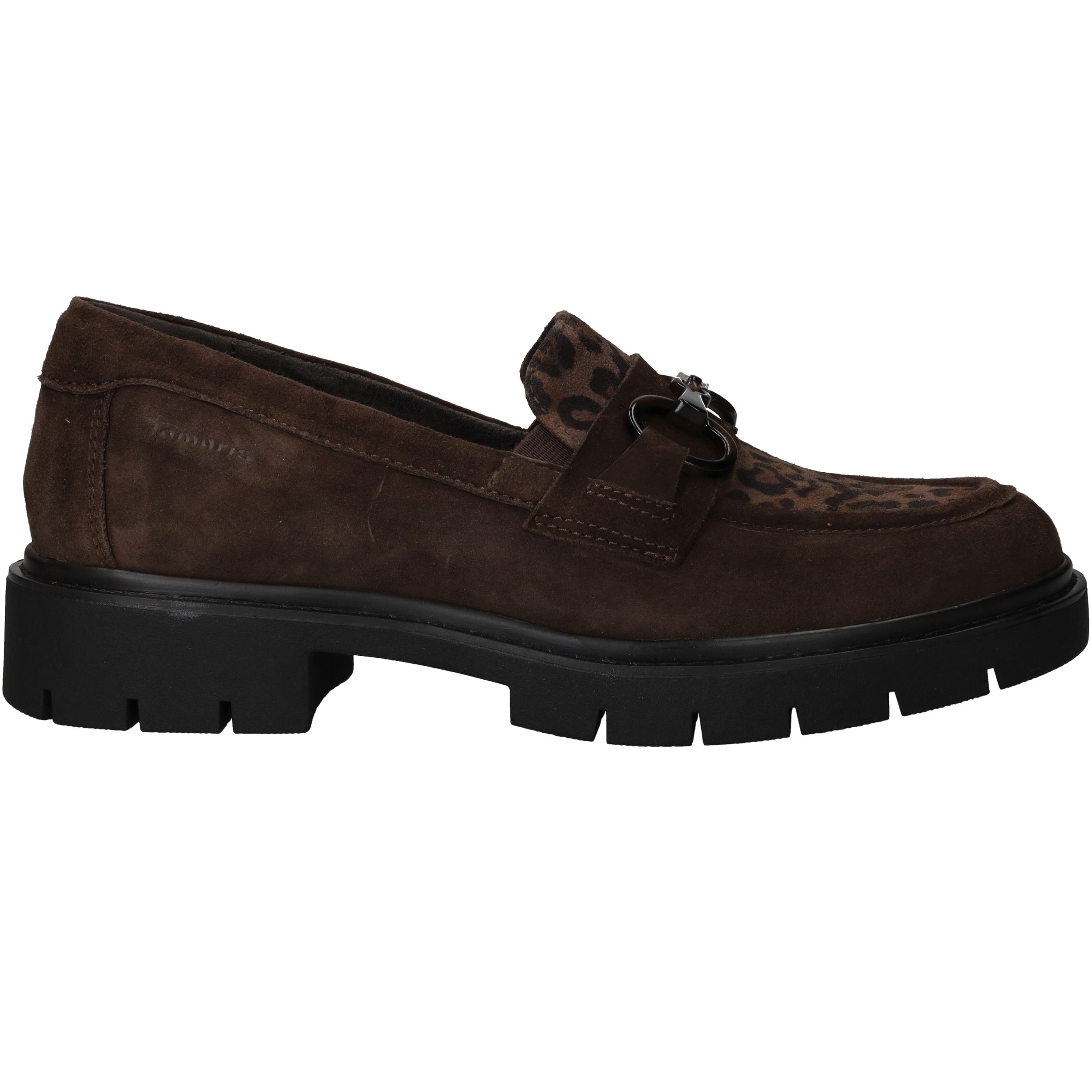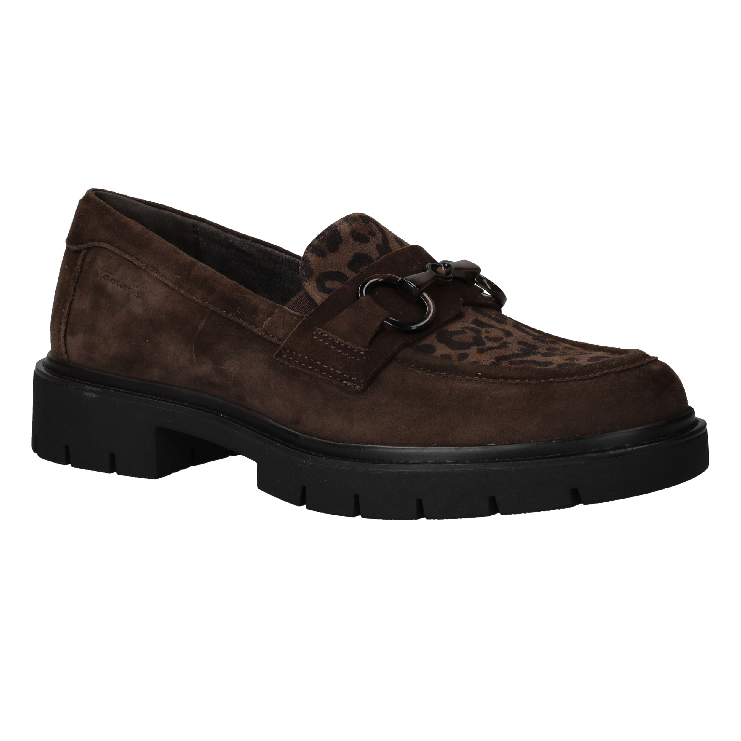 Deze bruine Tamaris loafer voor dames is helemaal van nu. Het zachte suède vormt zich fijn naar je voet en de dierenprint op de wreef geeft een speels accent. De voering van leer en textiel zorgt voor een prettig en ademend draaggevoel. De stevige profielzool biedt extra grip en comfort tijdens je dag.