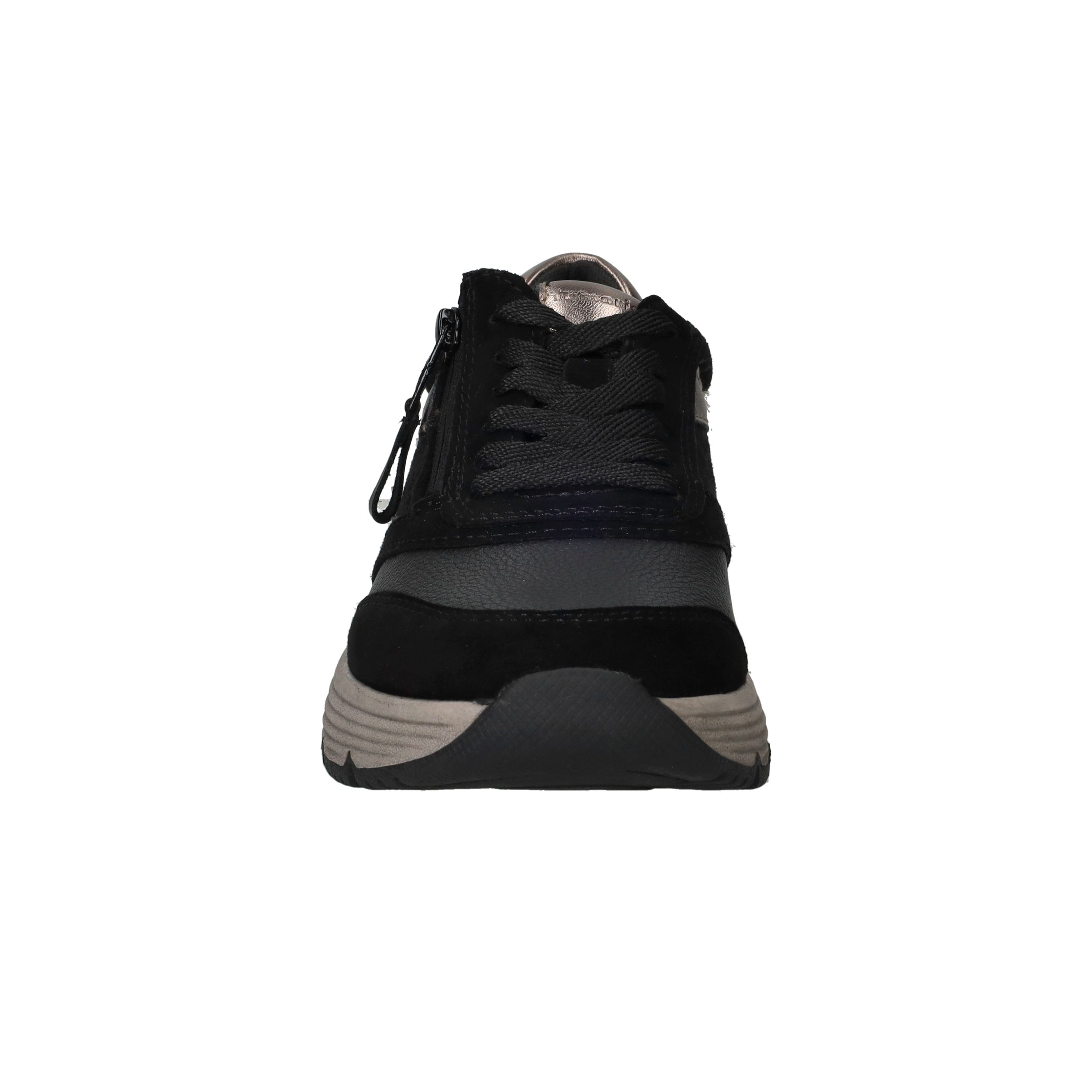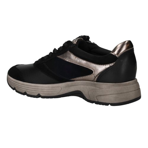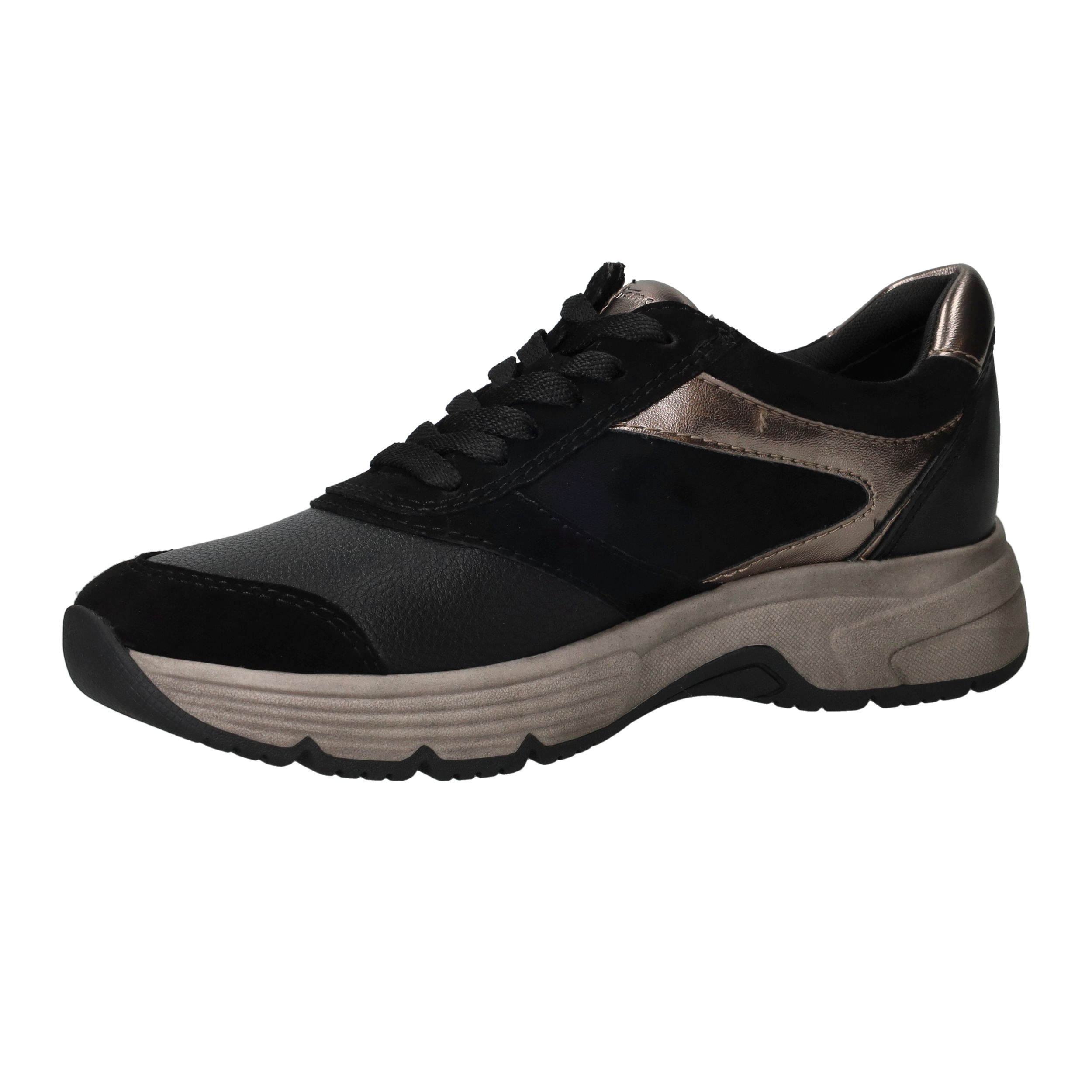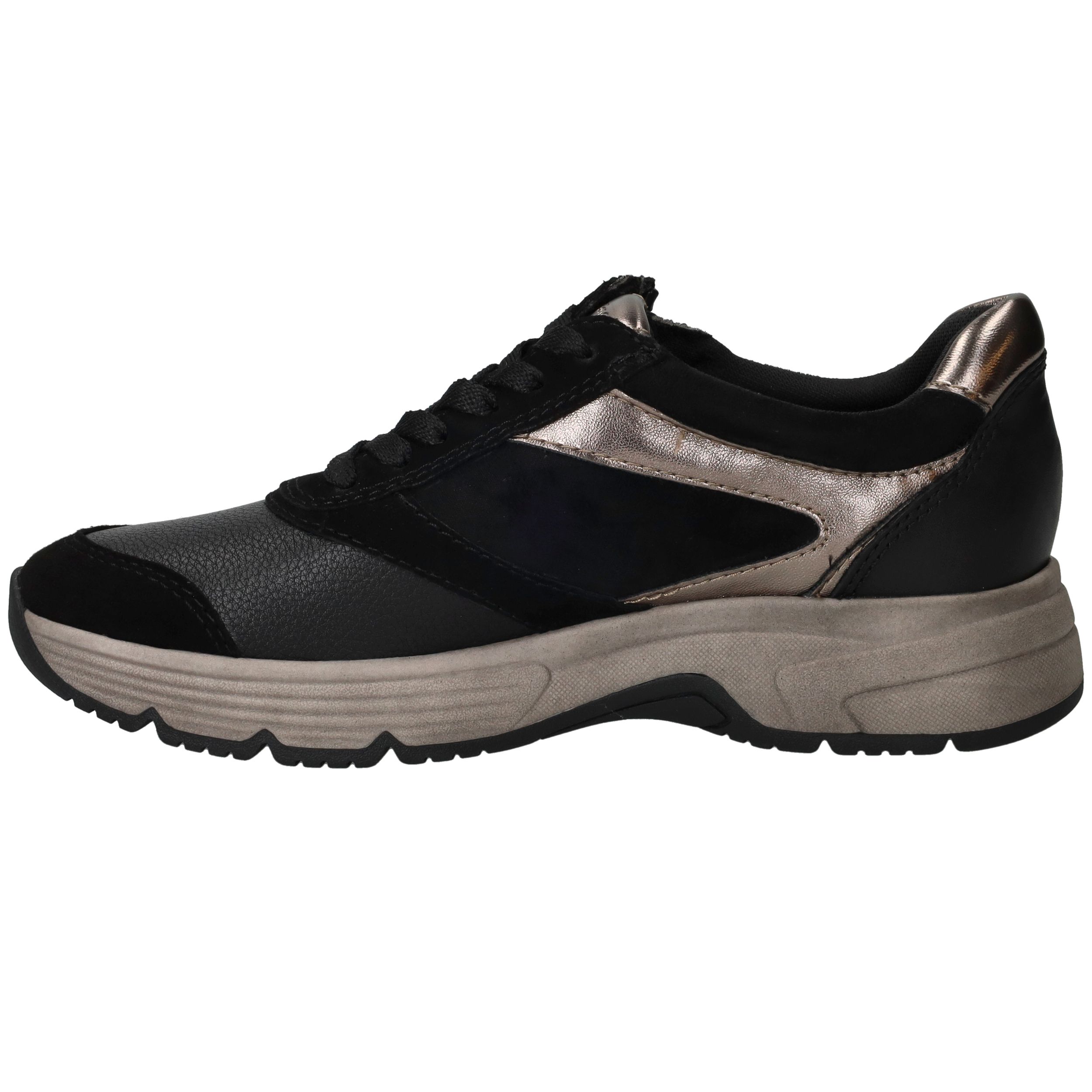 Deze zwarte/grijze Tamaris Comfort sneaker combineert een sportieve look met dagelijks draaggemak. Het bovenwerk is een mix van soepel leer en stevig textiel, terwijl de voering van textiel en synthetisch materiaal zorgt voor een prettig, onderhoudsvriendelijk binnenklimaat. Dankzij de combinatie van veters en een handige zijrits trek je deze sneaker snel aan en uit.