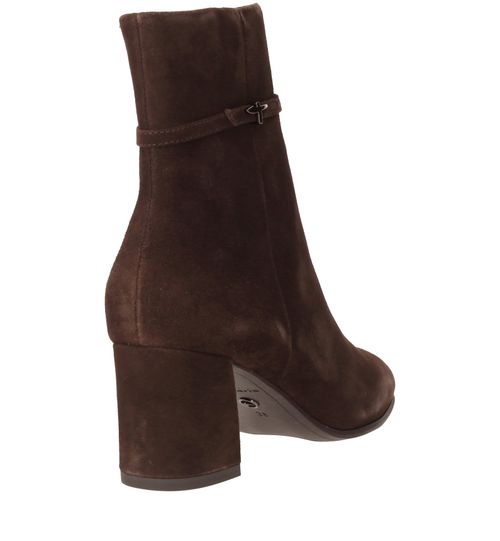 Elegant bruin enkellaarsje van Tamaris. Deze tijdloze enkellaars is gemaakt van suède.