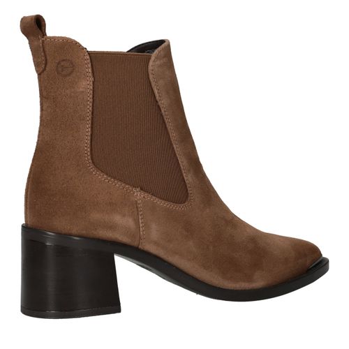 Deze Tamaris enkellaars is uitgevoerd in een warme cognac kleur en gemaakt van zacht suède. Dankzij de hak van 6 cm combineer je comfort met een elegante uitstraling.