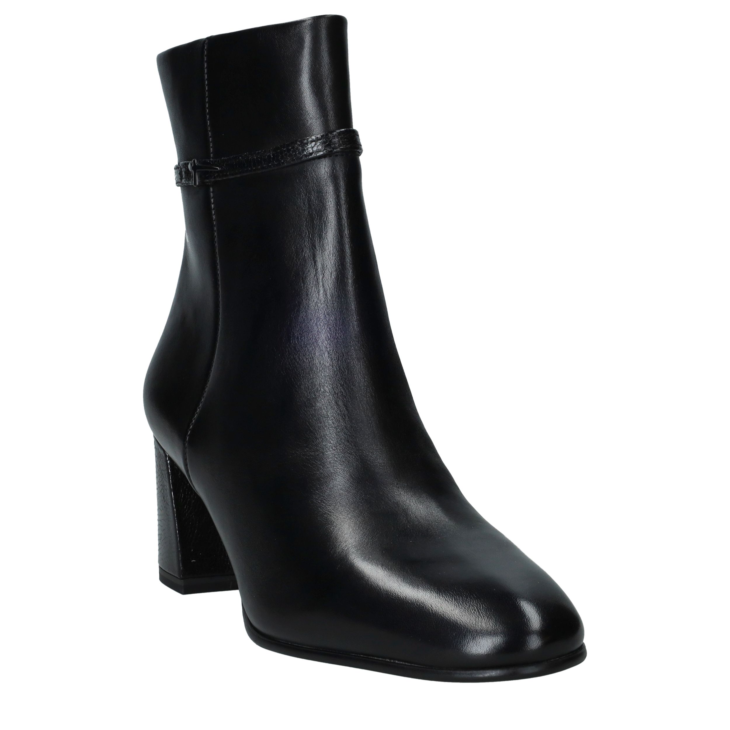 Deze elegante Tamaris enkellaarsjes in zwart leer zijn een absolute klassieker. Het gladde leer geeft een luxe en tijdloze uitstraling, terwijl de blokhak stabiliteit en elegantie combineert. Dankzij de comfortabele voetbreedte G geniet je van een fijne pasvorm. Perfect voor dames die houden van stijl en draagcomfort in één.