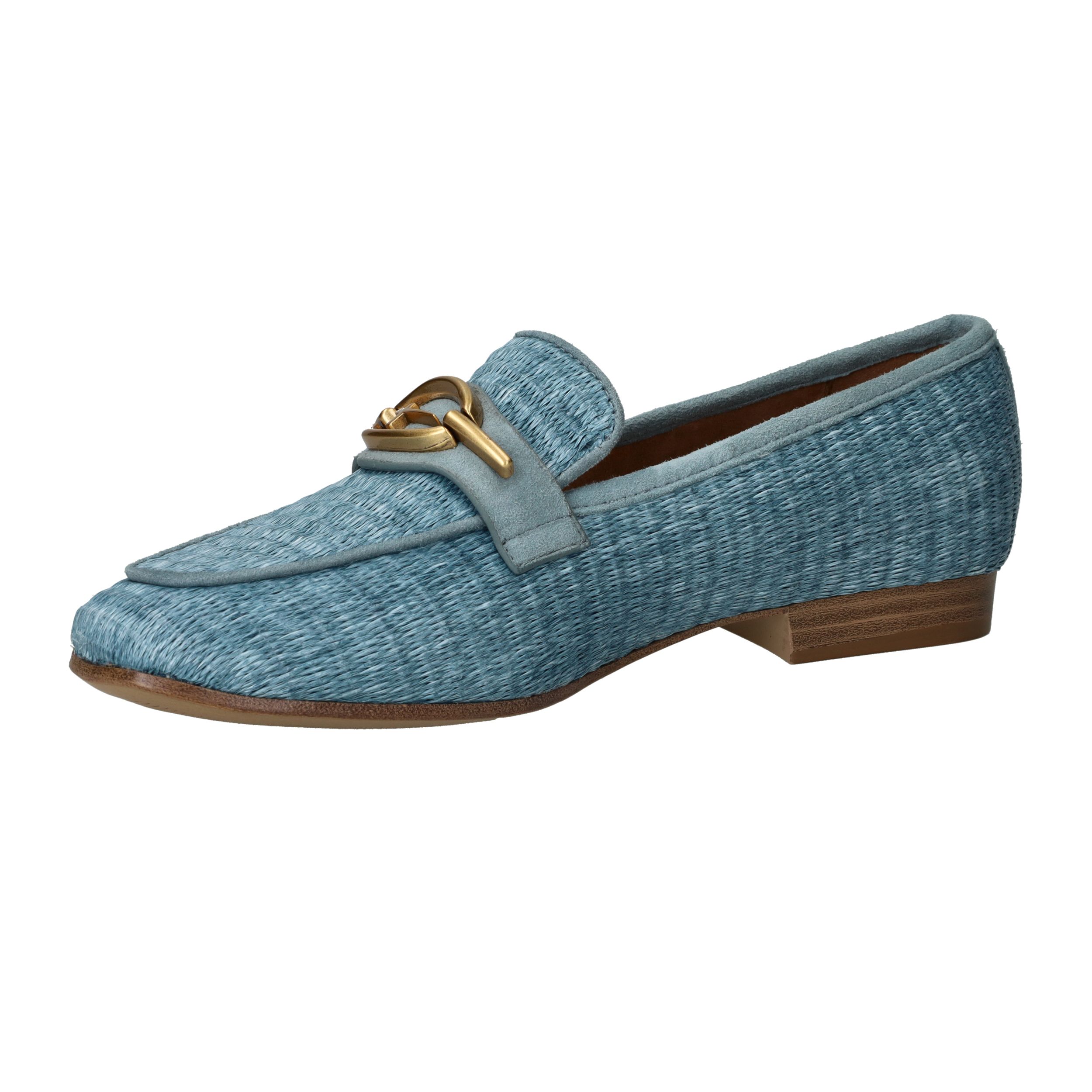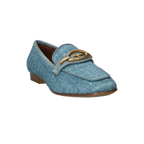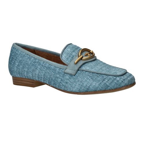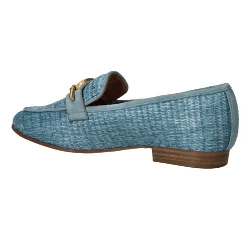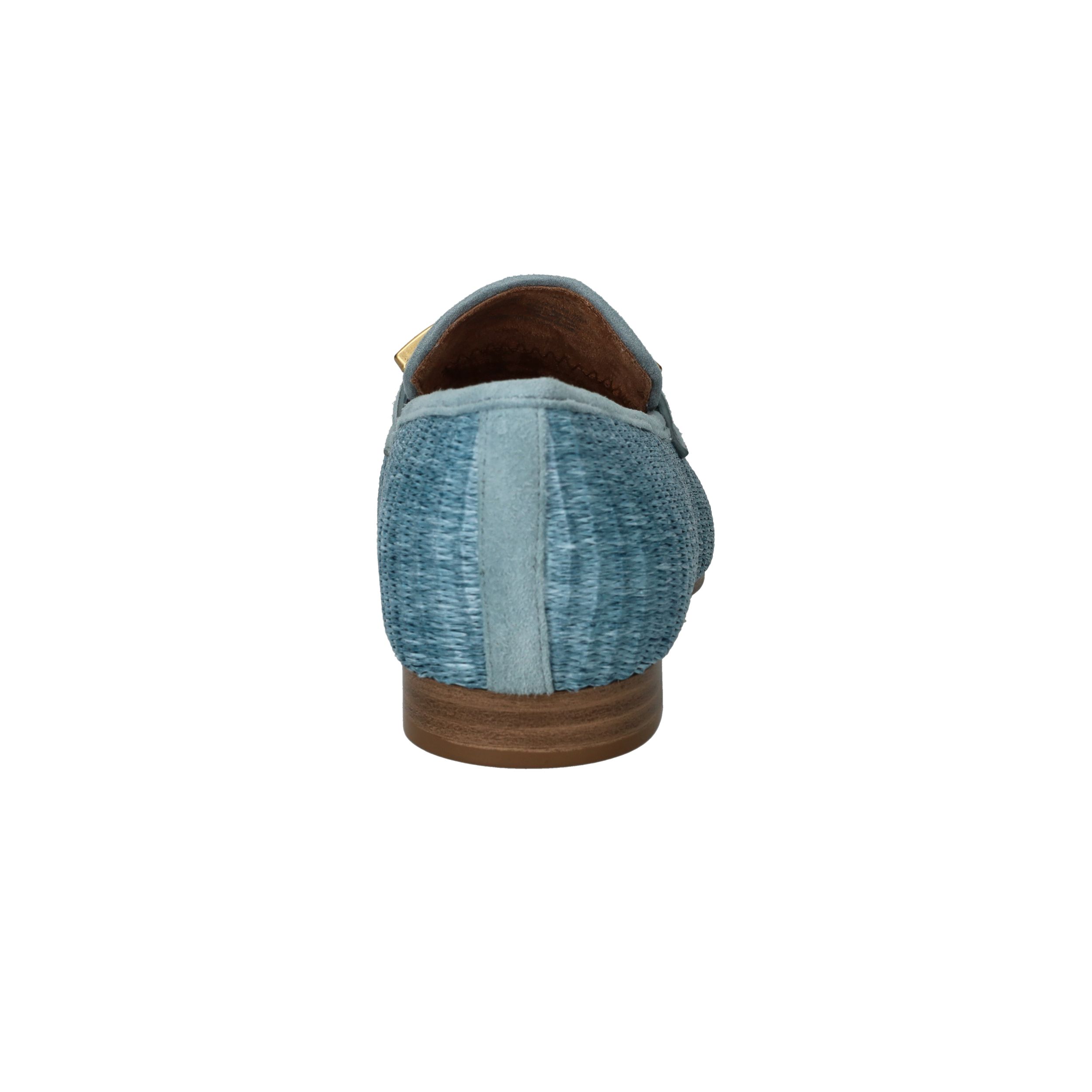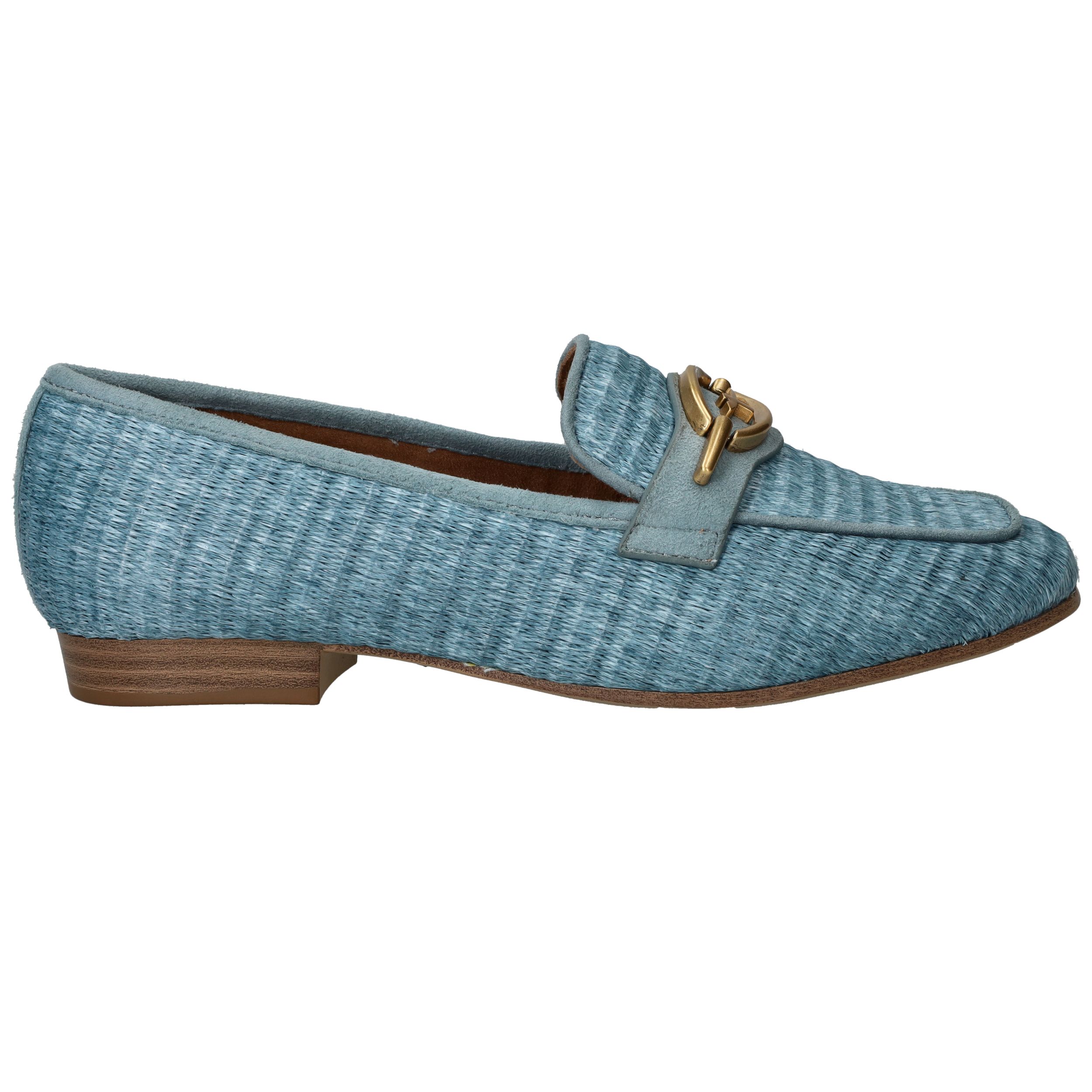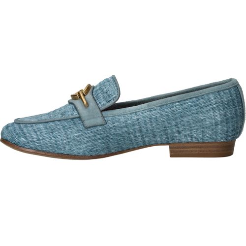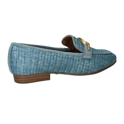 Stijlvolle blauwe Tamaris loafer met een unieke gevlochten structuur.