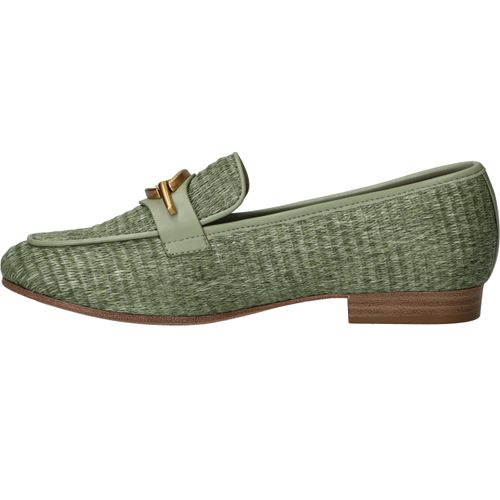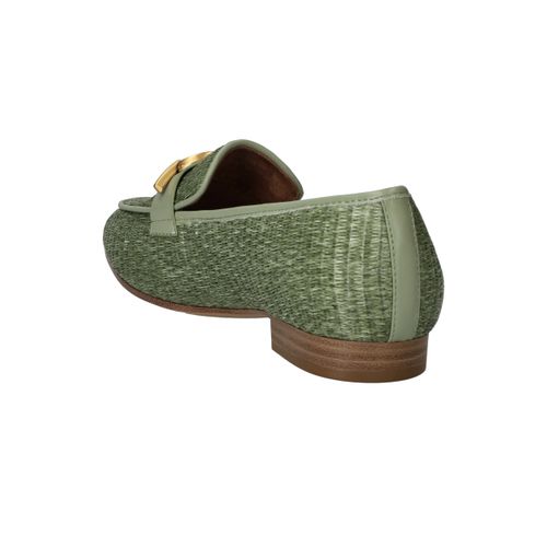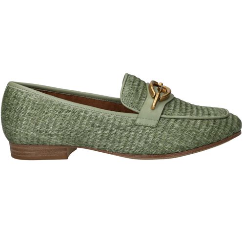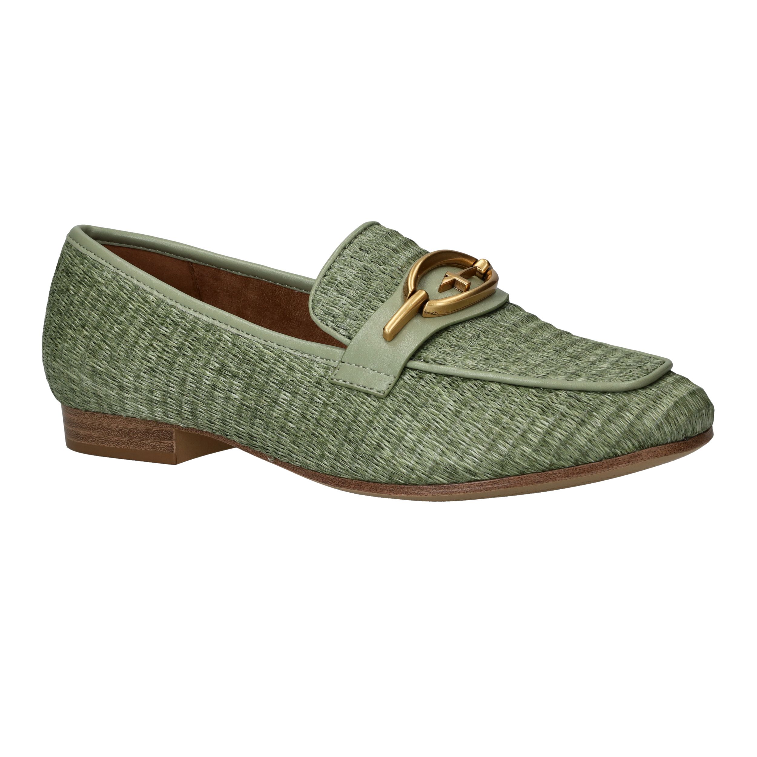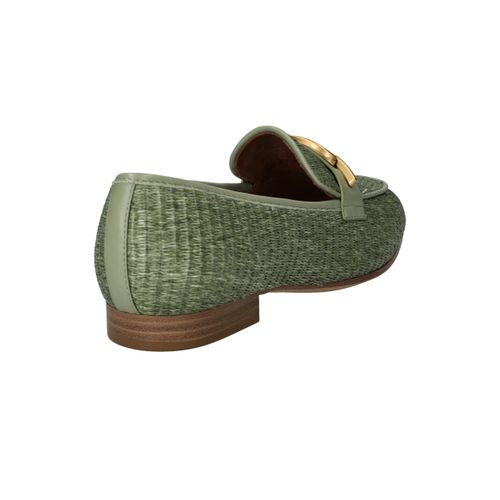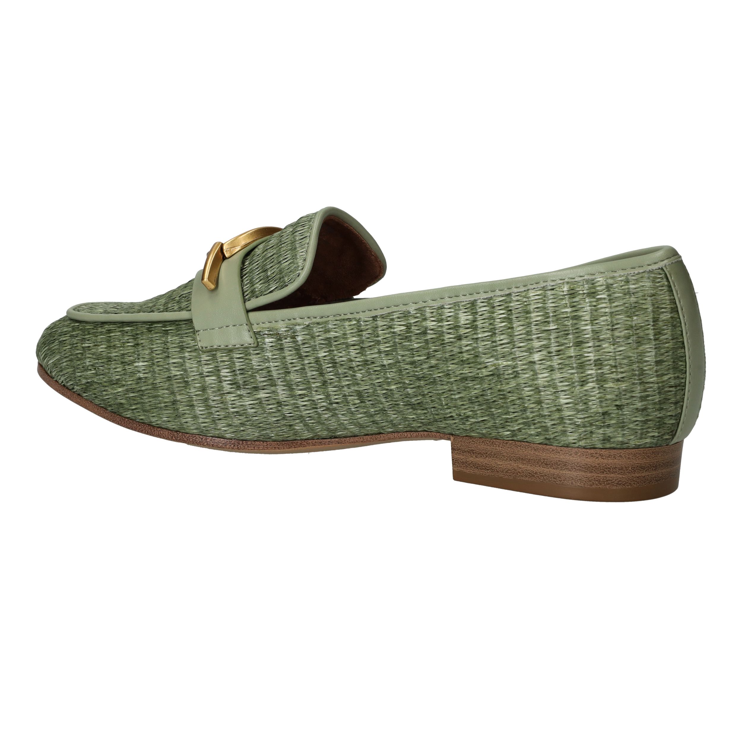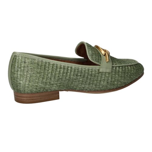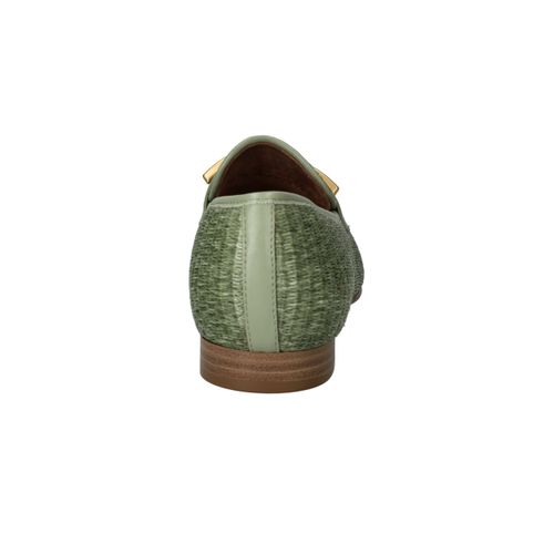 Stijlvolle groene Tamaris loafer met een unieke gevlochten structuur.