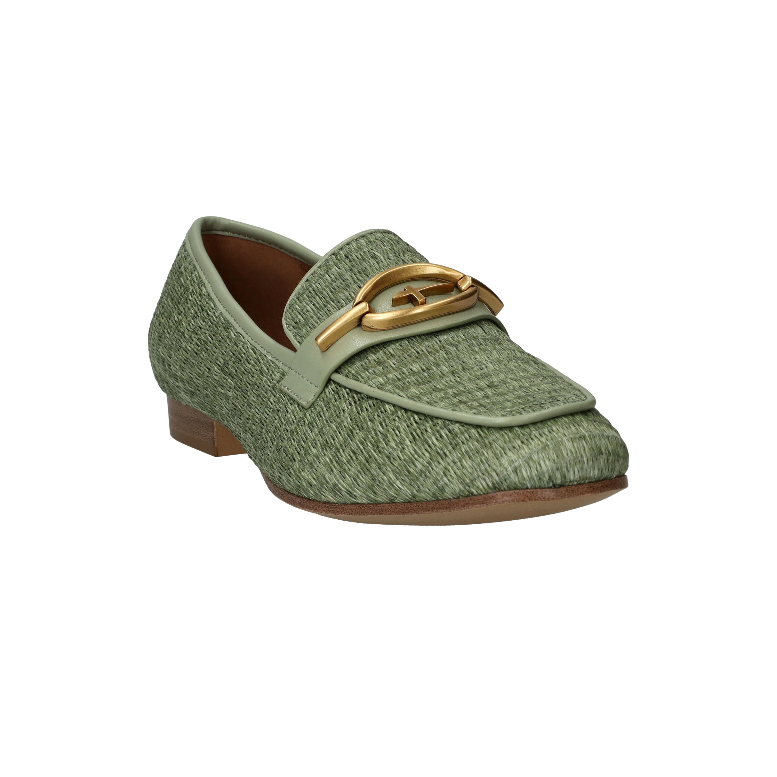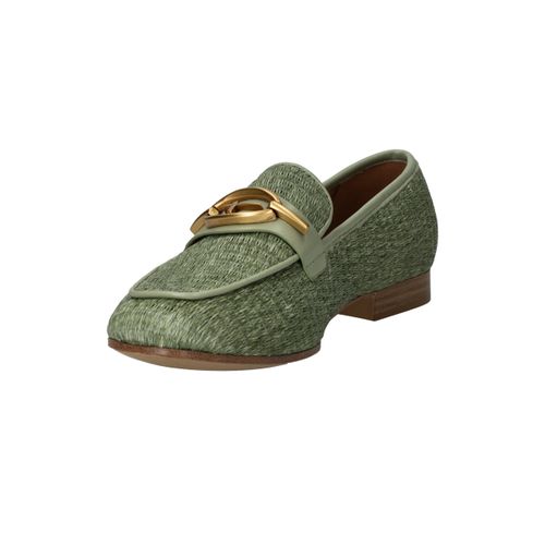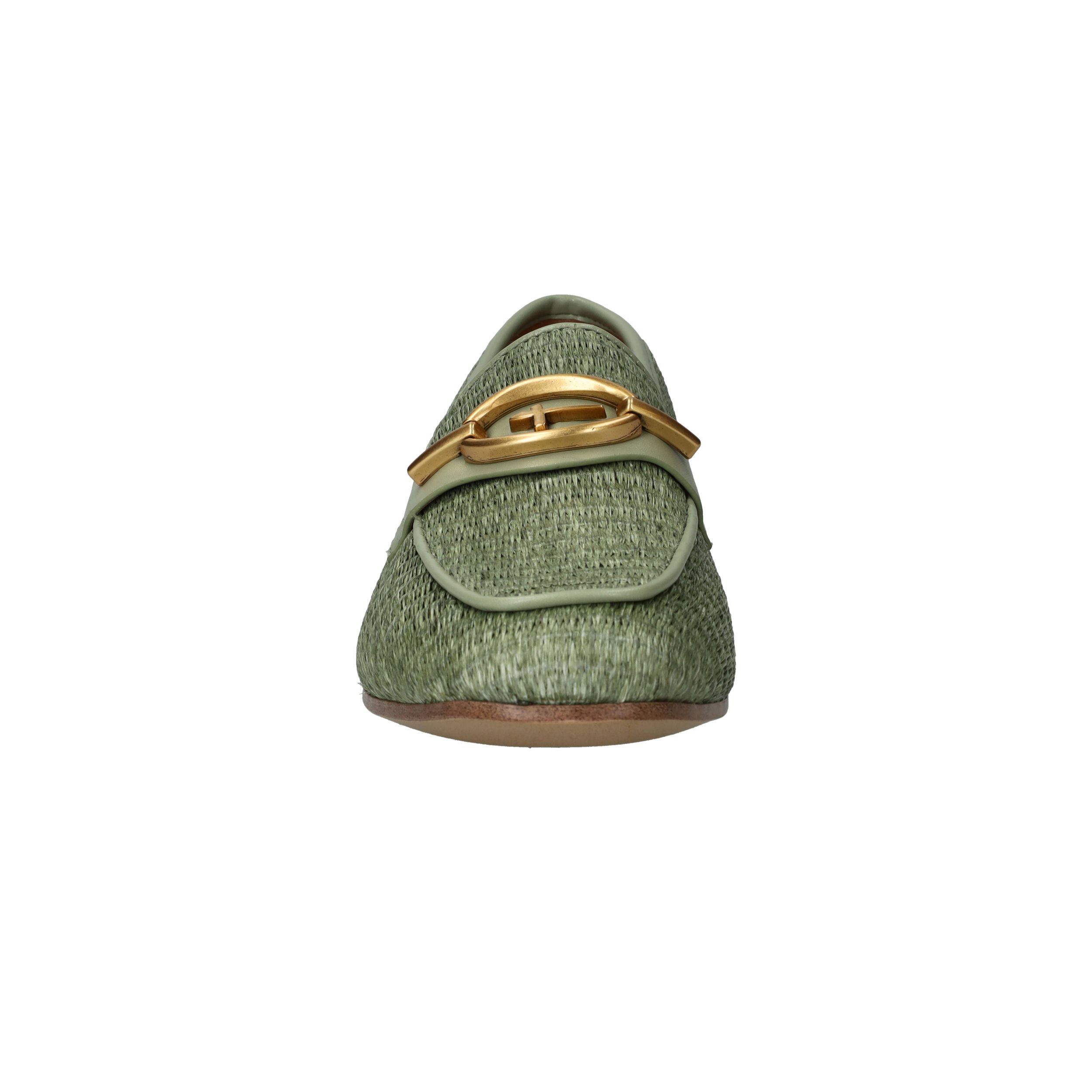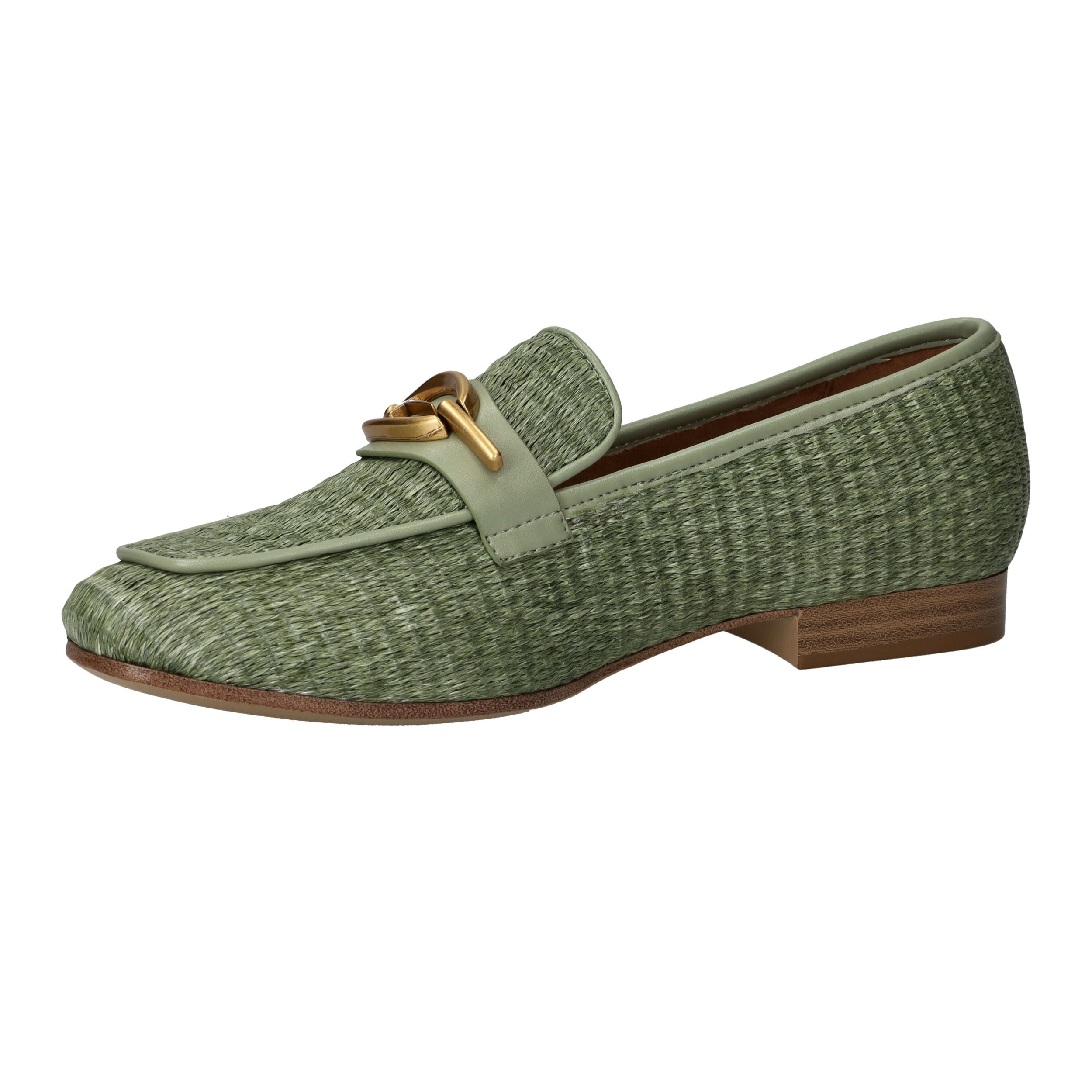 Stijlvolle groene Tamaris loafer met een unieke gevlochten structuur.