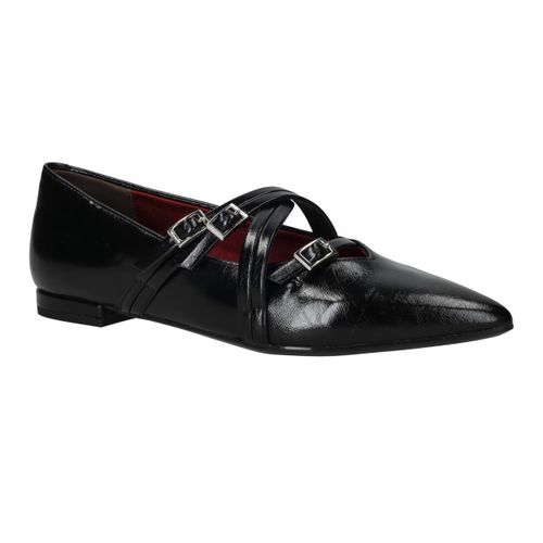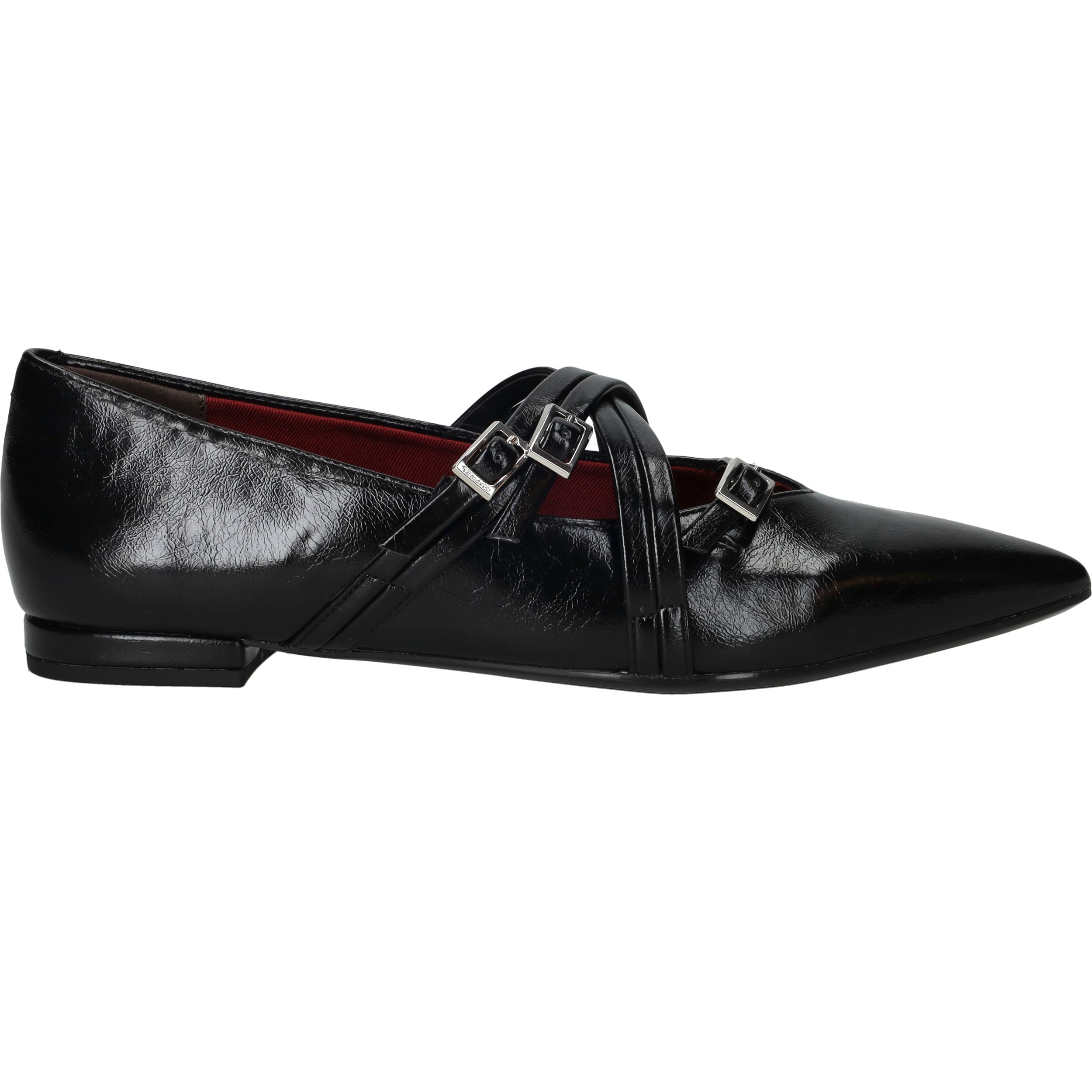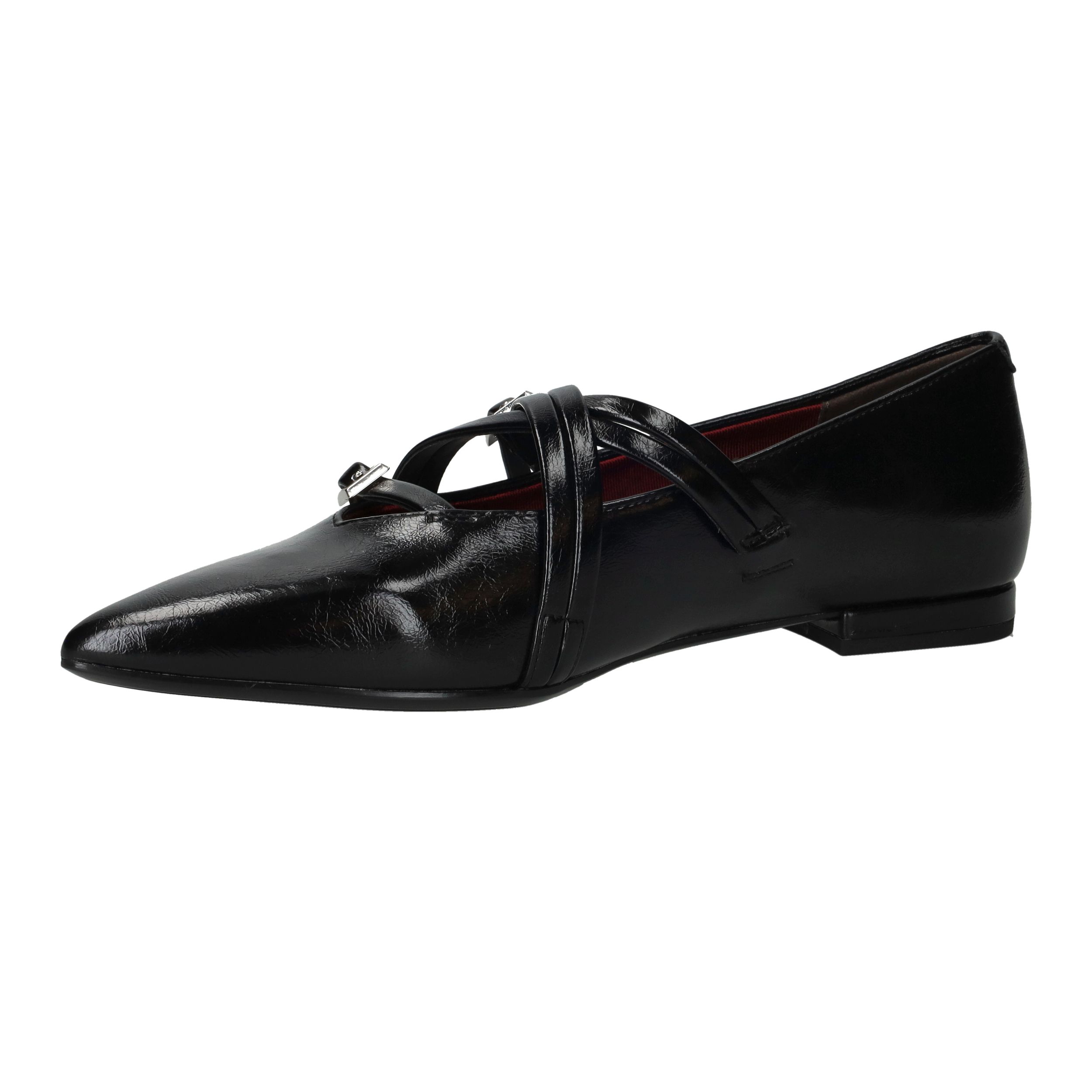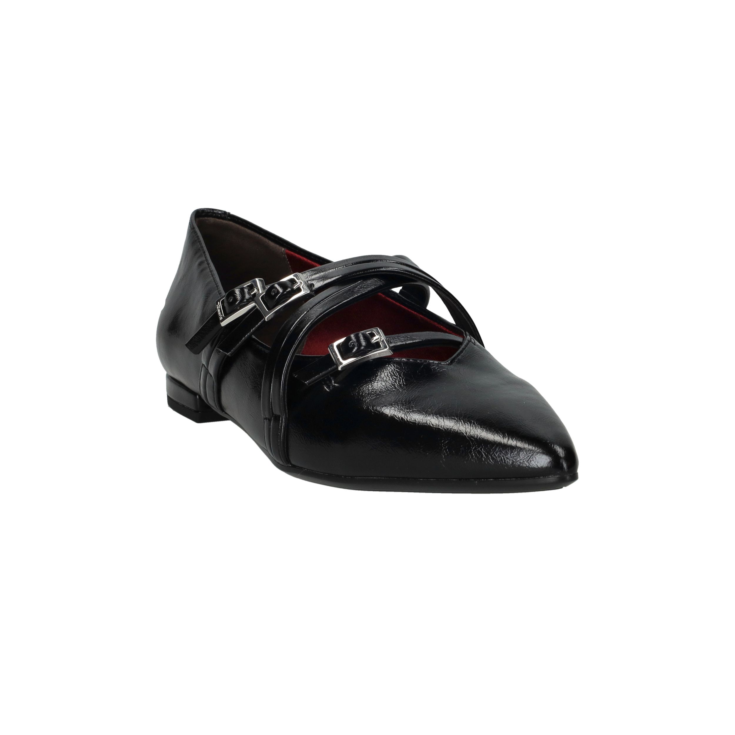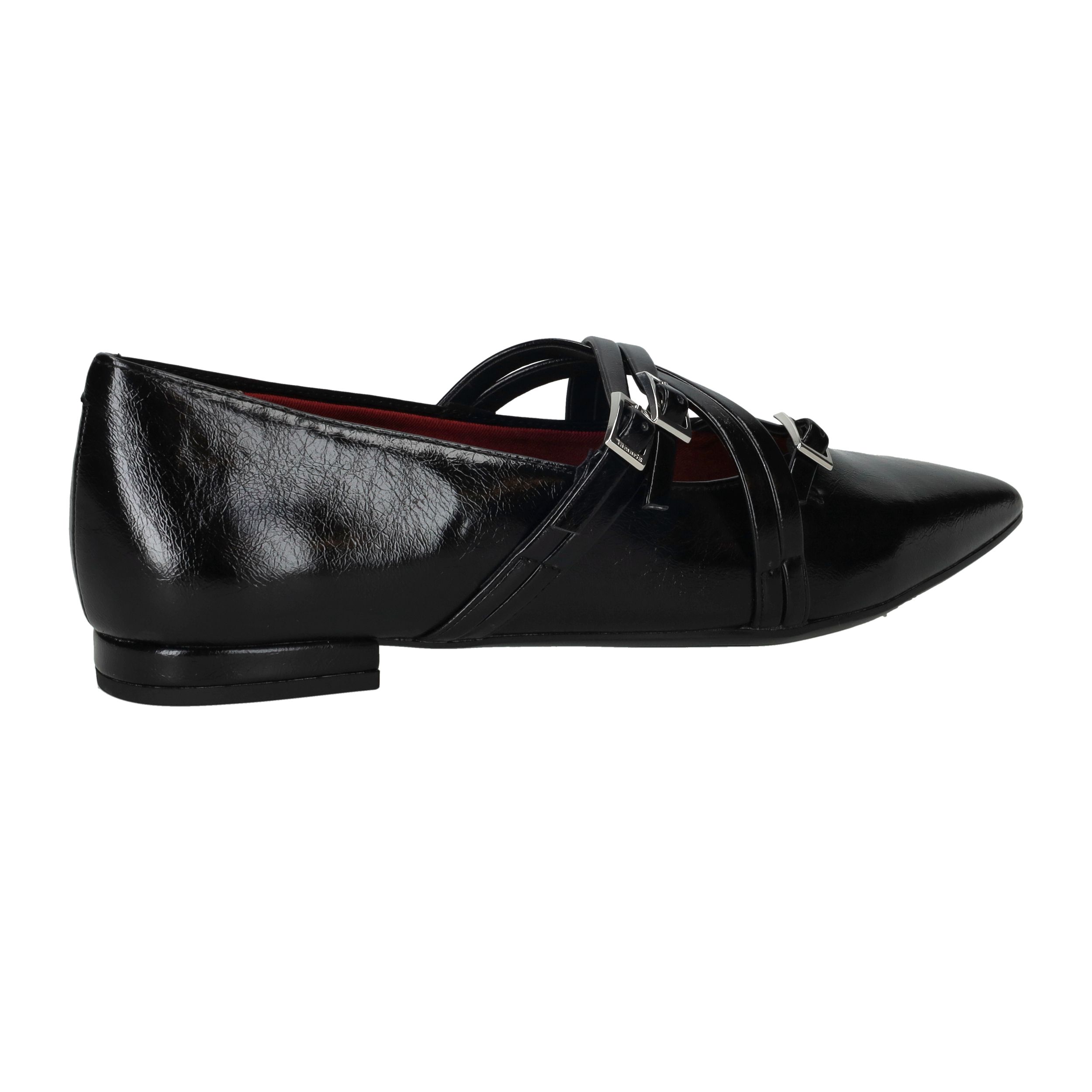 Deze zwarte Tamaris instappers combineren een verfijnde uitstraling met een moderne twist. Het kunstleer heeft een subtiele glans en de puntige neus zorgt voor een elegante look. De gekruiste bandjes met gespsluiting geven de schoen extra karakter én zorgen ervoor dat hij stevig aan de voet blijft zitten. Met een zachte synthetische voering en voetbreedte G zijn ze ideaal voor stijl én comfort.