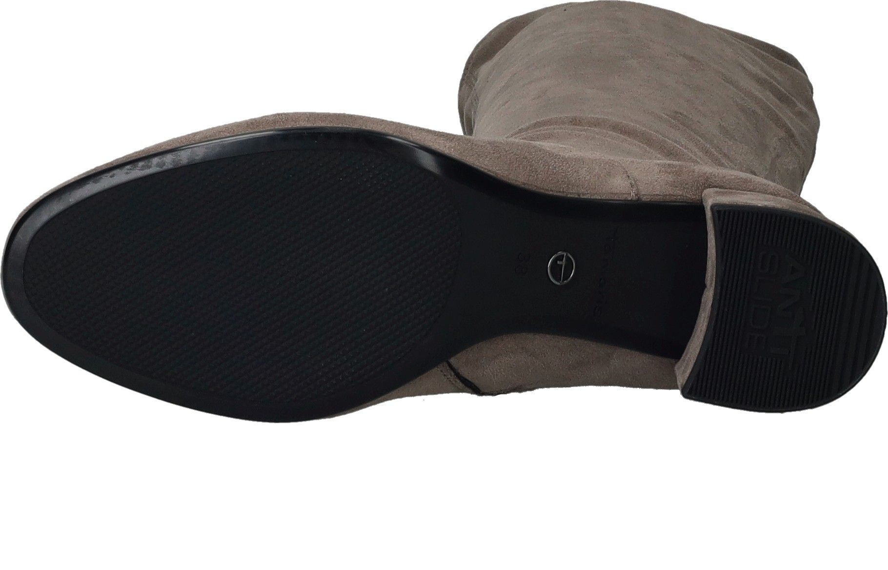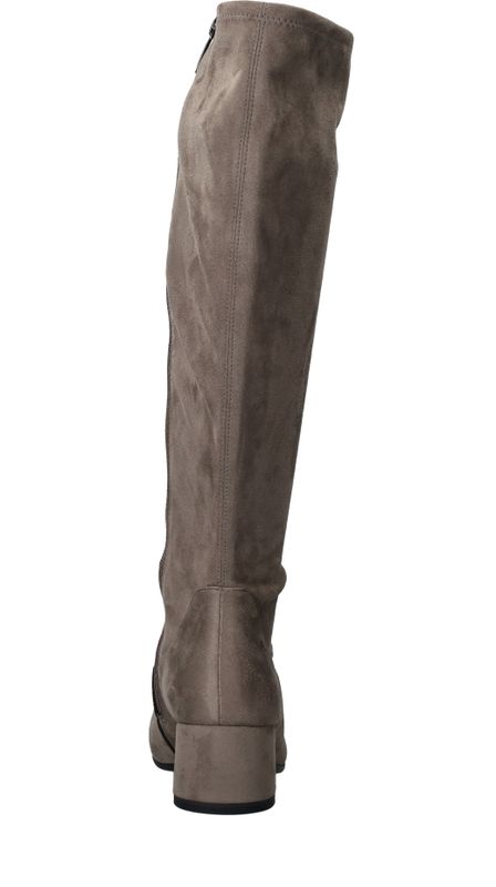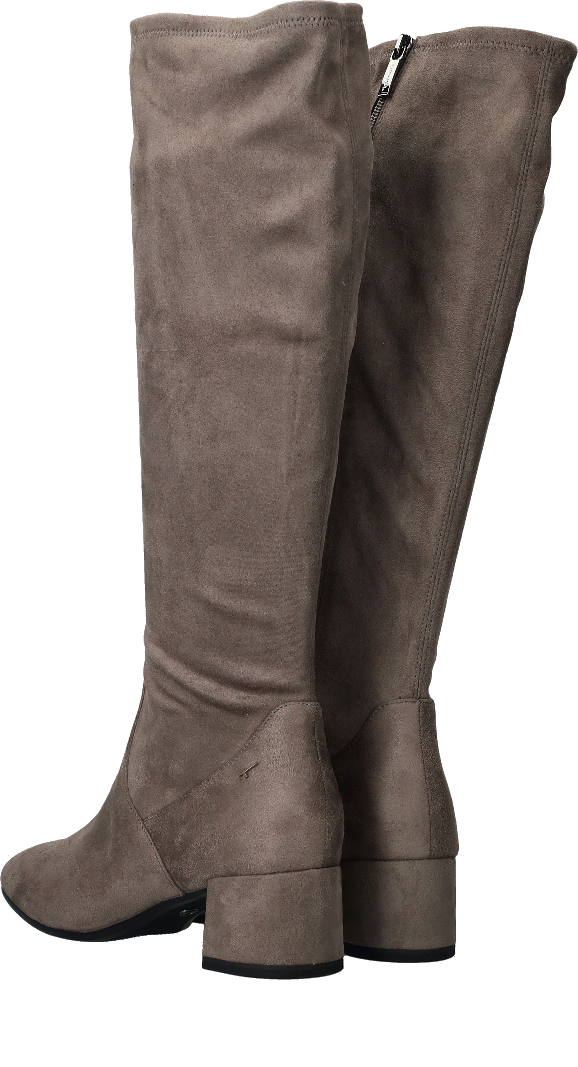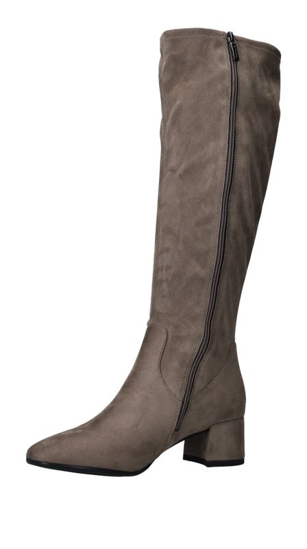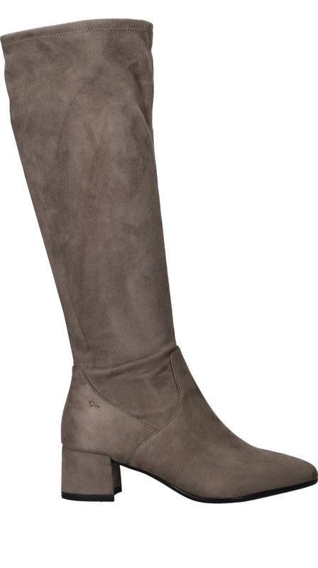 Elegante lichtgrijze Tamaris lange laars. De schacht is gemaakt van stretch materiaal waardoor de laars mooi aansluit om de benen.