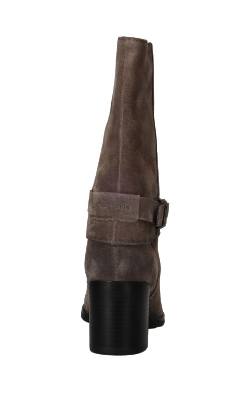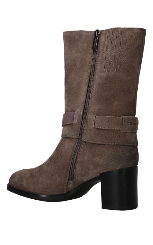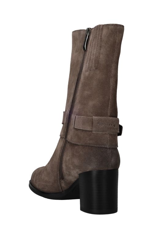 De Tamaris laars voor dames is een elegante keuze voor wie comfort en stijl wil combineren. Deze prachtige laars in taupe is gemaakt van een mix van zacht suède en textiel en heeft een warme, ademende textiele voering. De stijlvolle gesp rond de enkel geeft de schoen een verfijnde uitstraling, terwijl de stevige hak zorgt voor een vrouwelijk silhouet met extra stabiliteit. Perfect te combineren met zowel jurken als jeans voor een modieuze look.