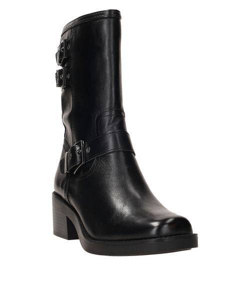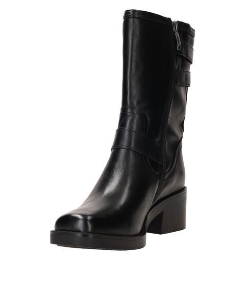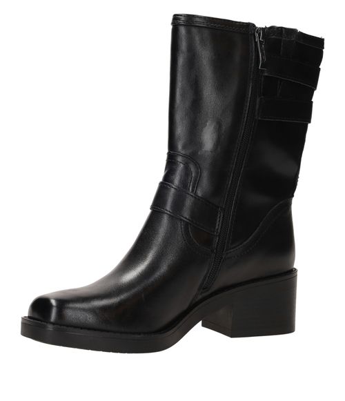 Gave Tamaris laars in het zwart. De bikerboot heeft drie riempjes met een zilveren gesp.