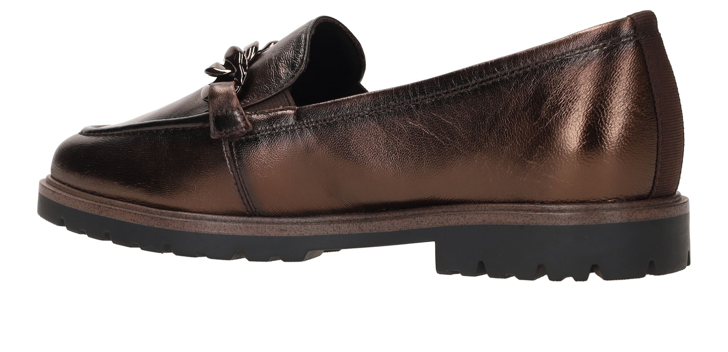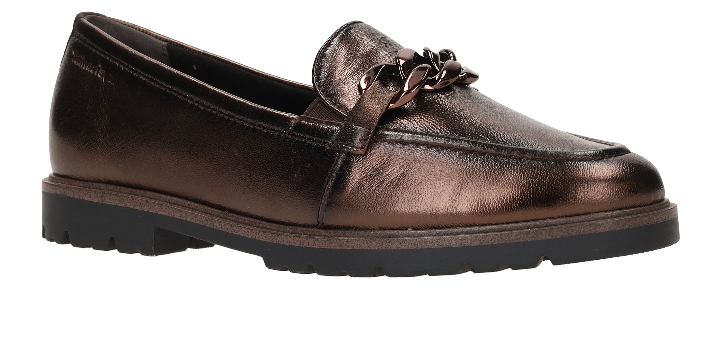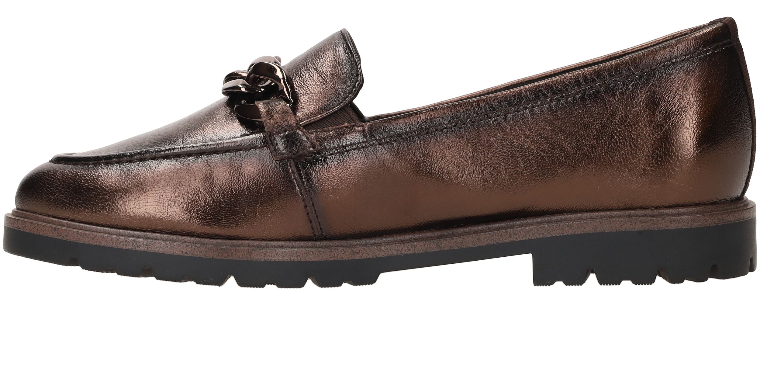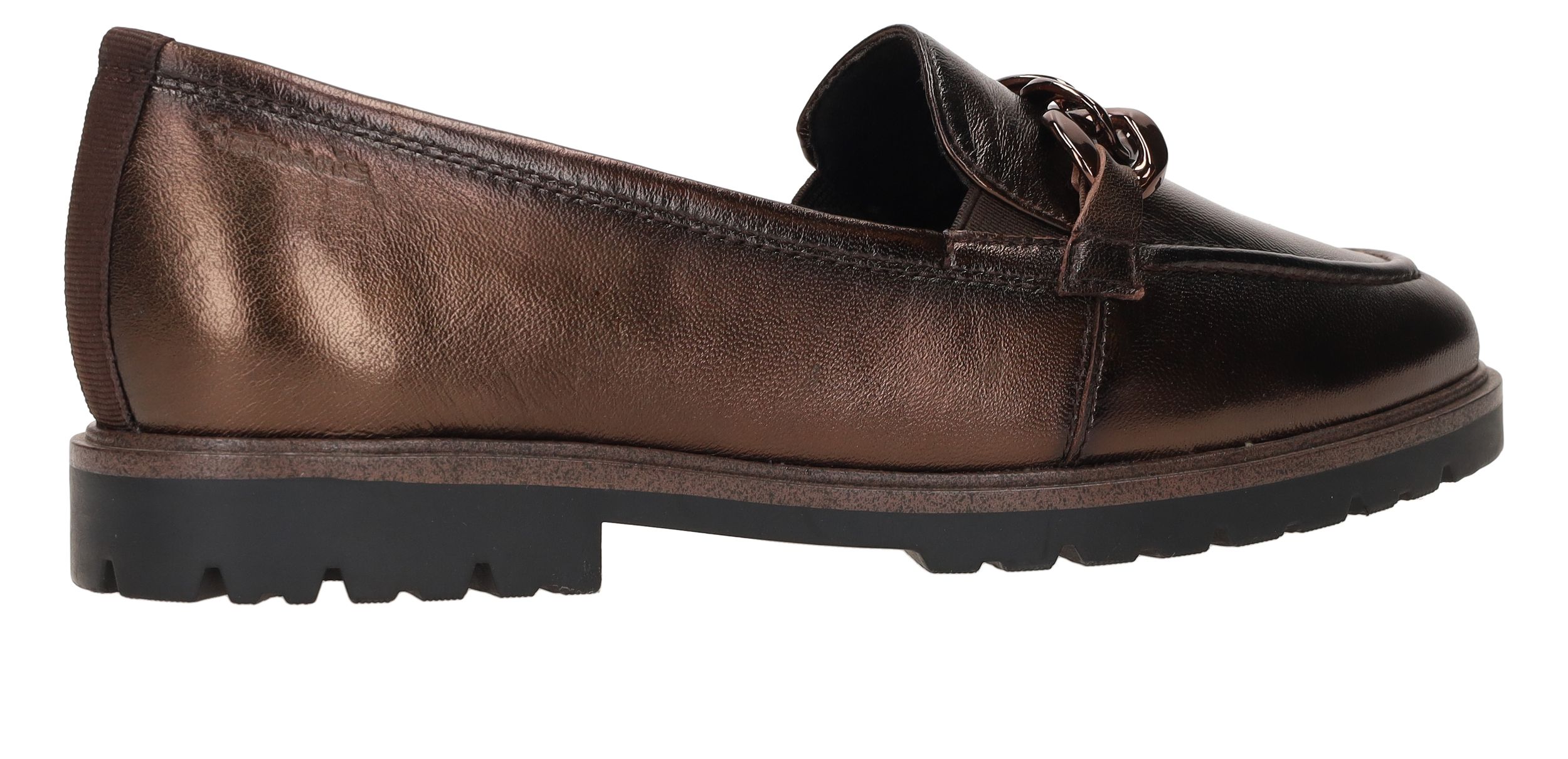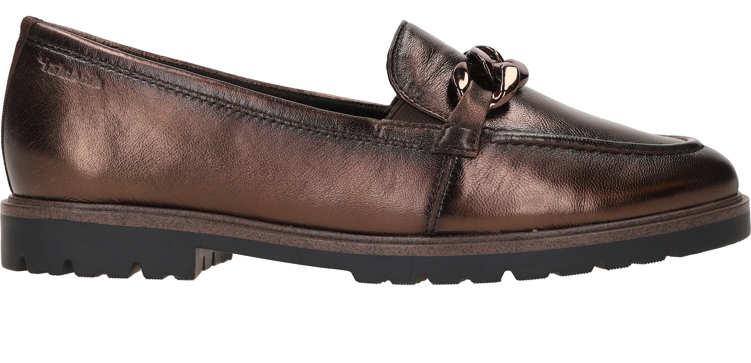 Stijlvolle Tamaris loafer voor dames in een prachtige mocca metallic kleur! Draag de leren loafer casual of juist bij een geklede outfit.
