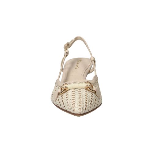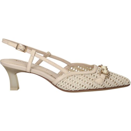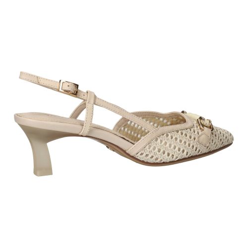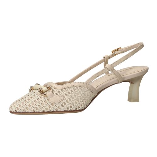 De schoen is zorgvuldig ontworpen met aandacht voor detail, wat je terugziet in de fijne afwerking en de gestroomlijnde vorm. Het beige leer voelt soepel aan en vormt zich mooi om de voet, waardoor de schoen niet alleen elegant staat, maar ook prettig aanvoelt bij elke stap. Het subtiele gespje rond de enkel zorgt voor een verfijnde touch. De pasvorm is zo ontwikkeld dat de druk gelijkmatig over de voet wordt verdeeld, wat bijdraagt aan een aangenaam loopgevoel gedurende de dag.