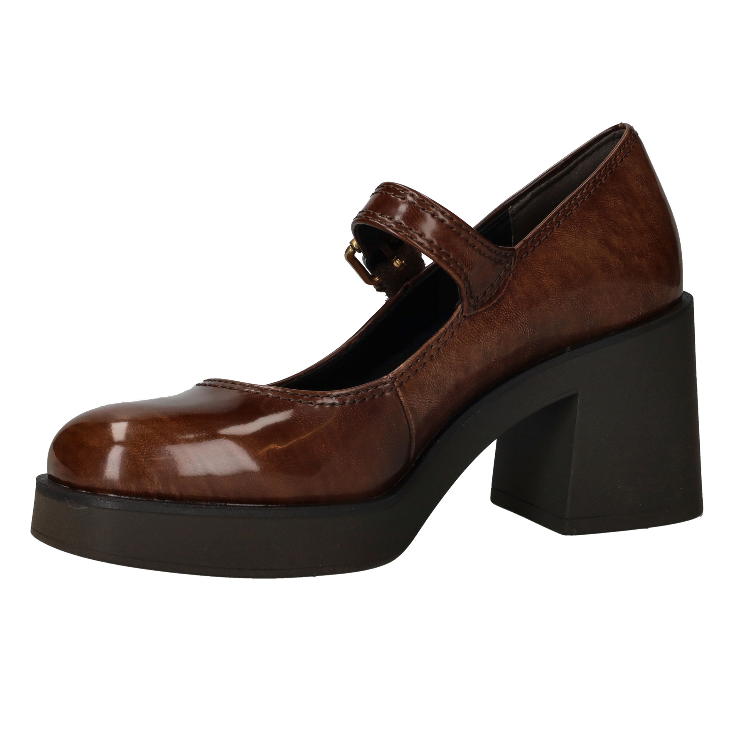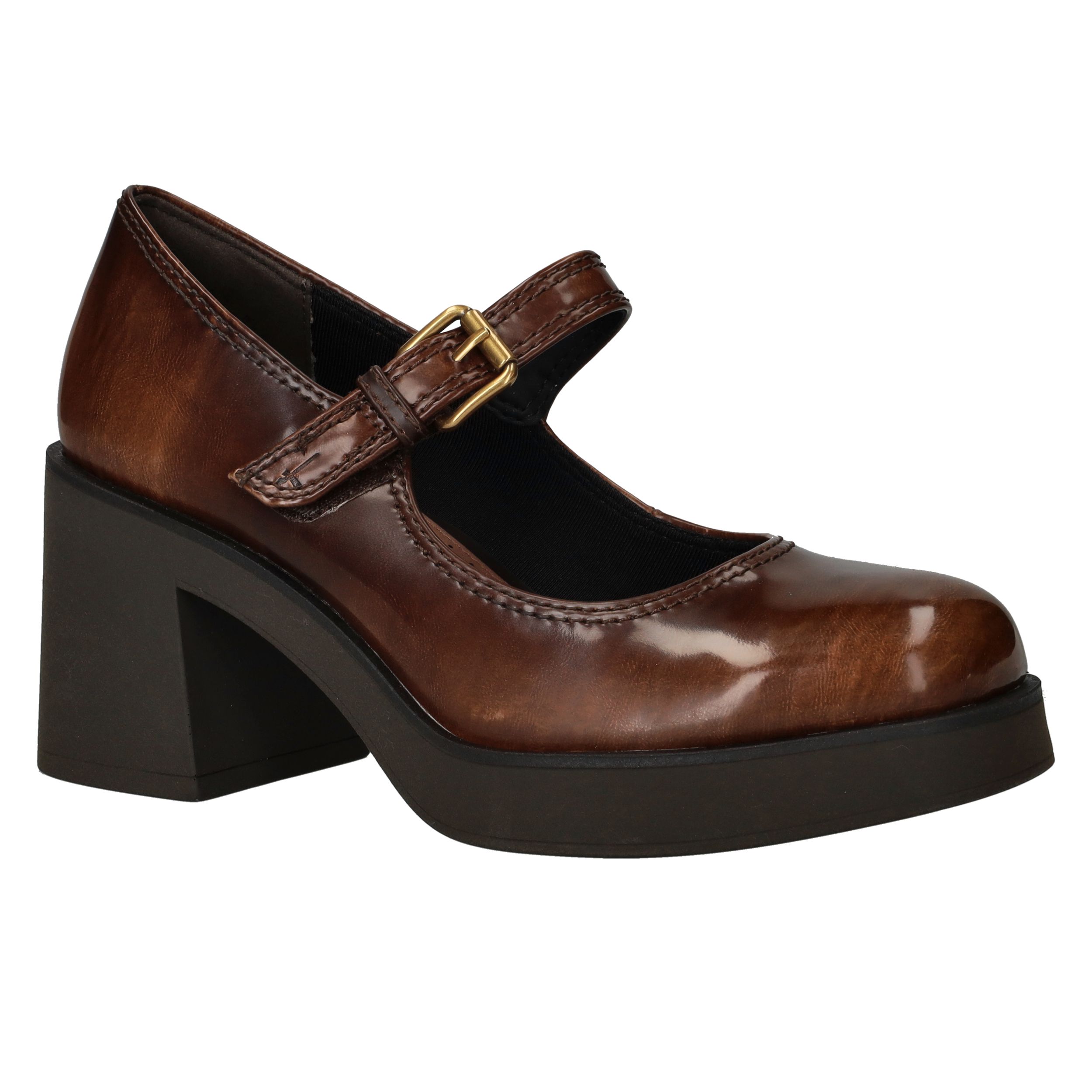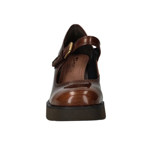 Deze prachtige Tamaris pump voor dames in een warme, glanzende bruine tint geeft iedere outfit een modieuze touch. De siergesp met klittenbandsluiting combineert stijl met gemak en zorgt voor een subtiel detail dat meteen in het oog springt. Dankzij de stevige blokhak geniet je van een comfortabele pasvorm, terwijl het synthetische materiaal aan de buitenkant in combinatie met de zachte synthetische- en textielvoering ervoor zorgt dat je deze schoenen de hele dag moeiteloos draagt.