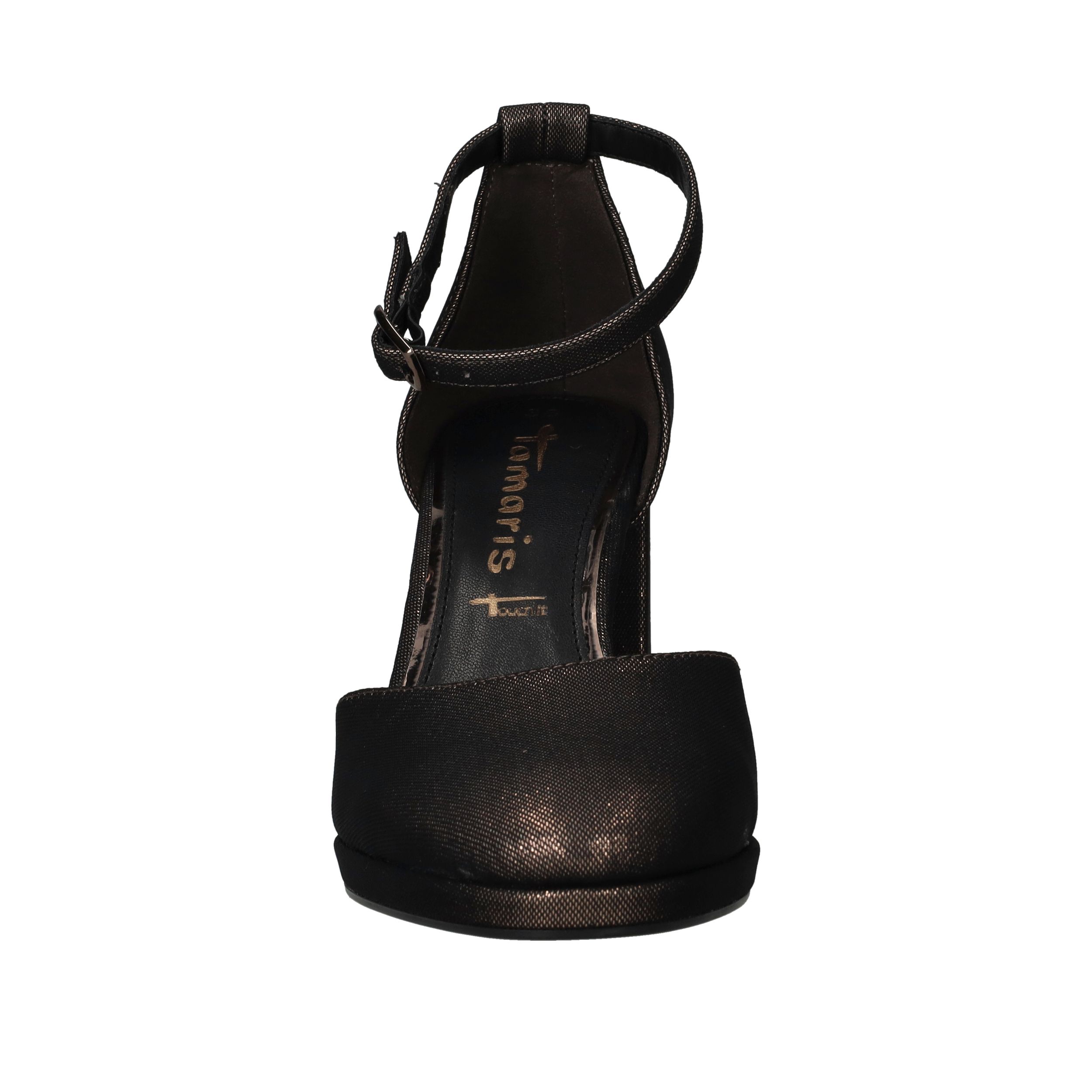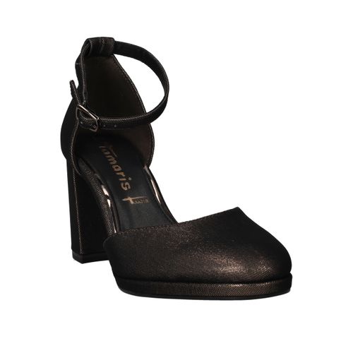 Deze elegante Tamaris pumps hebben een prachtige glans dankzij het luxe textiel aan de buitenkant. De combinatie van kunstleer en textiel in de voering zorgt voor een comfortabele pasvorm en een chique uitstraling. Met de blokhak en het enkelbandje zijn deze pumps perfect voor feestelijke gelegenheden of een stijlvolle werkoutfit.