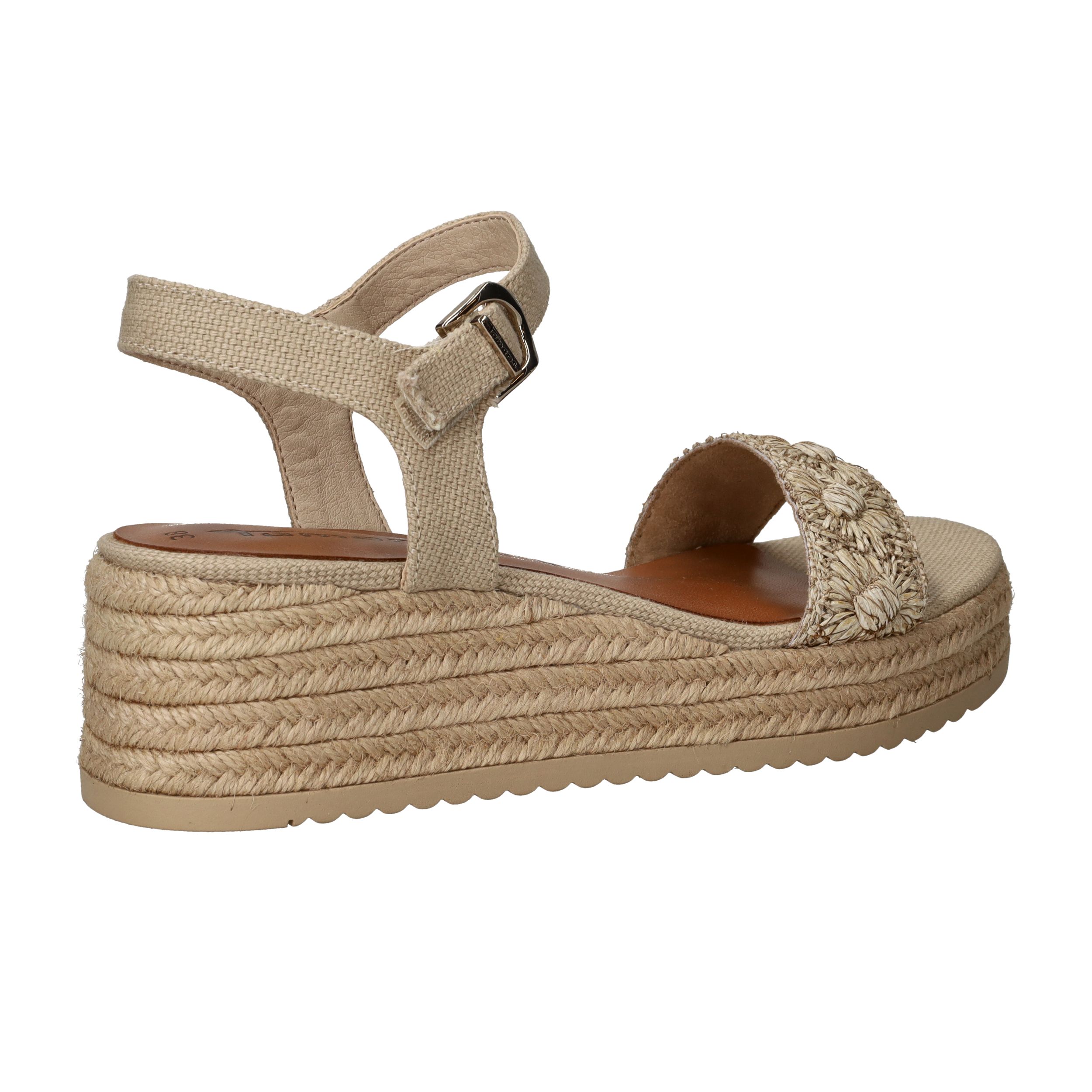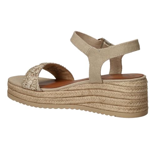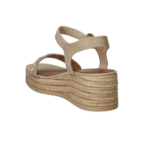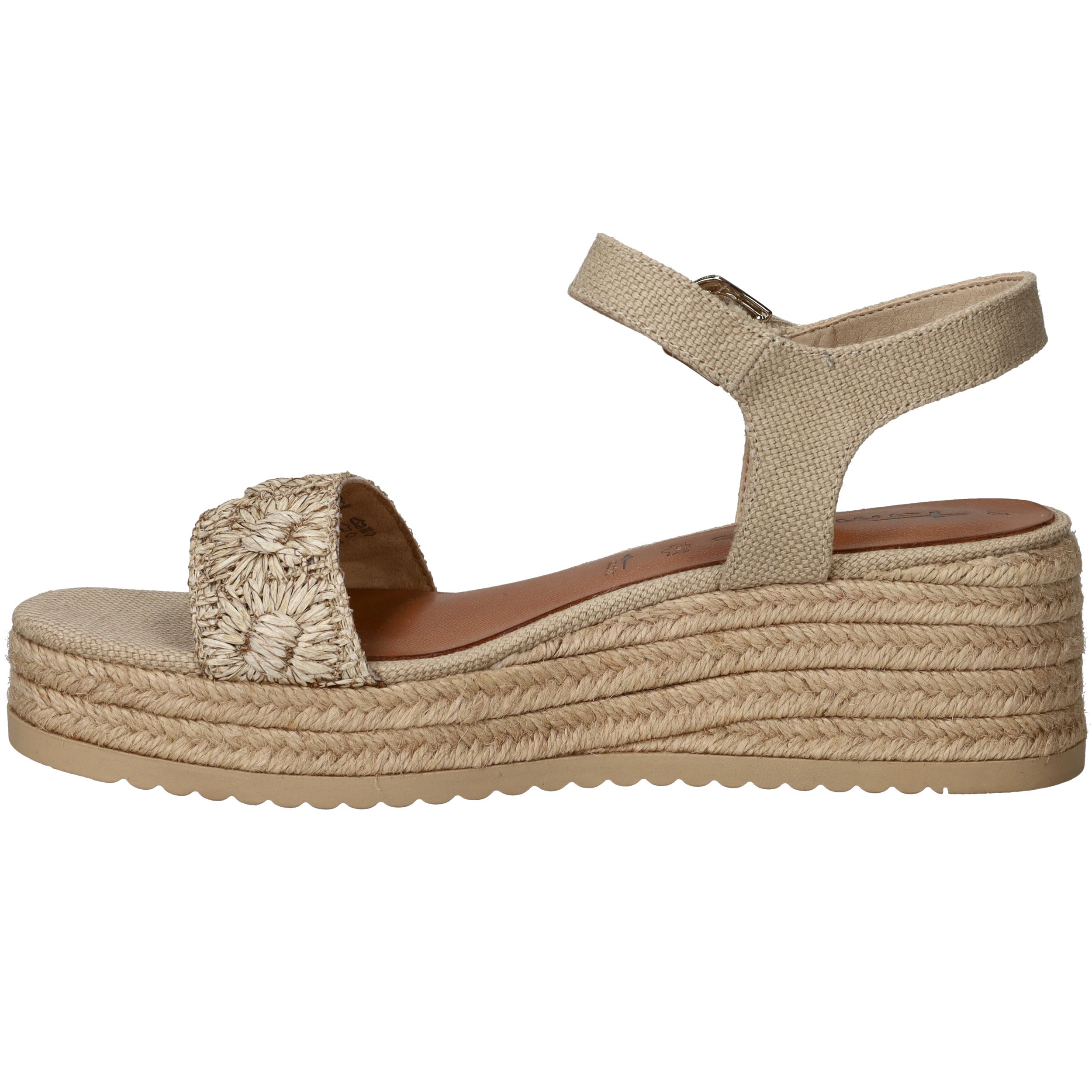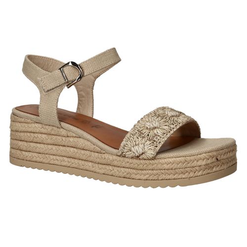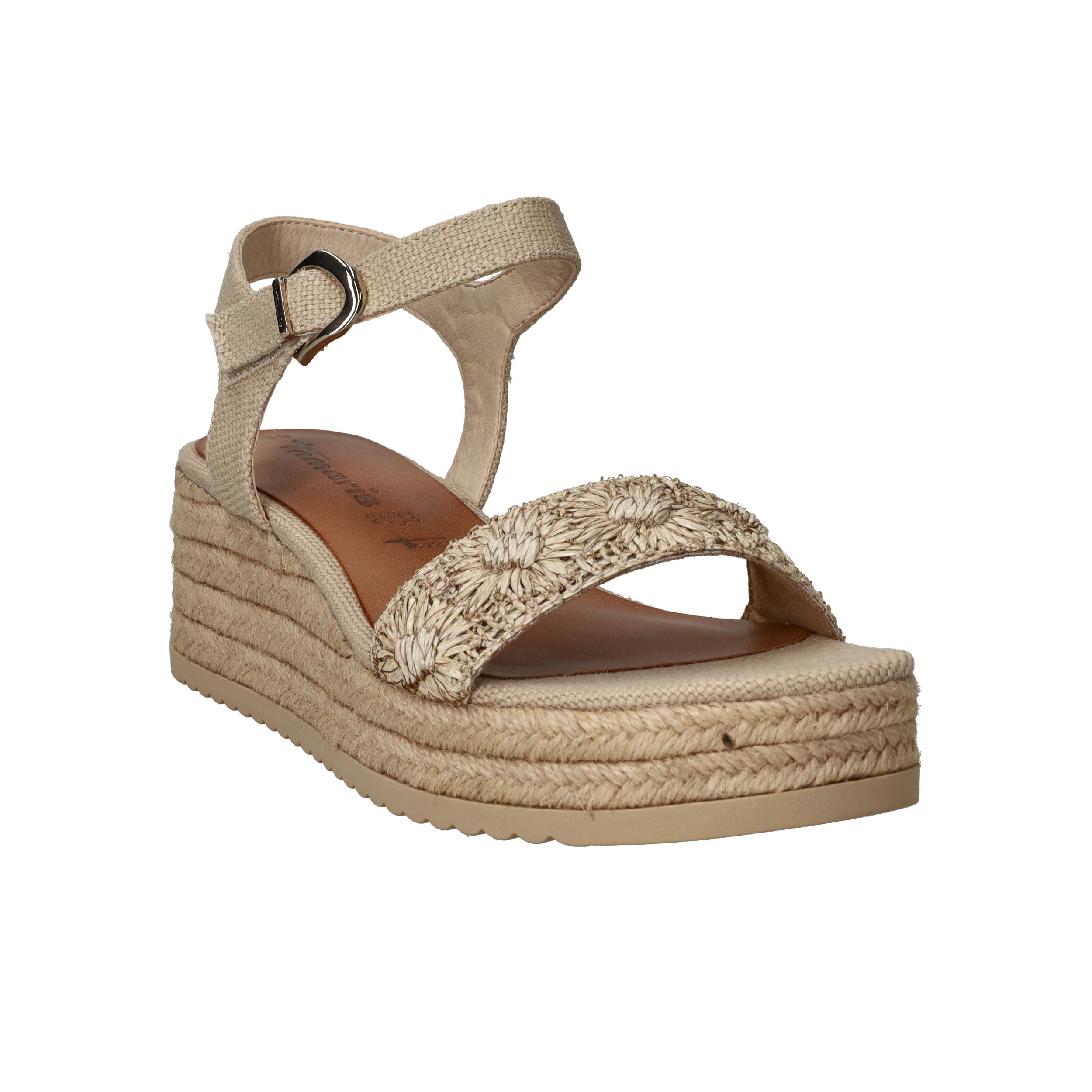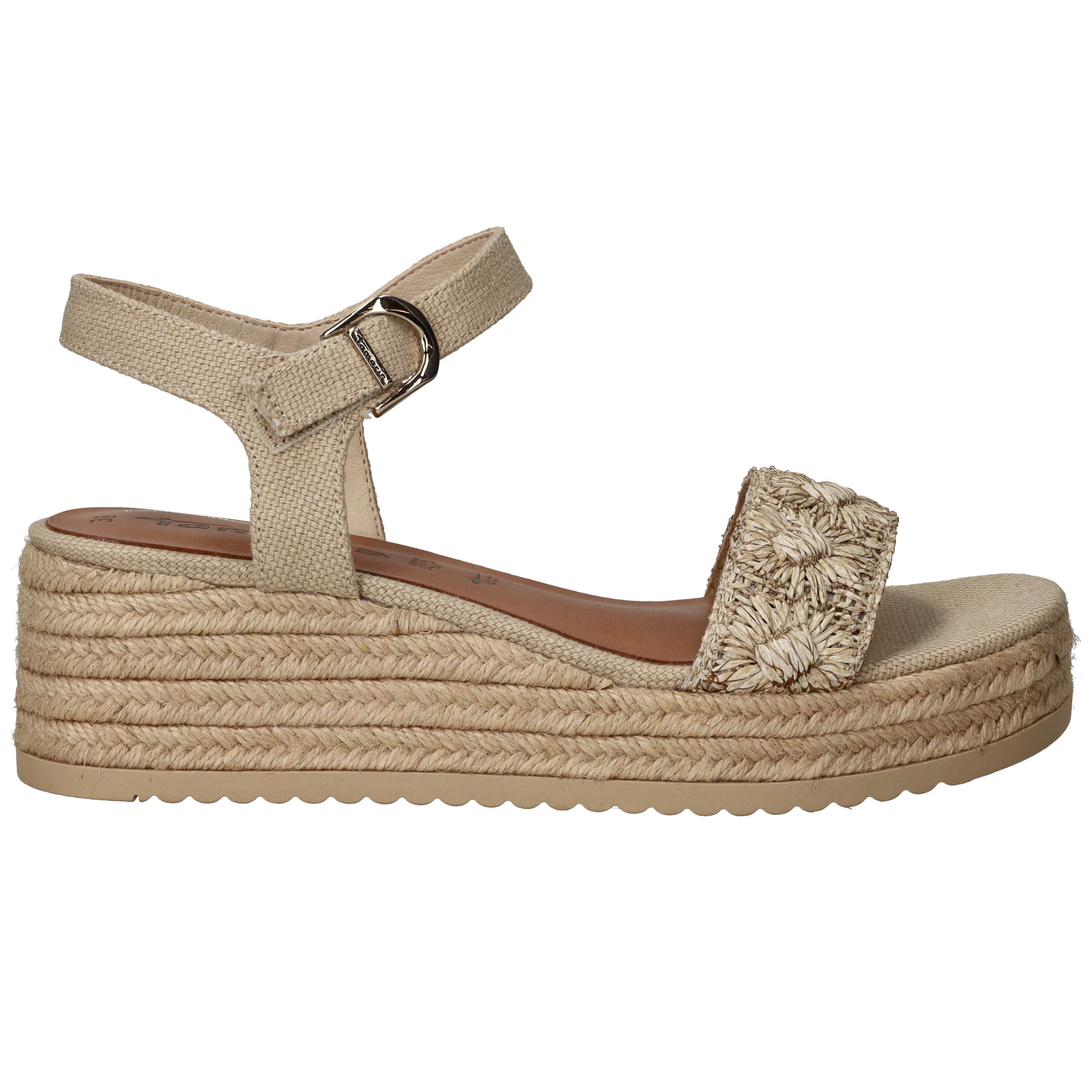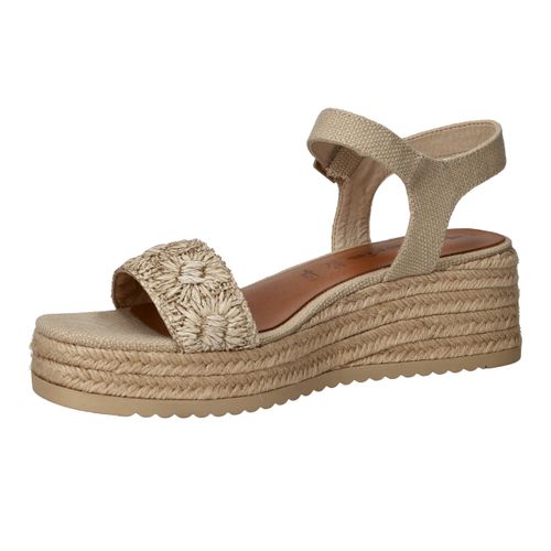 Een zomerse blikvanger in een neutrale tint – deze plateau sandaal van Tamaris geeft elke outfit een natuurlijke, vrouwelijke touch. De bovenkant van geweven textiel met subtiele bloemenstructuur maakt 'm speels én stijlvol. Dankzij de comfortabele combinatie van leer en textiel in de voering én een handige klittenbandsluiting, trek je ze makkelijk aan en uit.