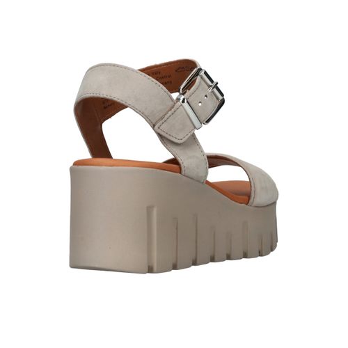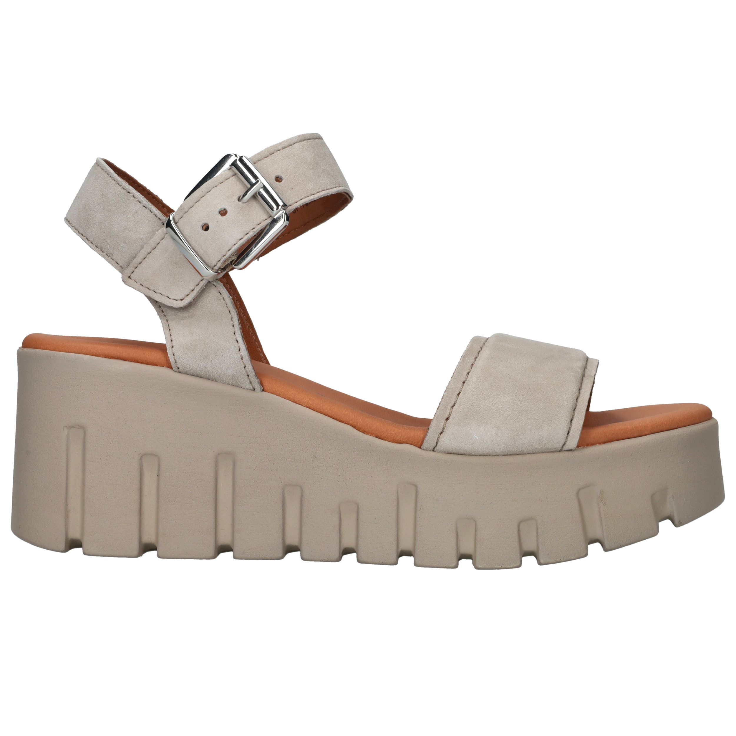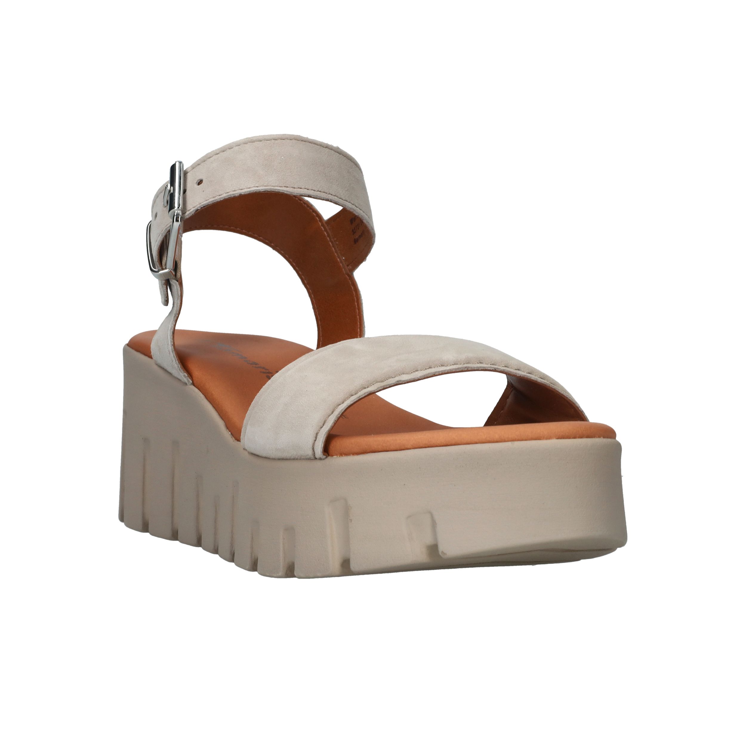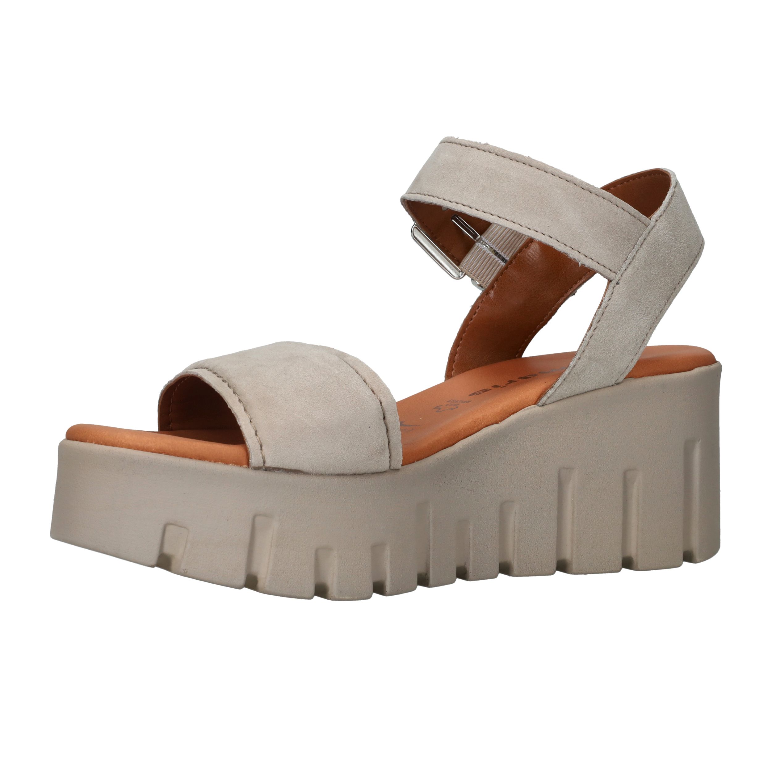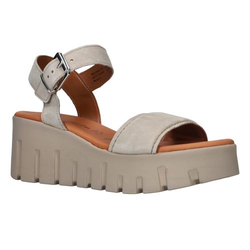 Toffe beige Tamaris sandaal met gave platformzool. De schoen is helemaal gemaakt van leer.