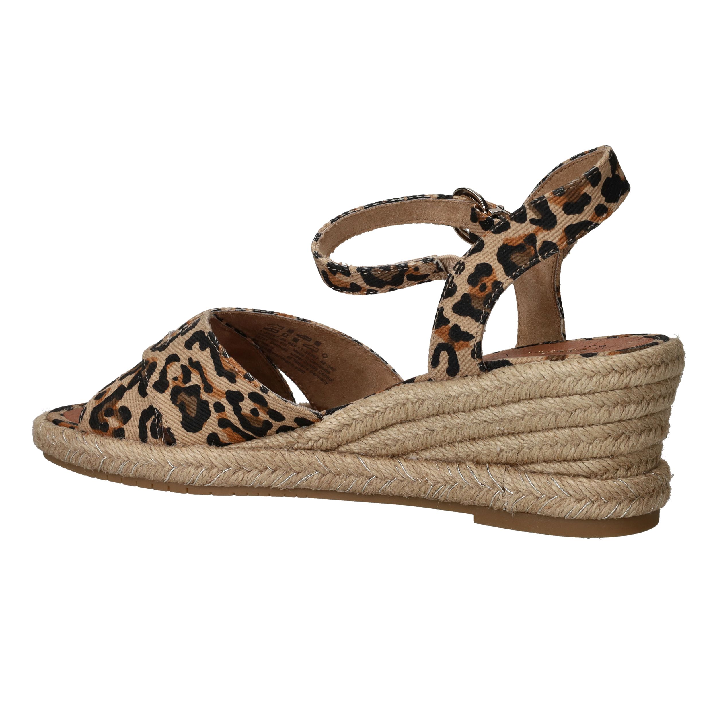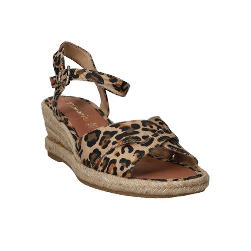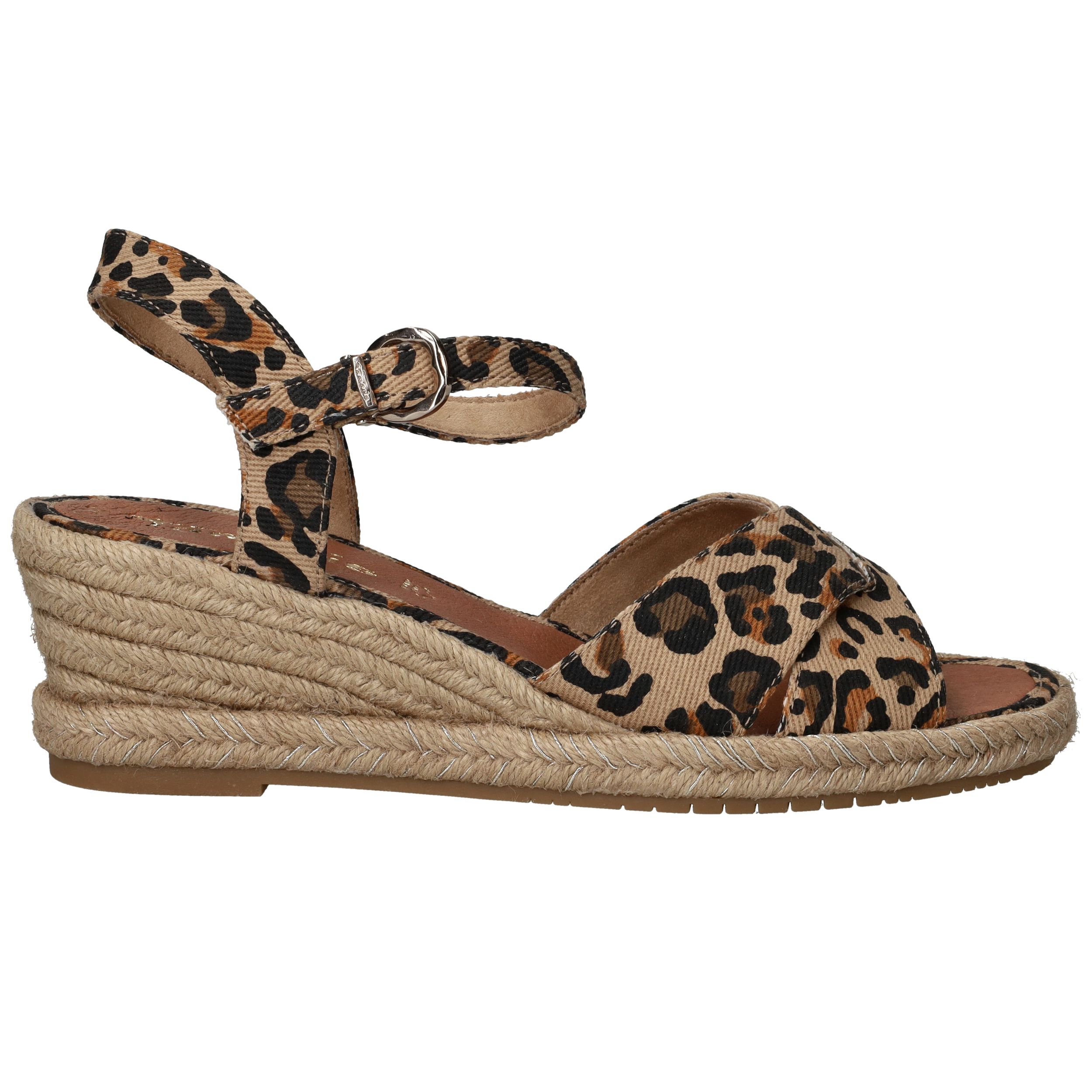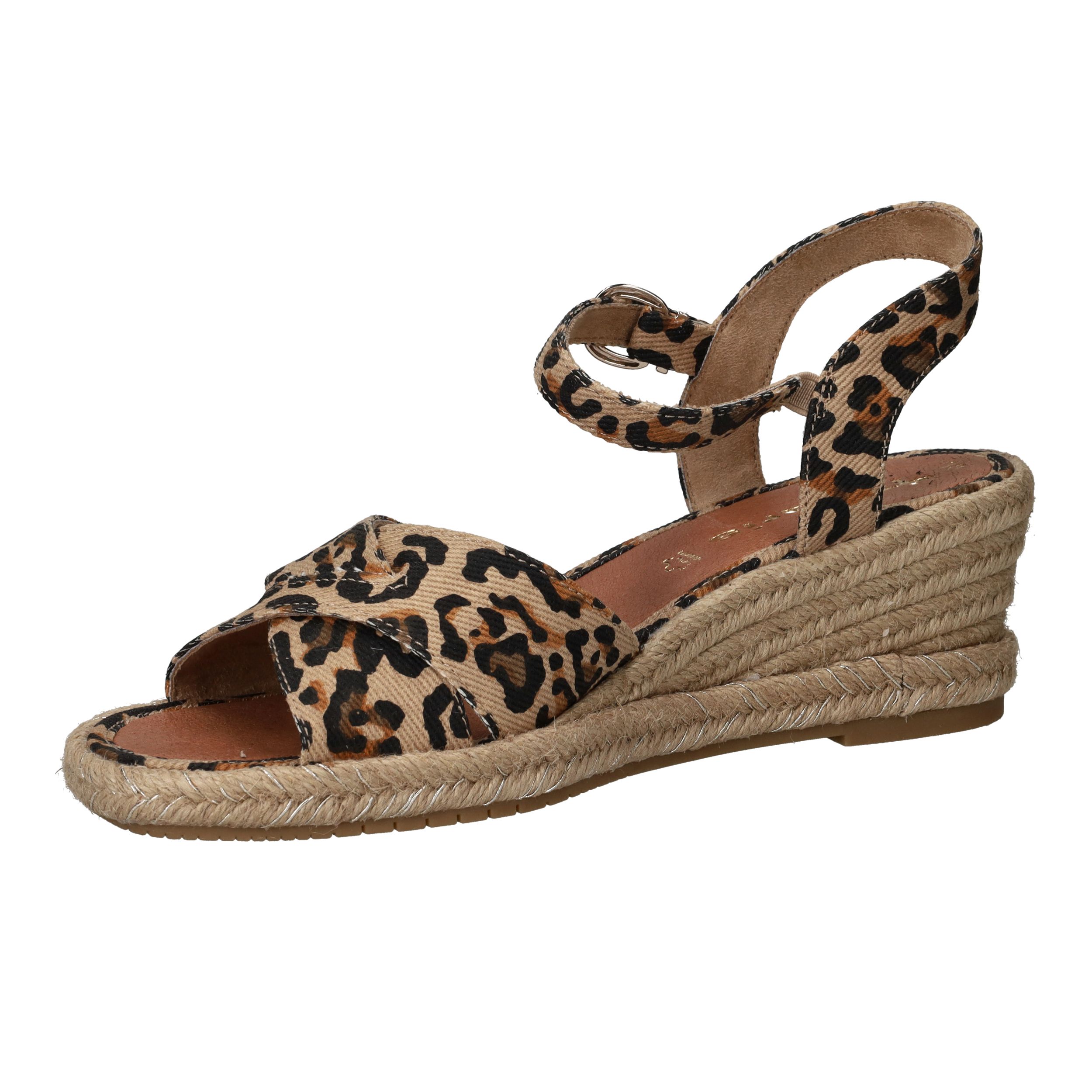 Maak een stijlstatement met deze zomerse sandalen van Tamaris. De opvallende panterprint op het textielen bovenwerk geeft deze sandaal een stoere twist, terwijl de zachte leren voering heerlijk comfortabel aanvoelt. De gevlochten sleehak maakt je look helemaal af en zorgt voor een vrouwelijk silhouet.