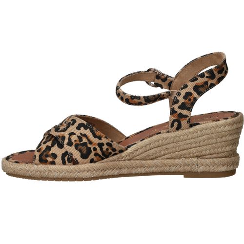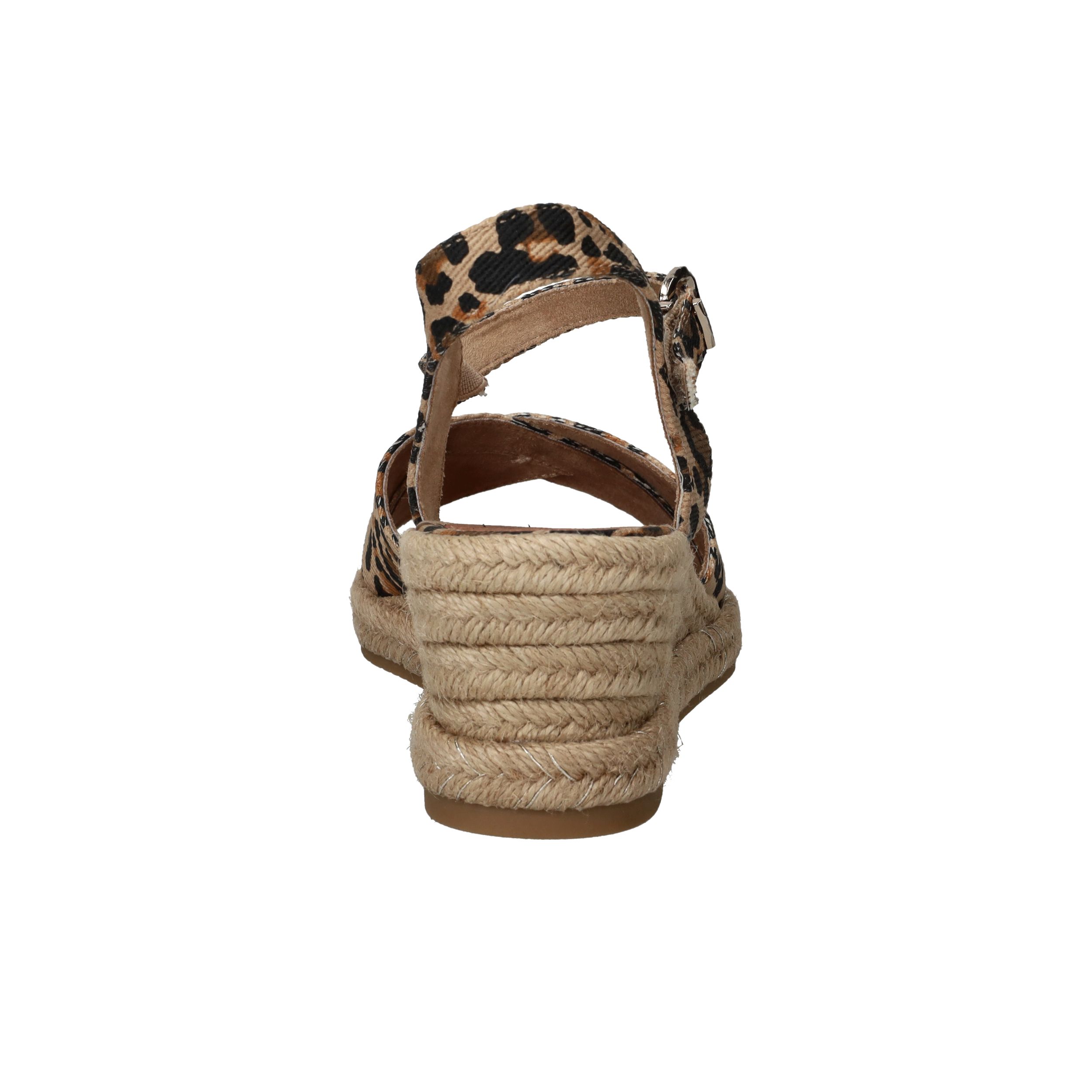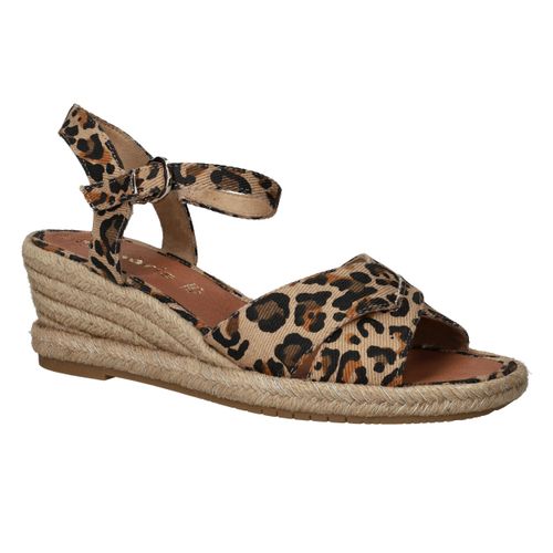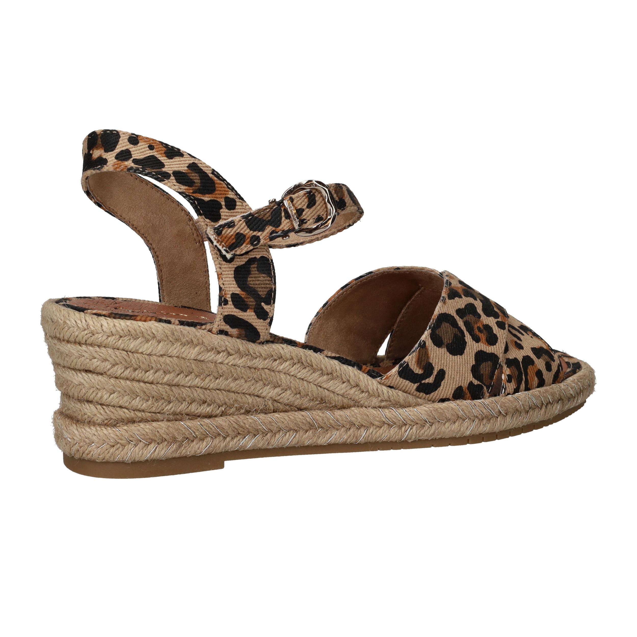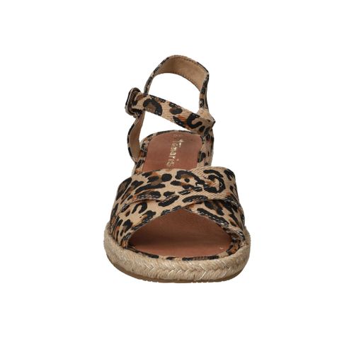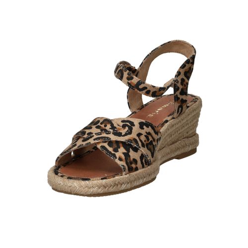 Maak een stijlstatement met deze zomerse sandalen van Tamaris. De opvallende panterprint op het textielen bovenwerk geeft deze sandaal een stoere twist, terwijl de zachte leren voering heerlijk comfortabel aanvoelt. De gevlochten sleehak maakt je look helemaal af en zorgt voor een vrouwelijk silhouet.