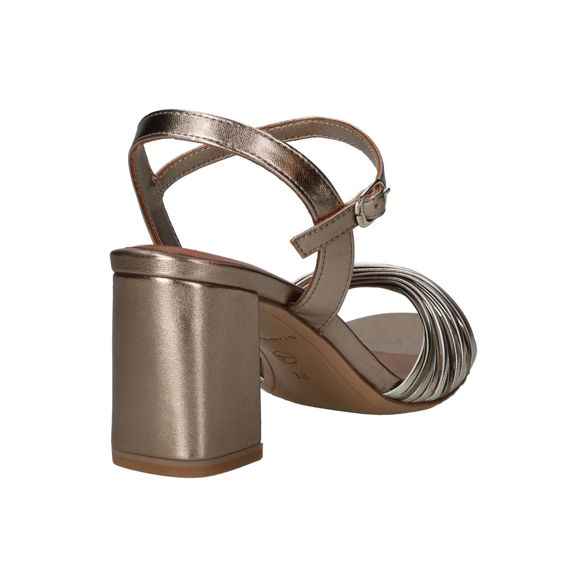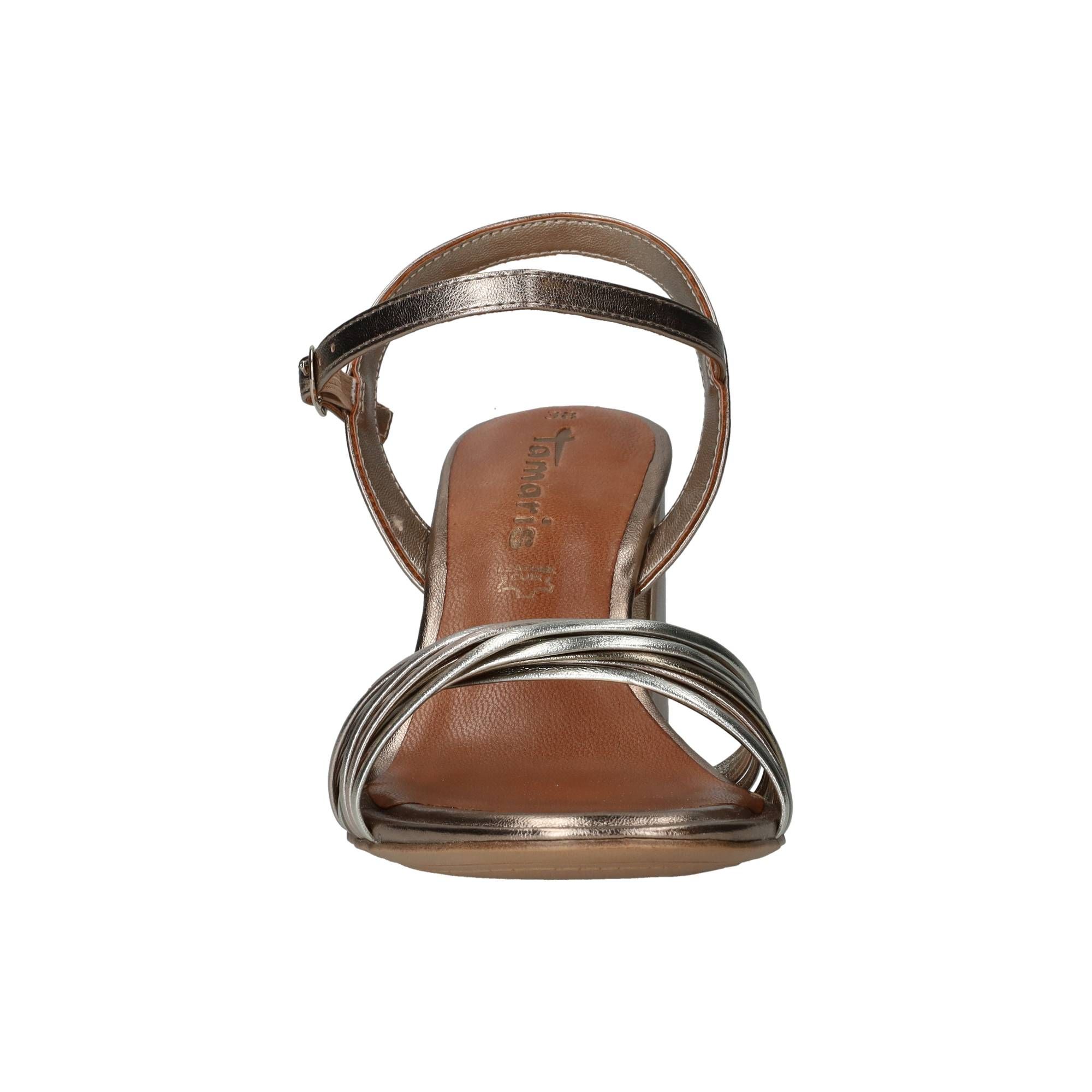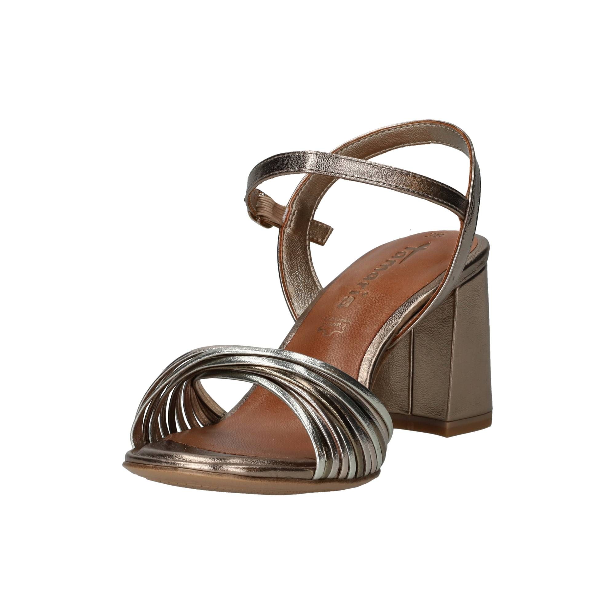 De dames sandalen van Tamaris in een prachtige goudtint stralen elegantie uit en zijn een fijne aanvulling voor veel zomerse momenten. Deze schoenen, gemaakt van kunstleer, bieden een verfijnde uitstraling en voelen tegelijkertijd prettig aan je voeten. De schoen omsluit je voet op een zachte manier, wat bijdraagt aan een rustige drukverdeling, zodat je de hele dag comfortabel kunt lopen en staan.- De gespsluiting zorgt ervoor dat je de sandaal eenvoudig aanpast aan je voet en stevig blijft zitten tijdens het lopen.