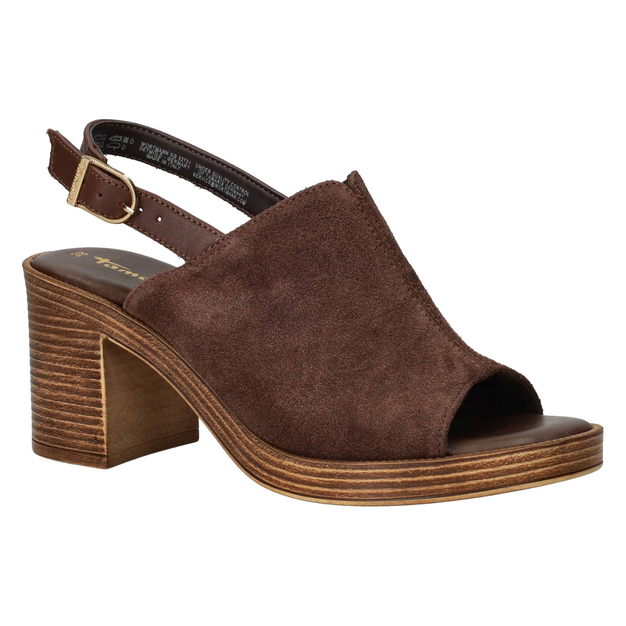 Deze bruine dames sandalet van Tamaris is een elegante keuze die je voeten op een stijlvolle manier omarmt. De warme bruine kleur en het zachte suède geven de sandalet een luxe uitstraling, perfect voor diverse gelegenheden. De fijne bandjes en het subtiele ontwerp zorgen voor een verfijnde look, terwijl de pasvorm de voet mooi omsluit en een comfortabele drukverdeling biedt tijdens het lopen.