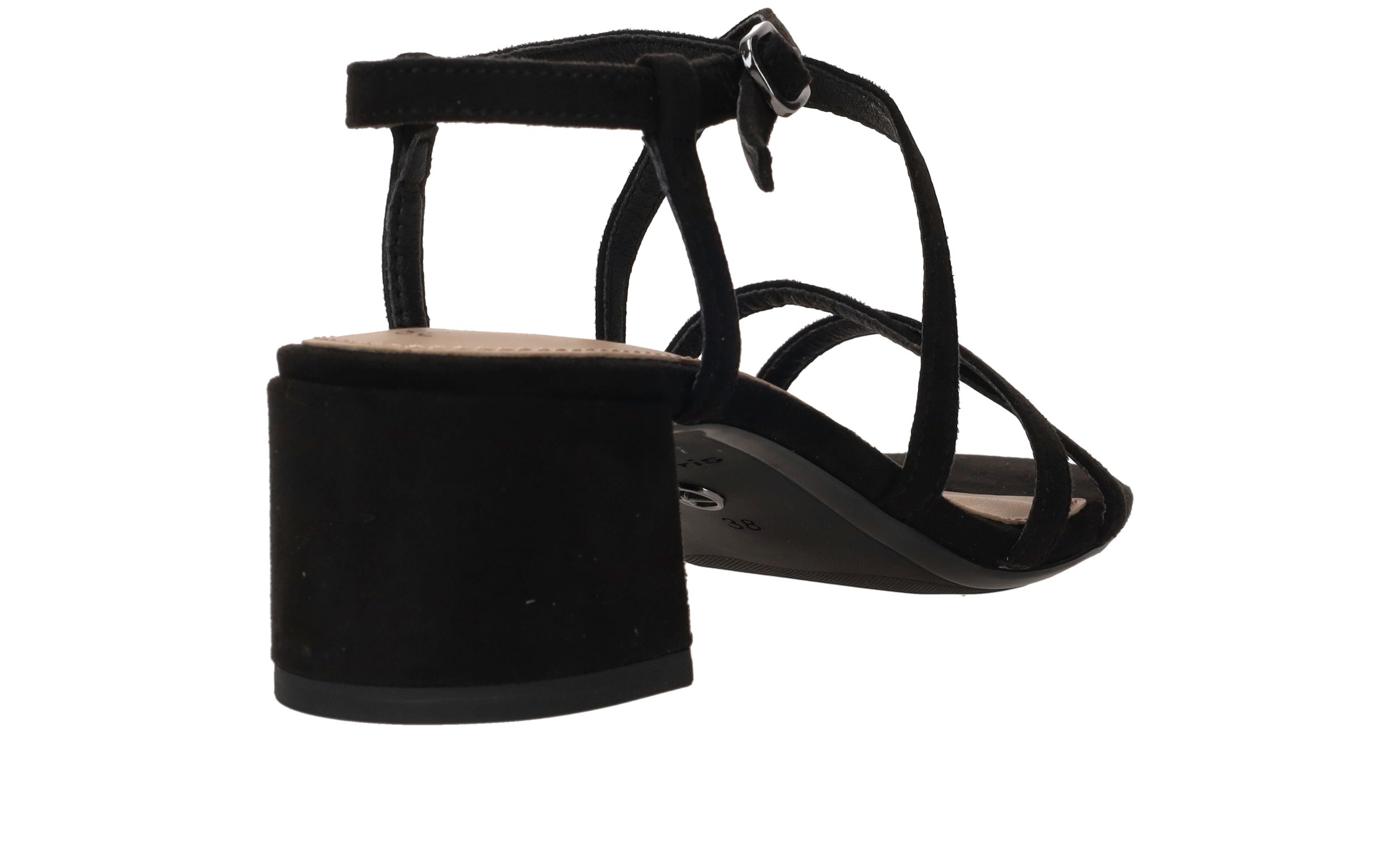 - De sandaal heeft een comfortabele hakhoogte van 5 cm.