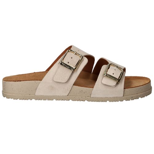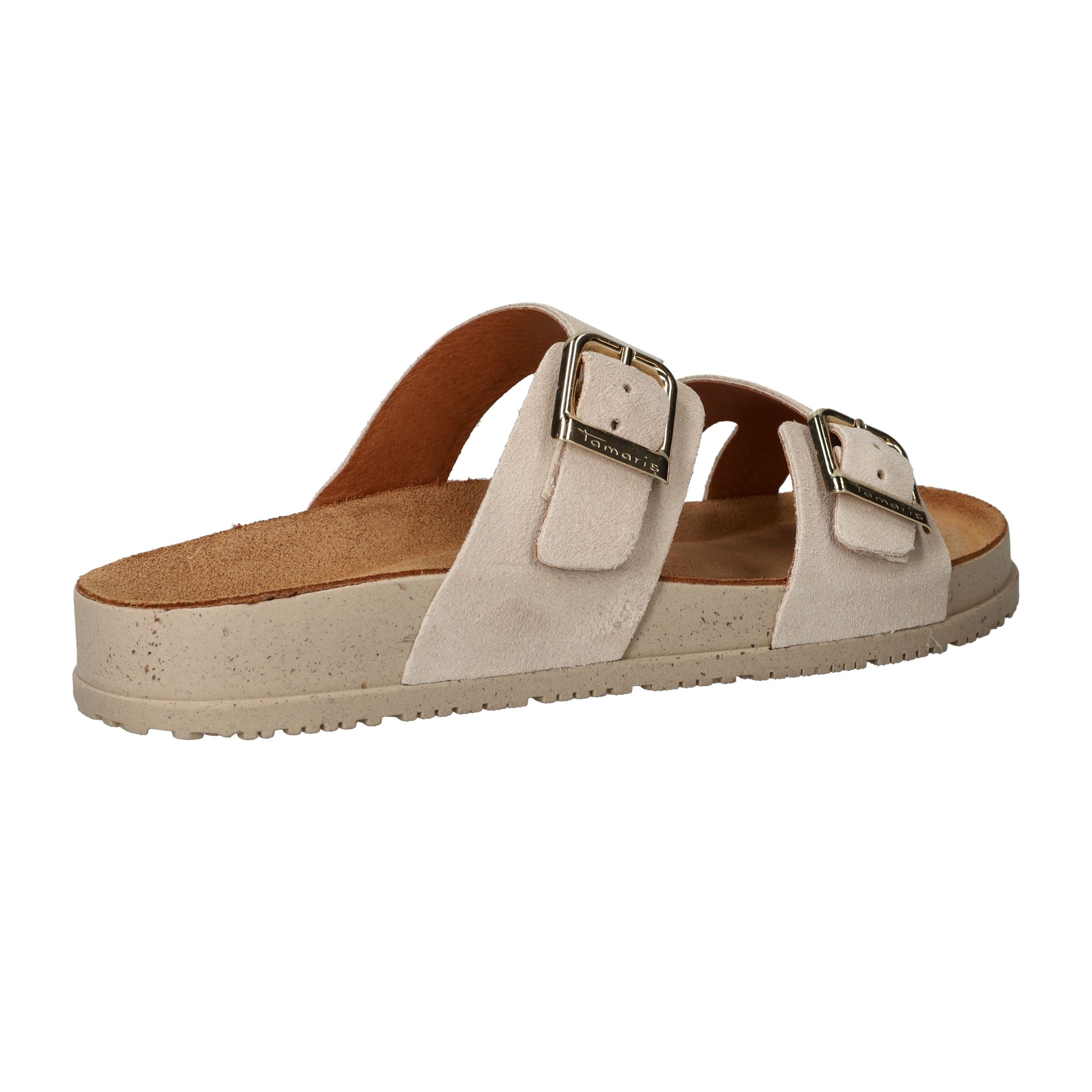 Met deze stoere slippers van Tamaris kies je voor stijl en comfort in één. De dubbele band met opvallende gespen geeft een moderne touch aan het klassieke model. Gemaakt van soepel leer in een warme beige kleur, perfect te combineren met elke zomerse outfit. Deze slippers zijn ontworpen voor dames met voetbreedte G en bieden een stevige pasvorm en optimaal draagcomfort.