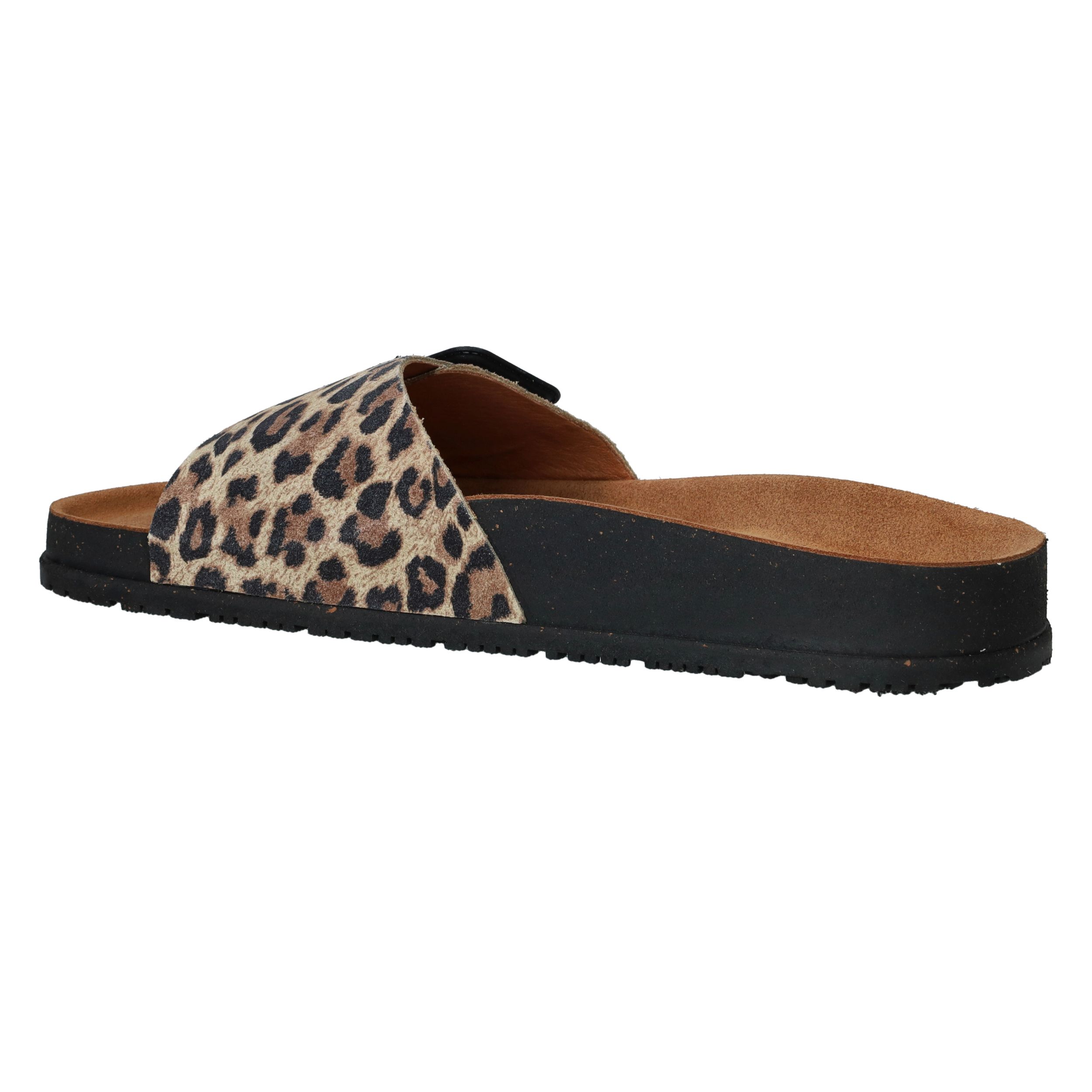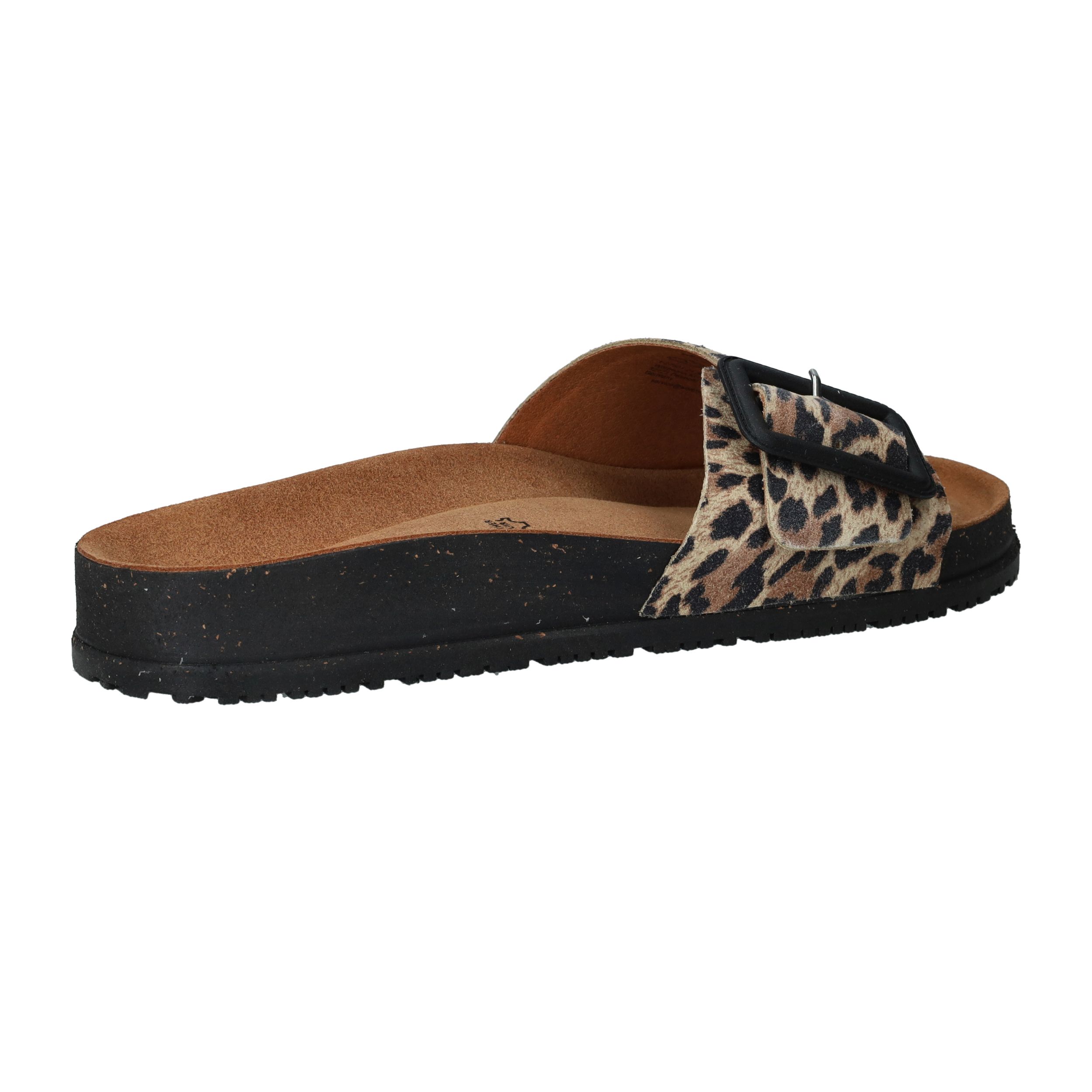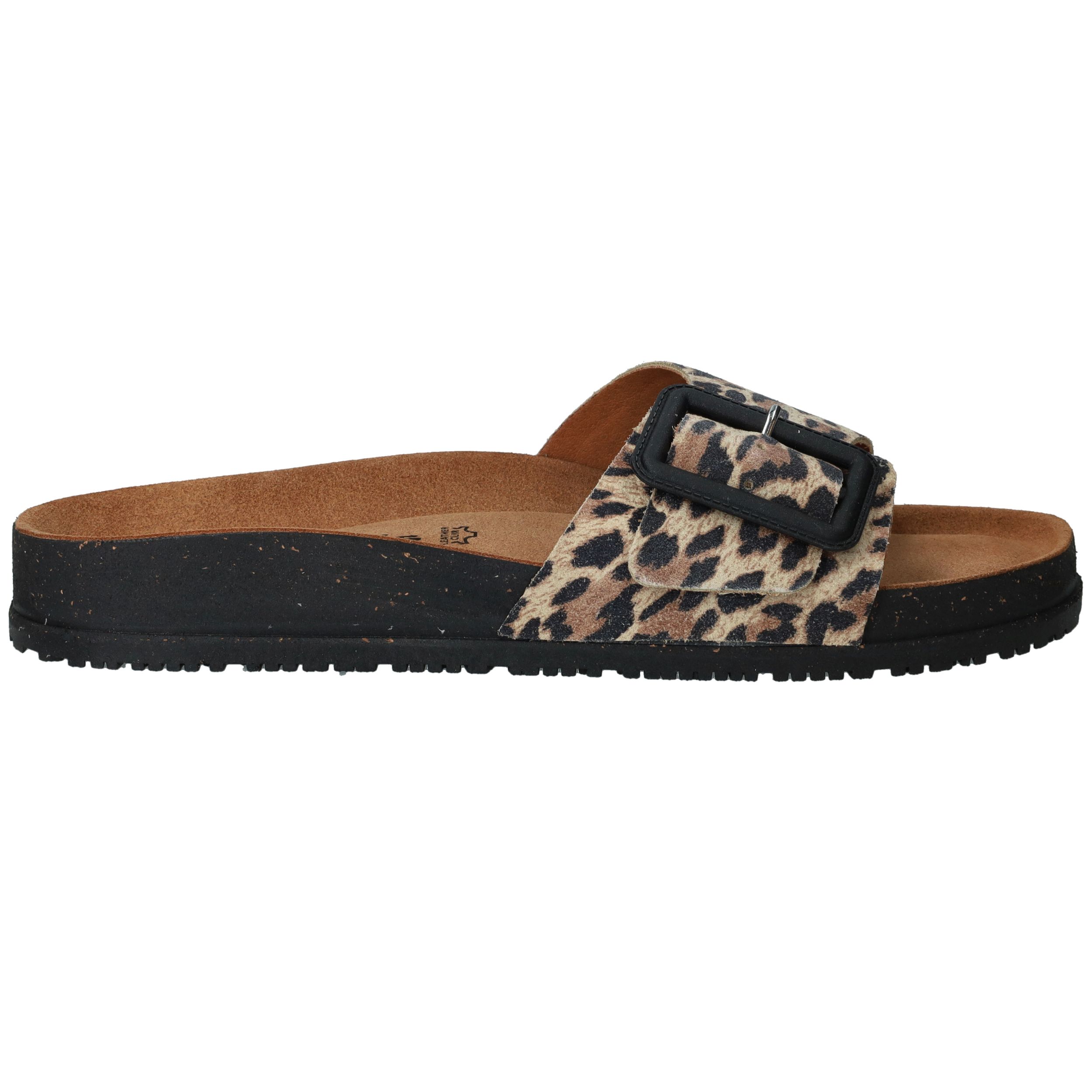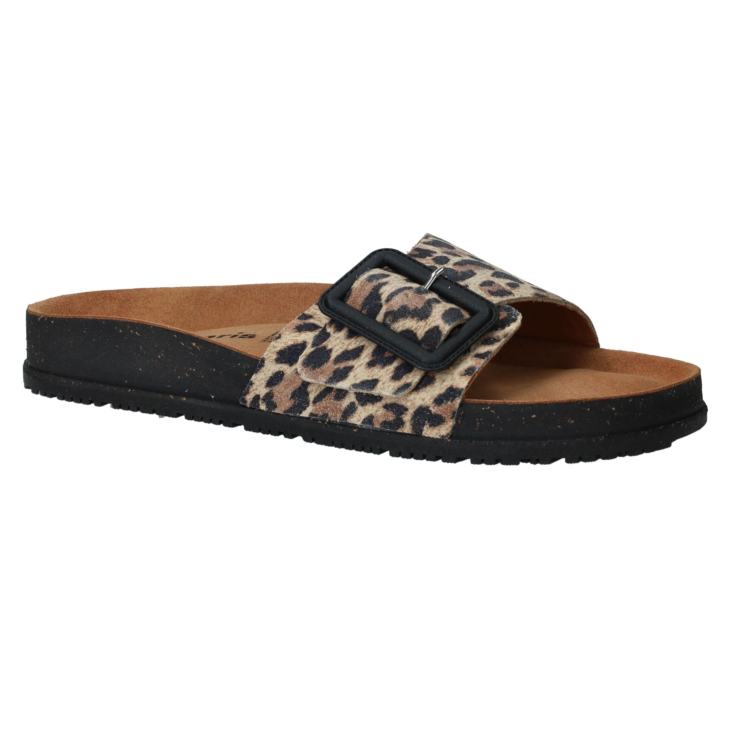 Deze leren slippers van Tamaris combineren comfort met een stoere en trendy uitstraling. De luipaardprint op het bandje geeft een speelse touch, terwijl de grote gesp en kurkzool zorgen voor een fashionable look. Dankzij het zachte leren voetbed geniet je van een fijne pasvorm de hele dag door.