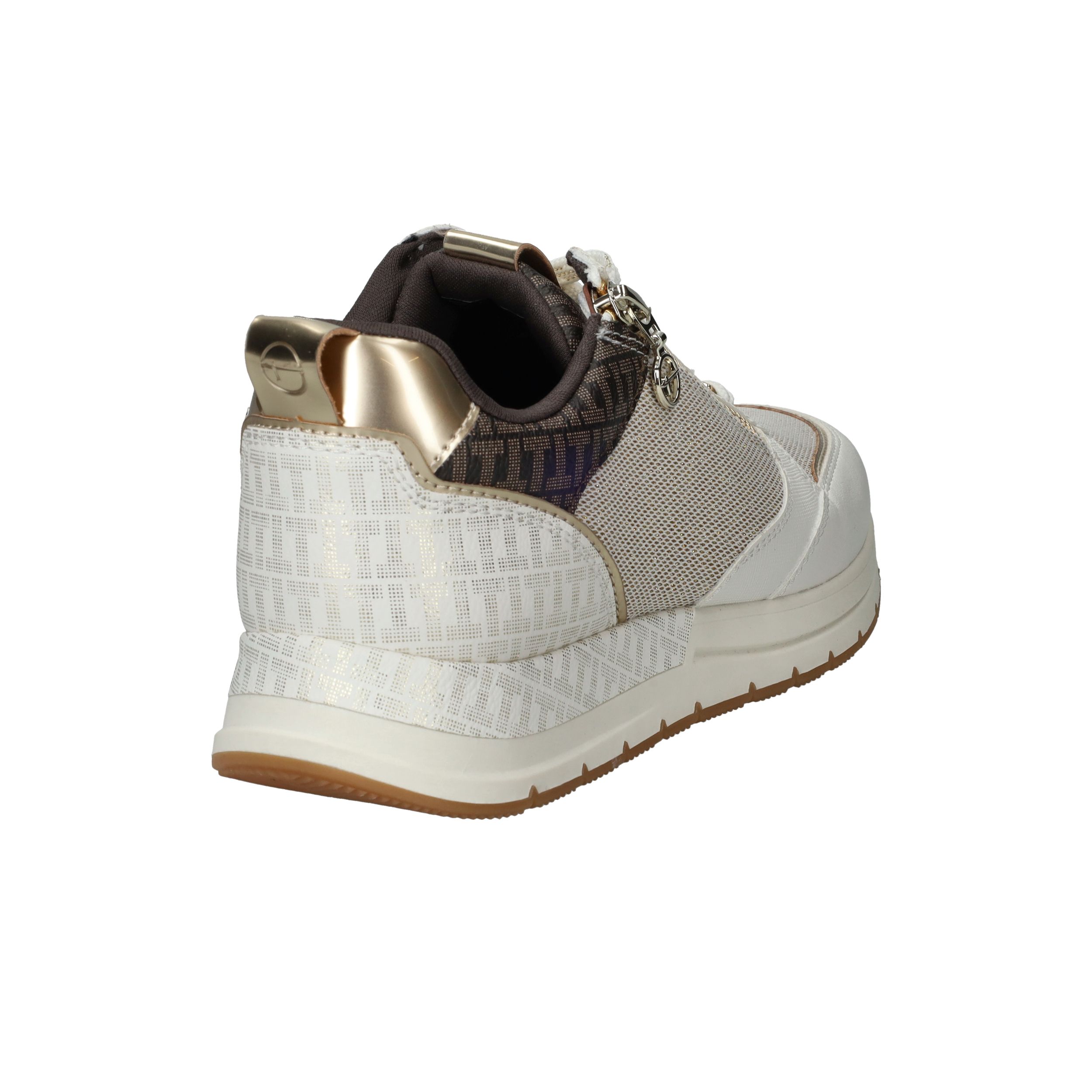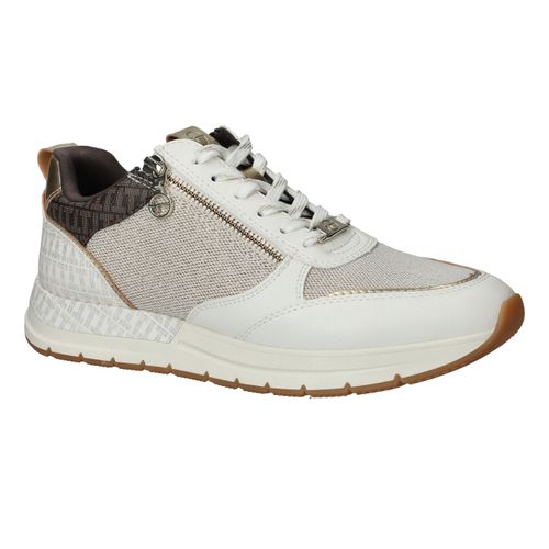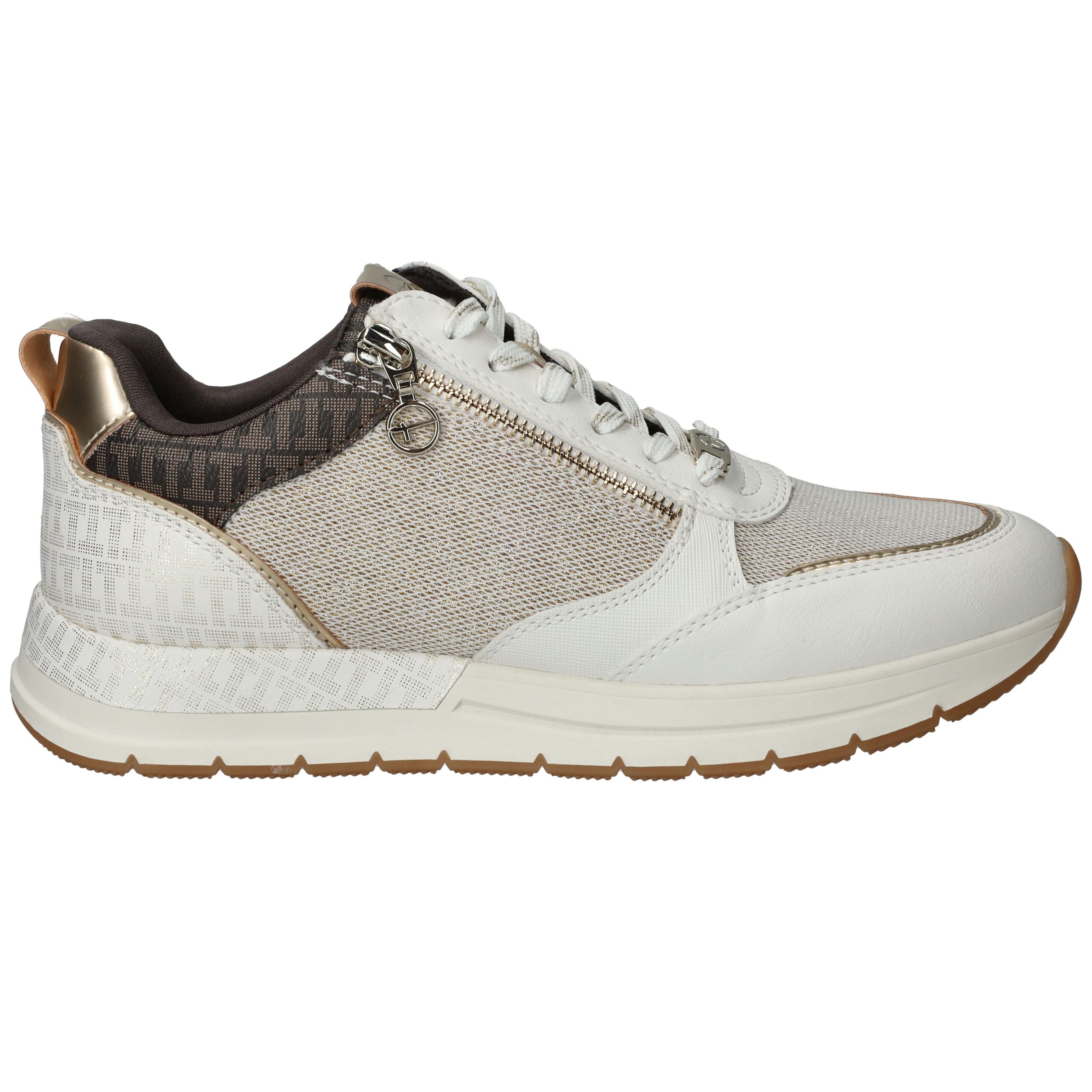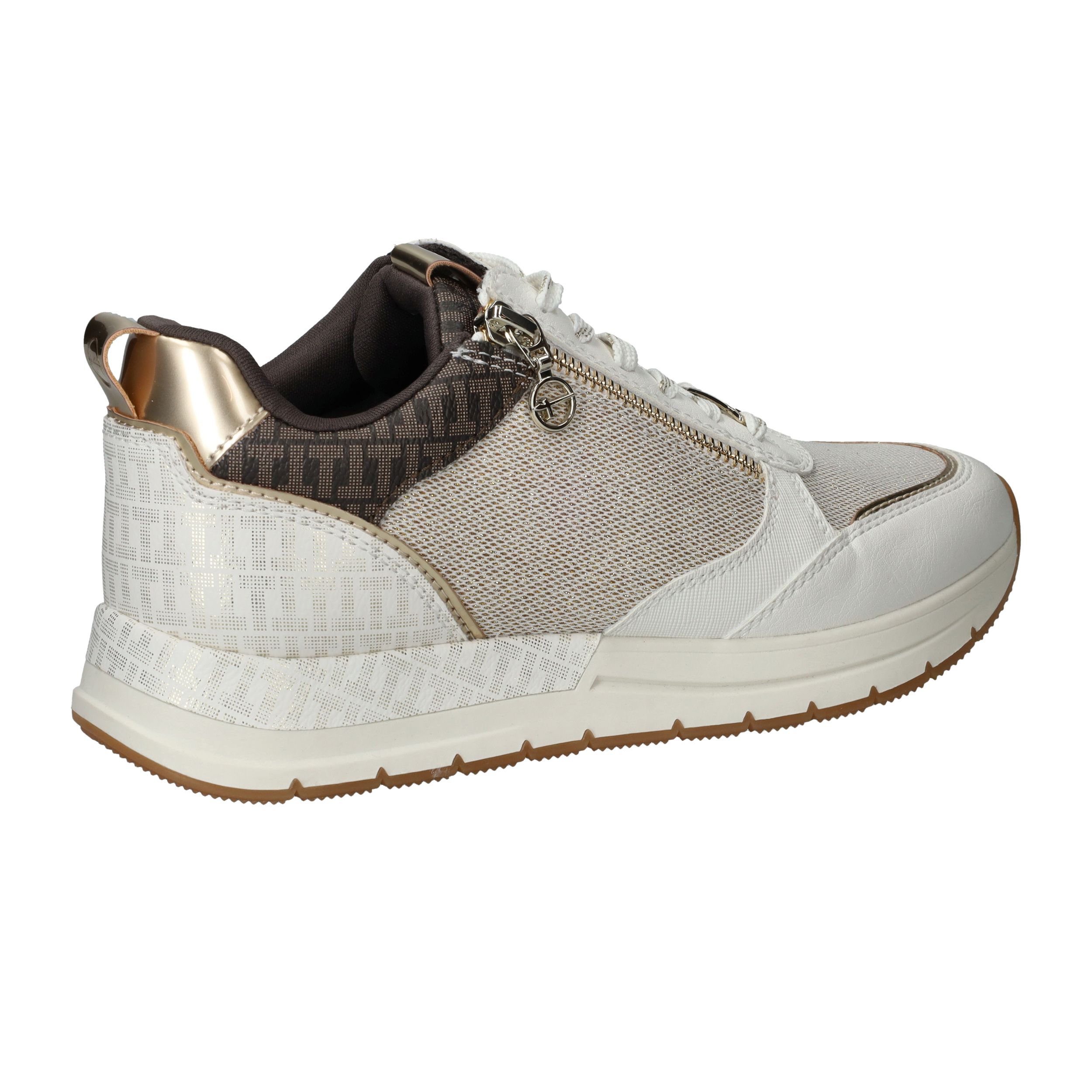 Deze Tamaris sneaker is sportief met een vleugje glamour. De witte damessneaker heeft een subtiele gouden glitter en een mooi printje.