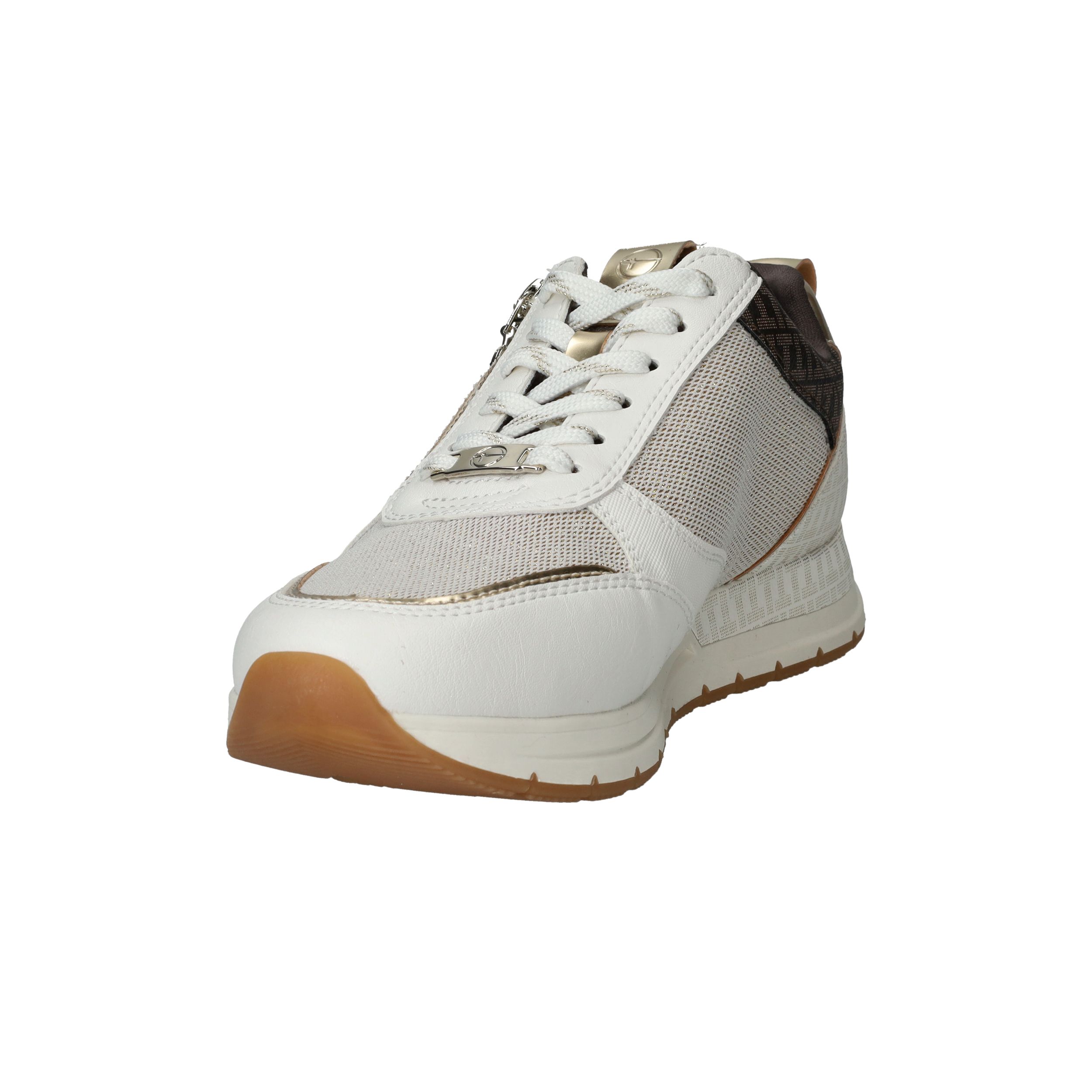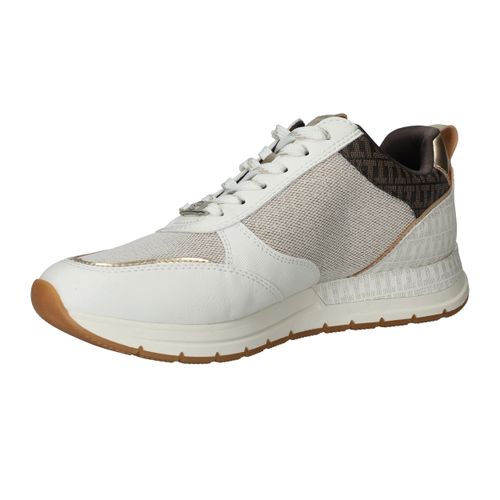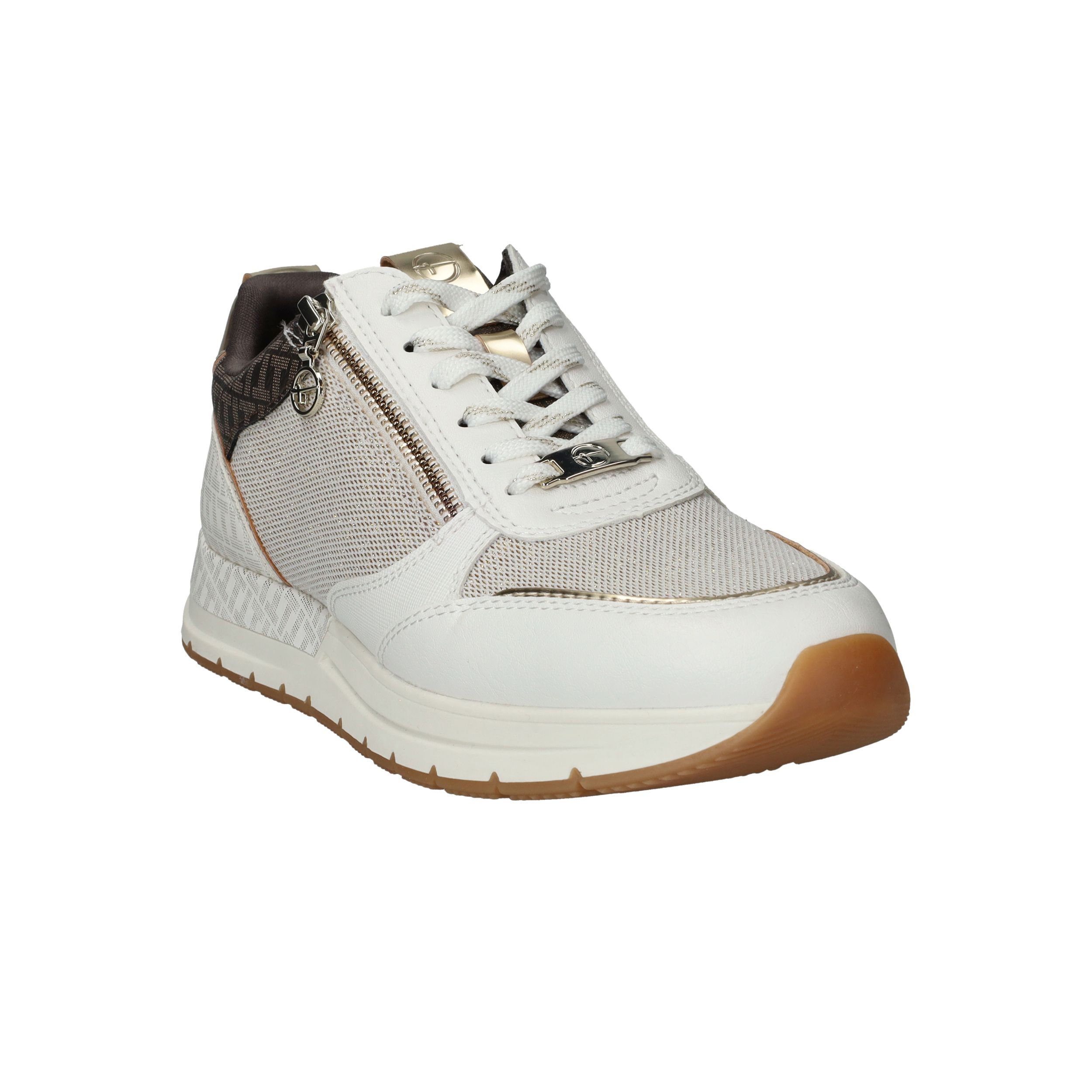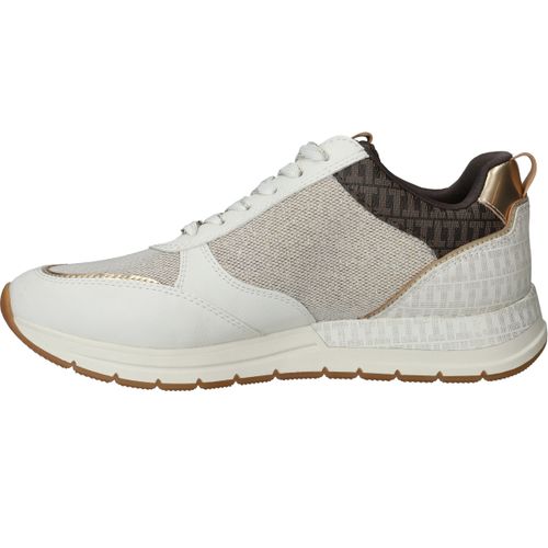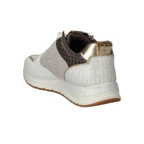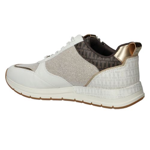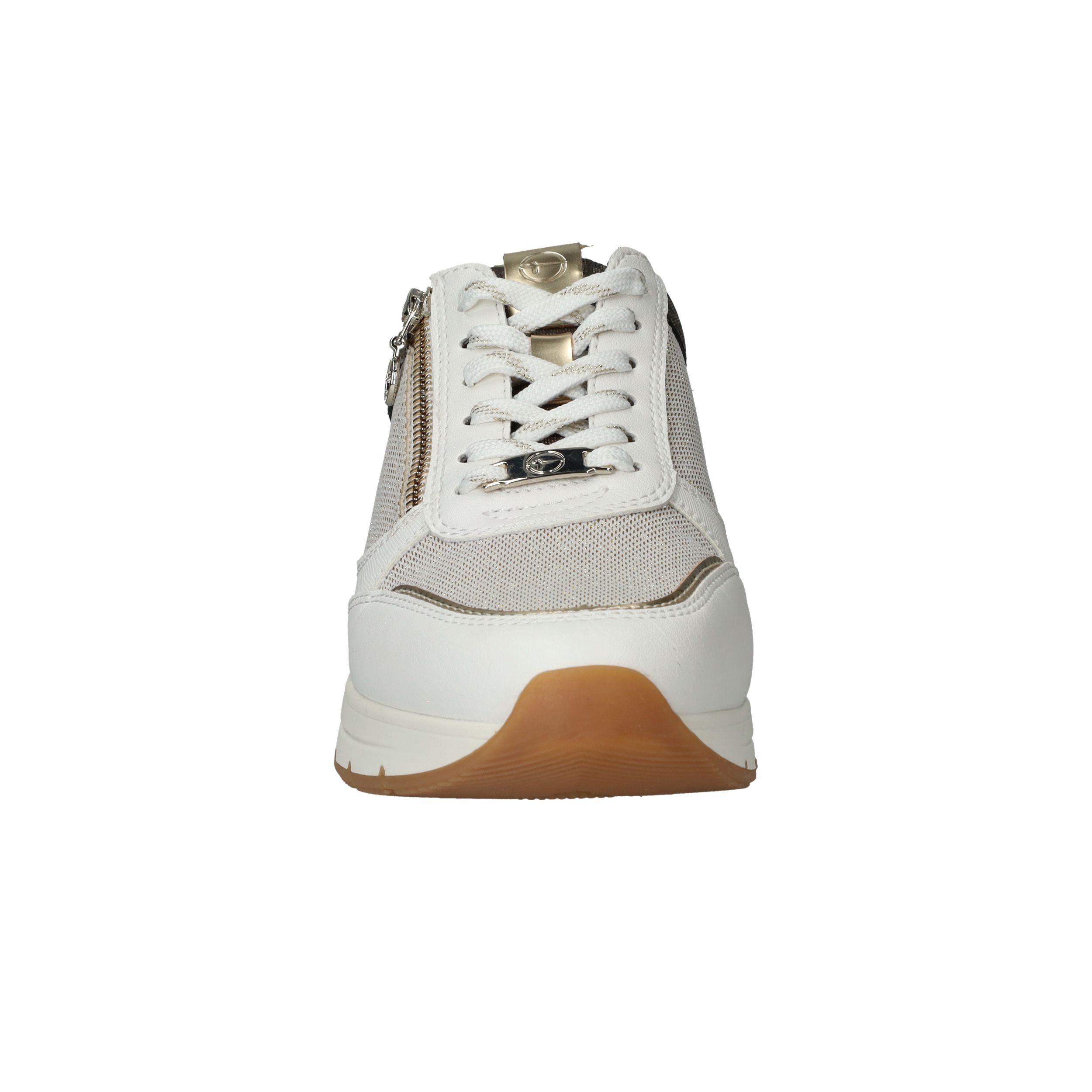 Deze Tamaris sneaker is sportief met een vleugje glamour. De witte damessneaker heeft een subtiele gouden glitter en een mooi printje.