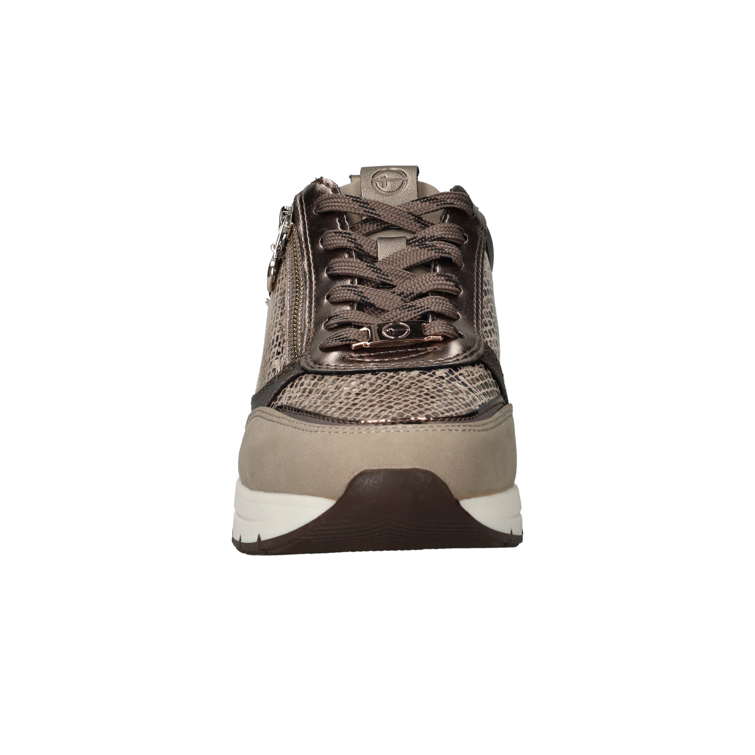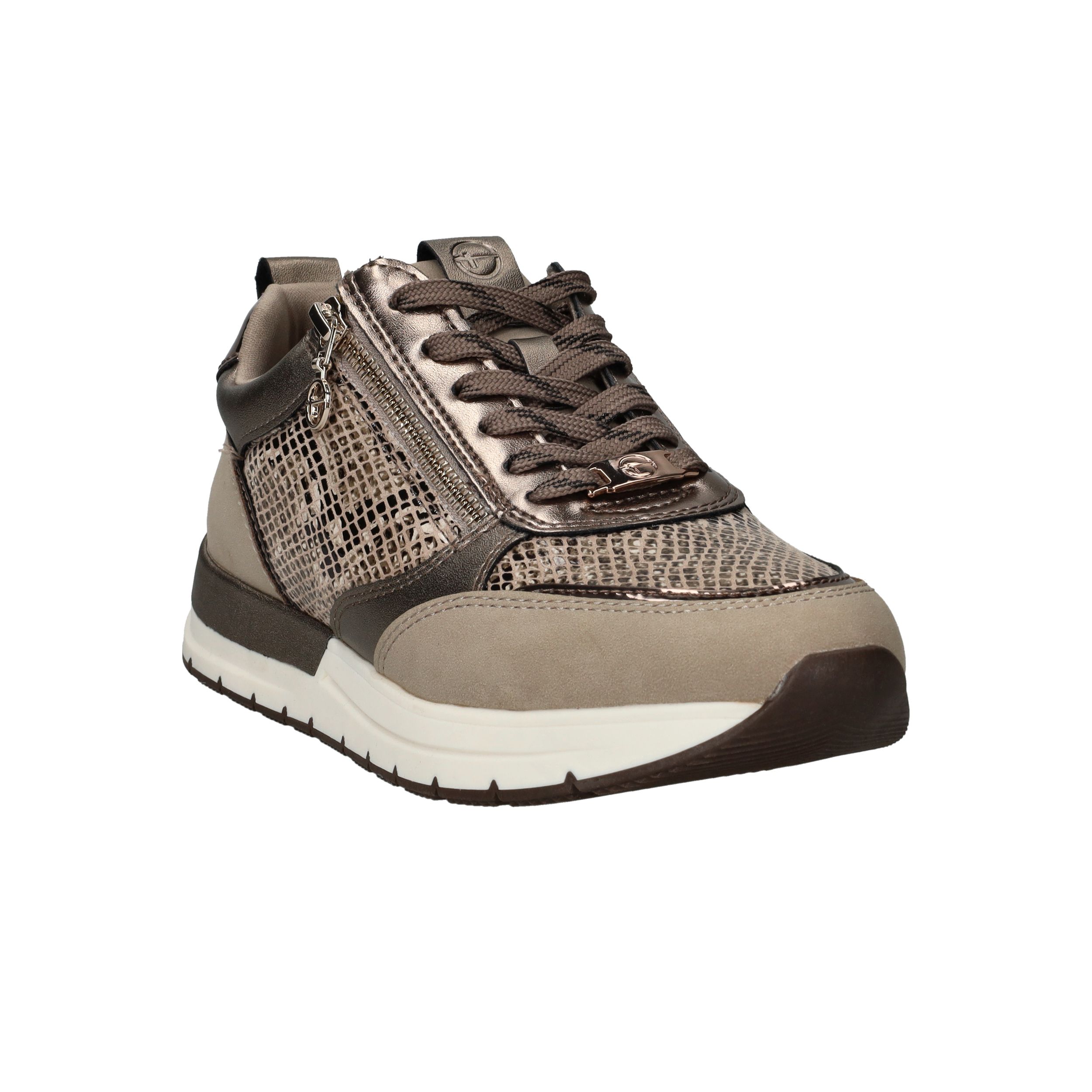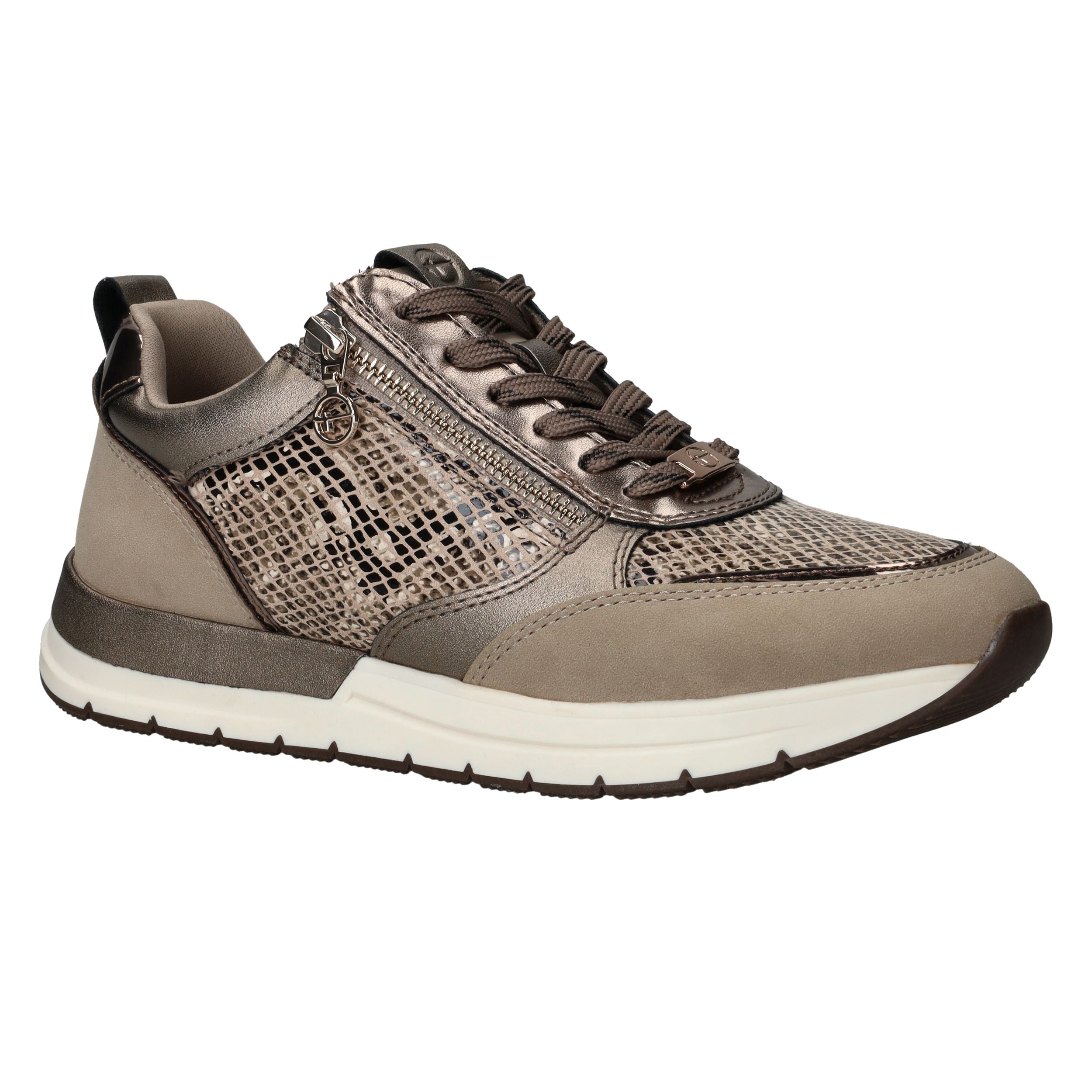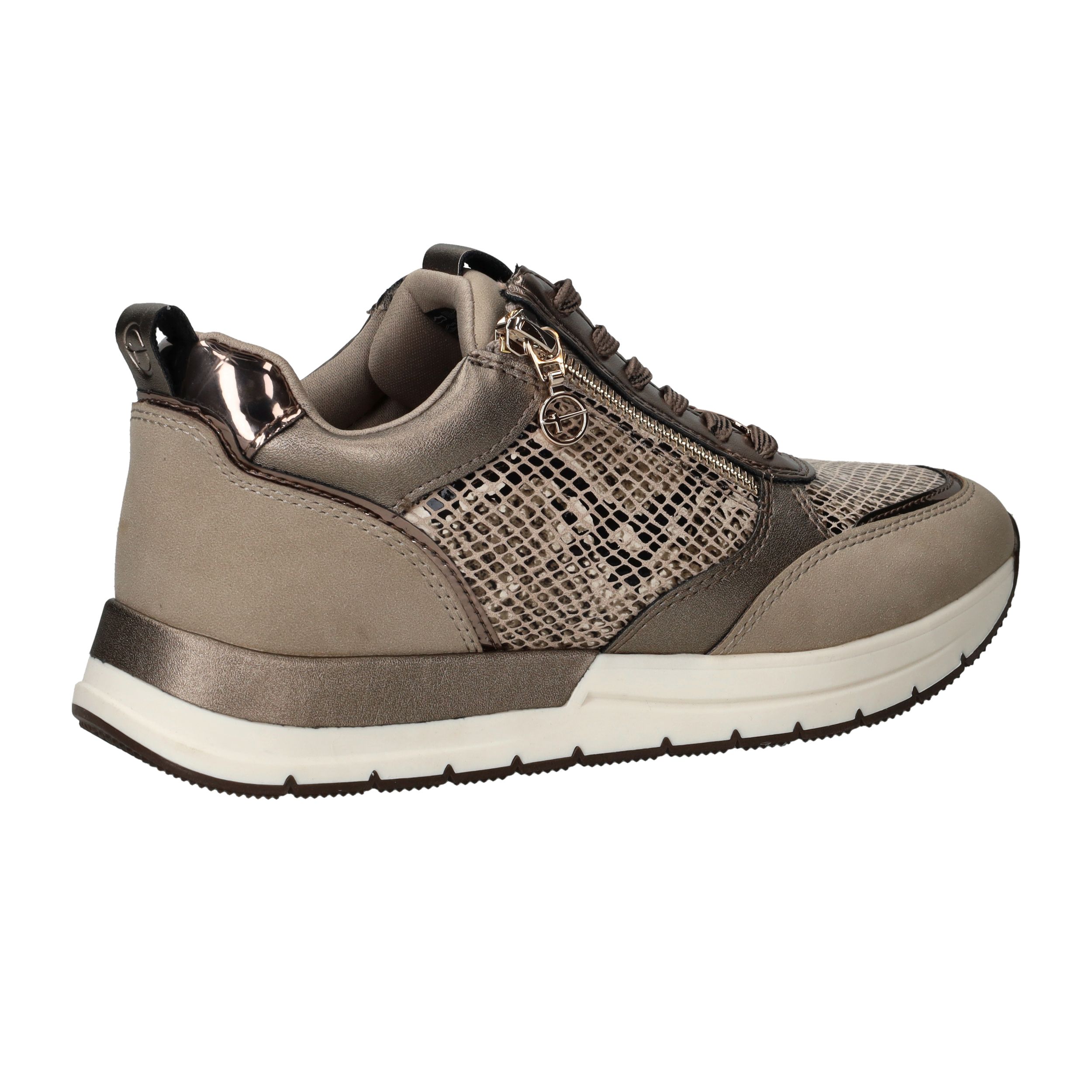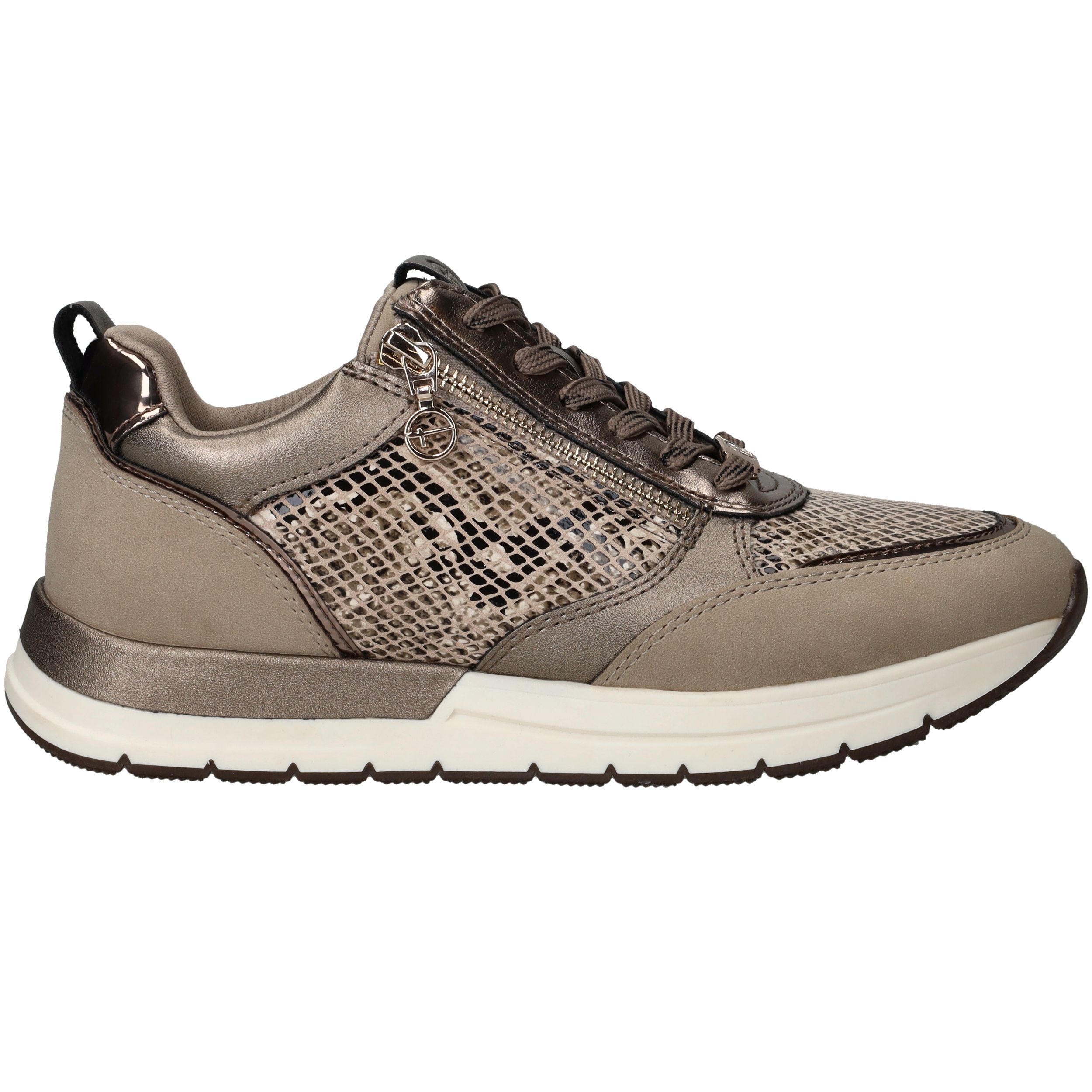 Deze beige Tamaris sneakers met subtiele dierenprint combineren een sportieve look met dagelijks comfort. Het bovenwerk van kunstleer en textiel zorgt voor een trendy uitstraling en een lichte, flexibele pasvorm. Dankzij de comfortabele voering van textiel voelen ze prettig aan, zelfs bij langdurig dragen. Perfect voor dames die graag casual, stijlvol en net even anders voor de dag komen.