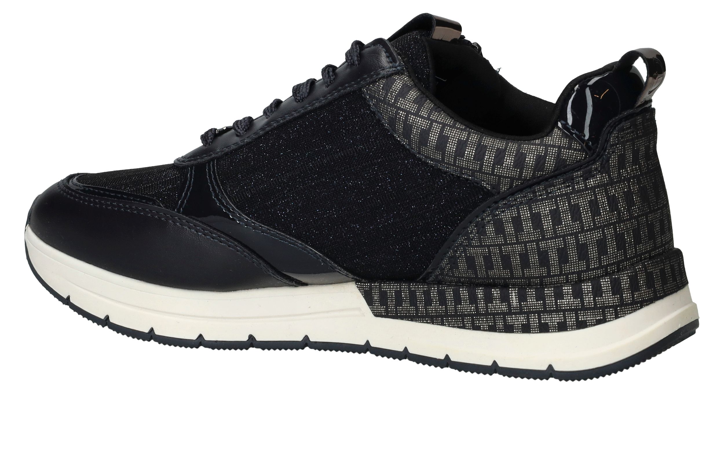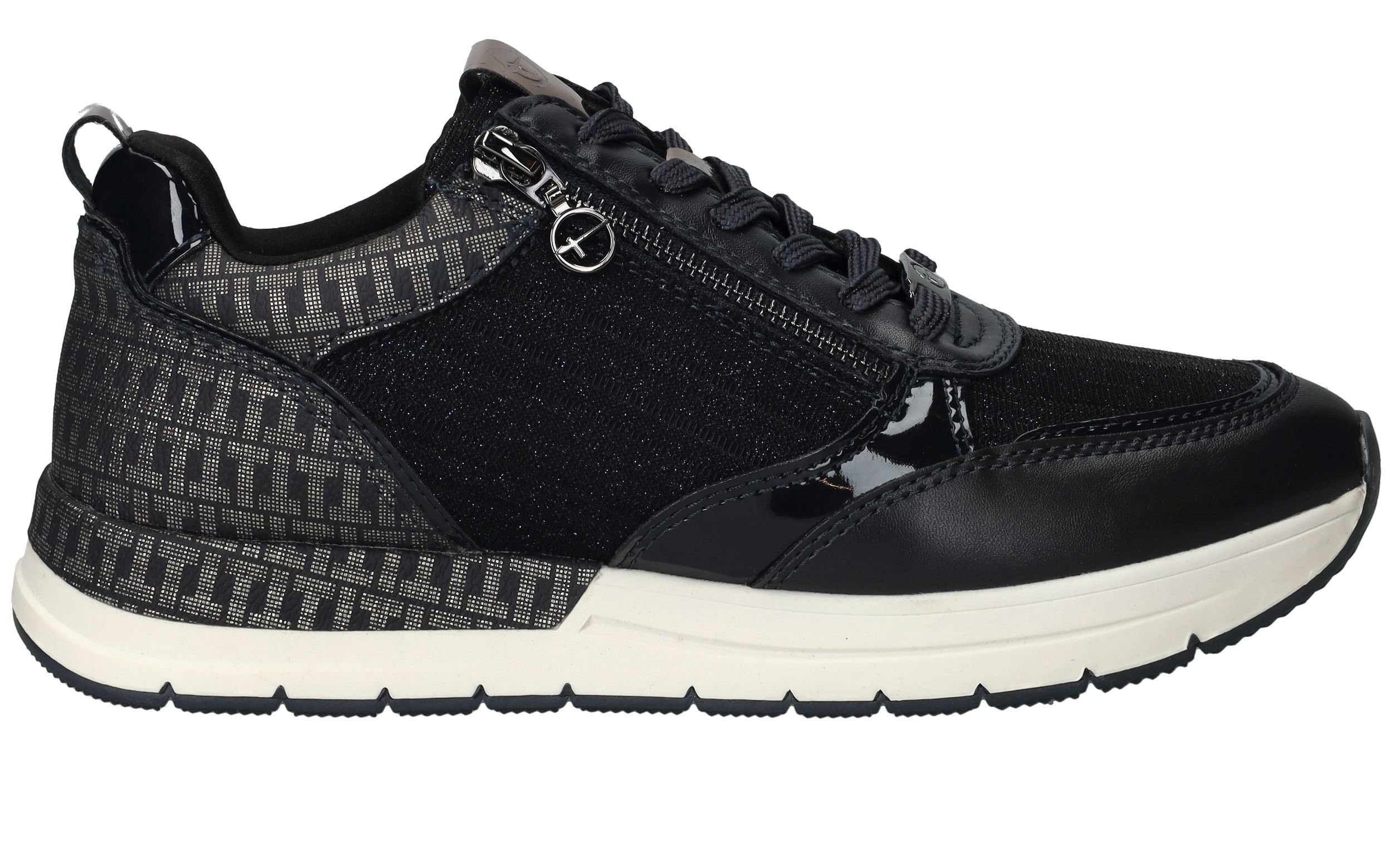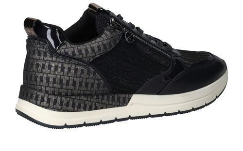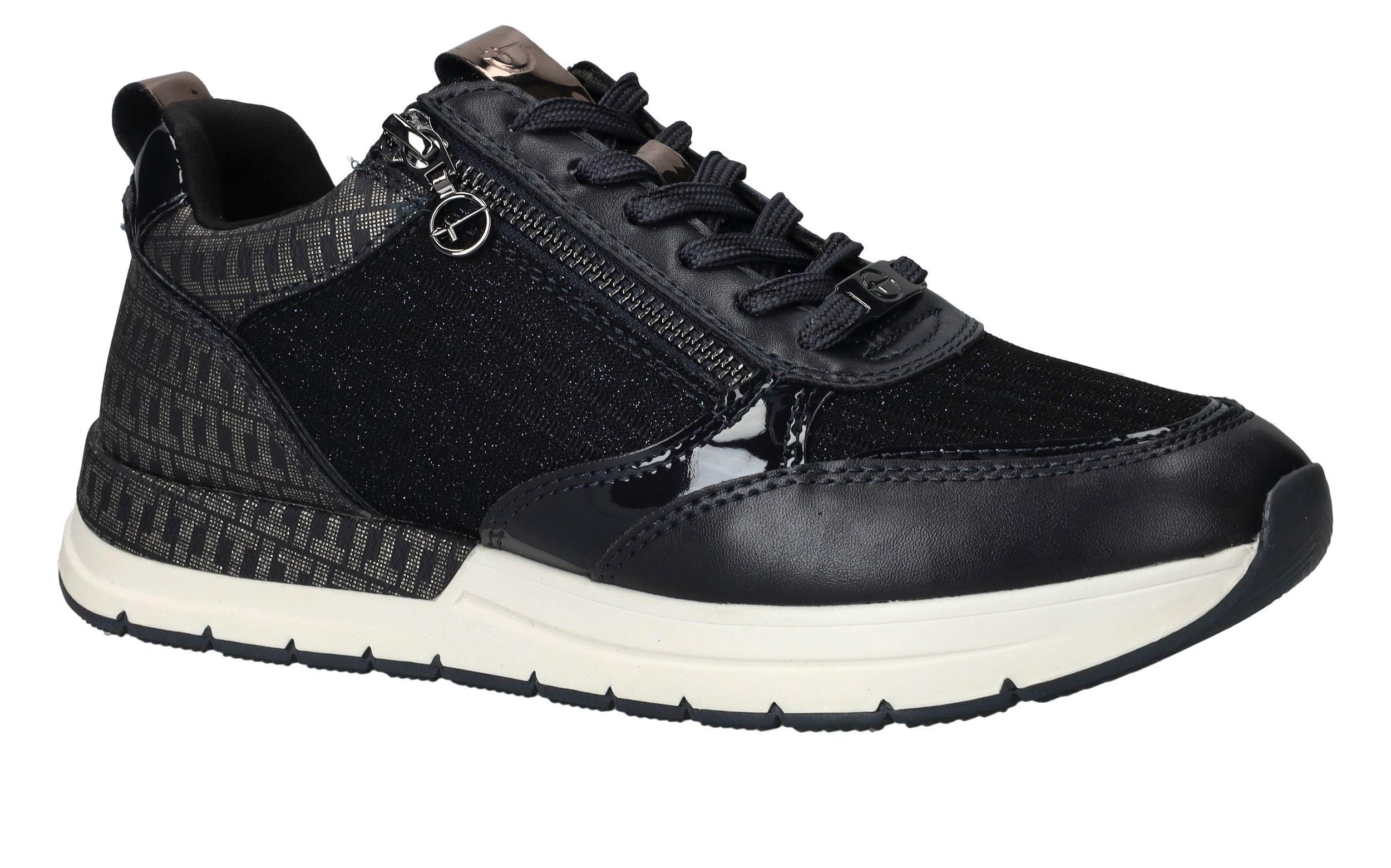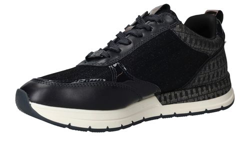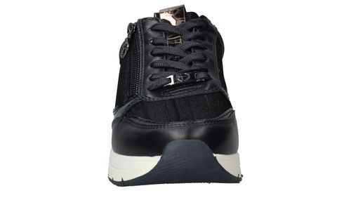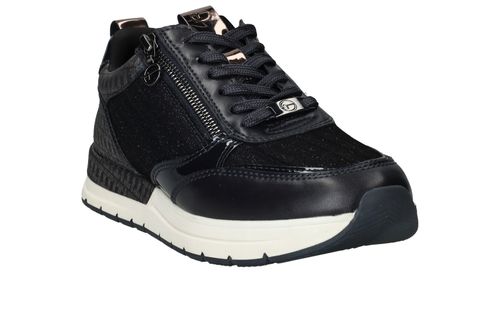 Leuke trendy donkerblauwe sneakers van Tamaris afgewerkt met glitter details. Deze Tamaris sneakers hebben een veter- en ritssluiting.