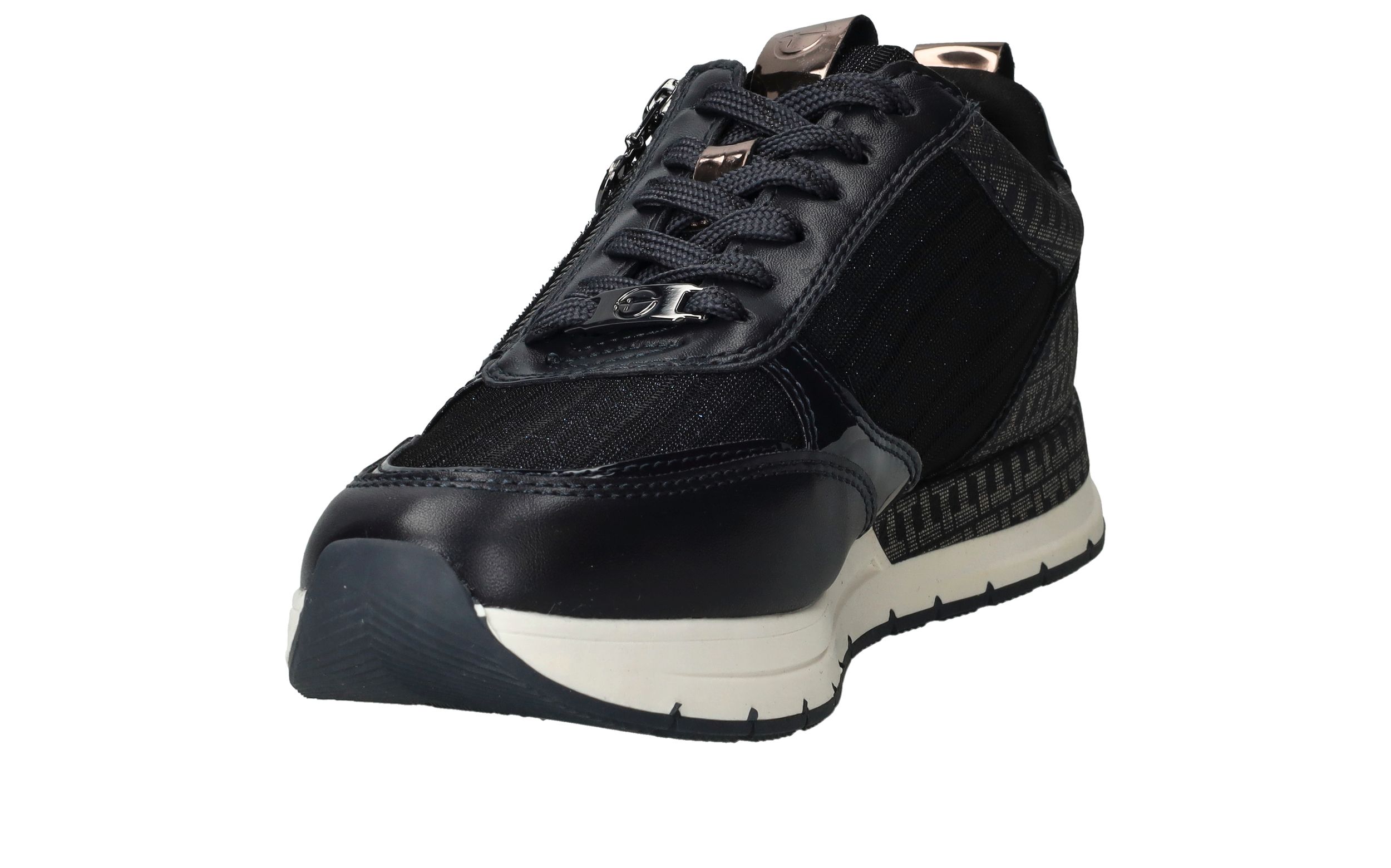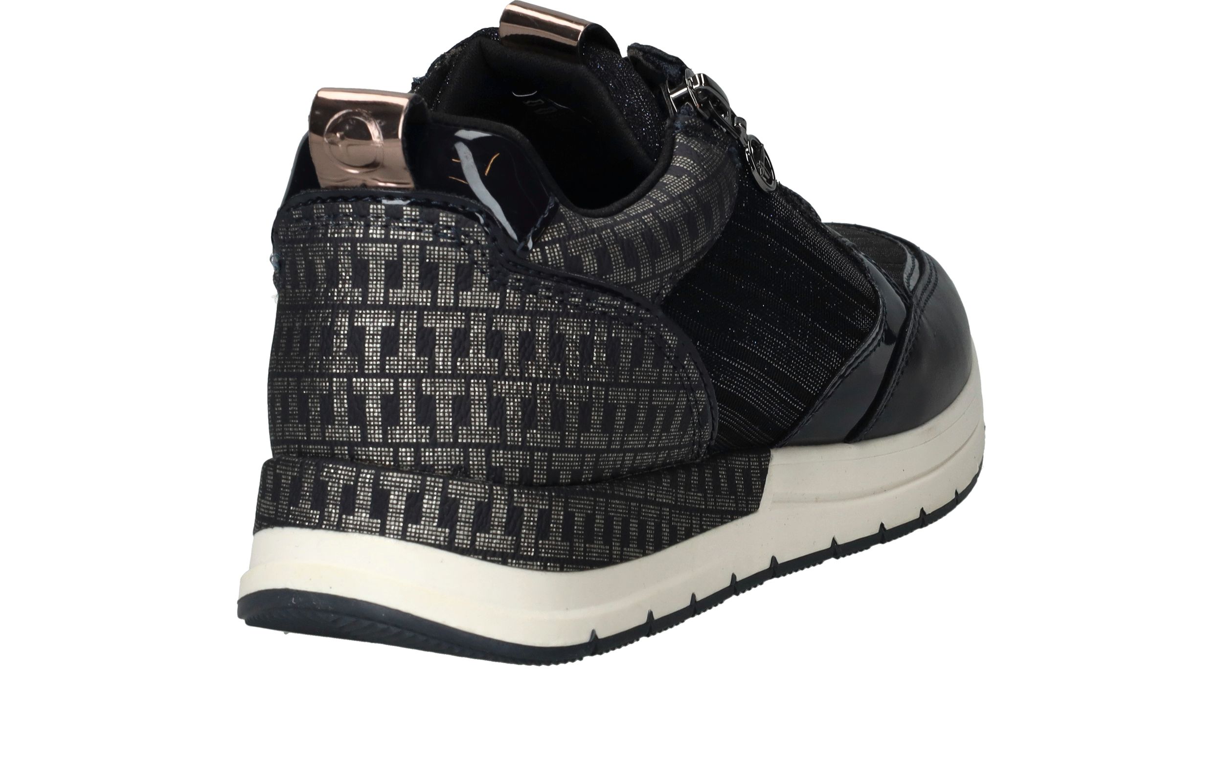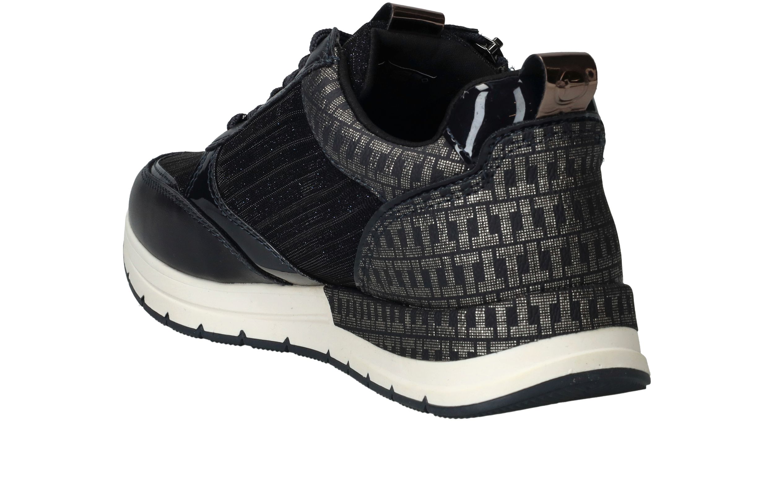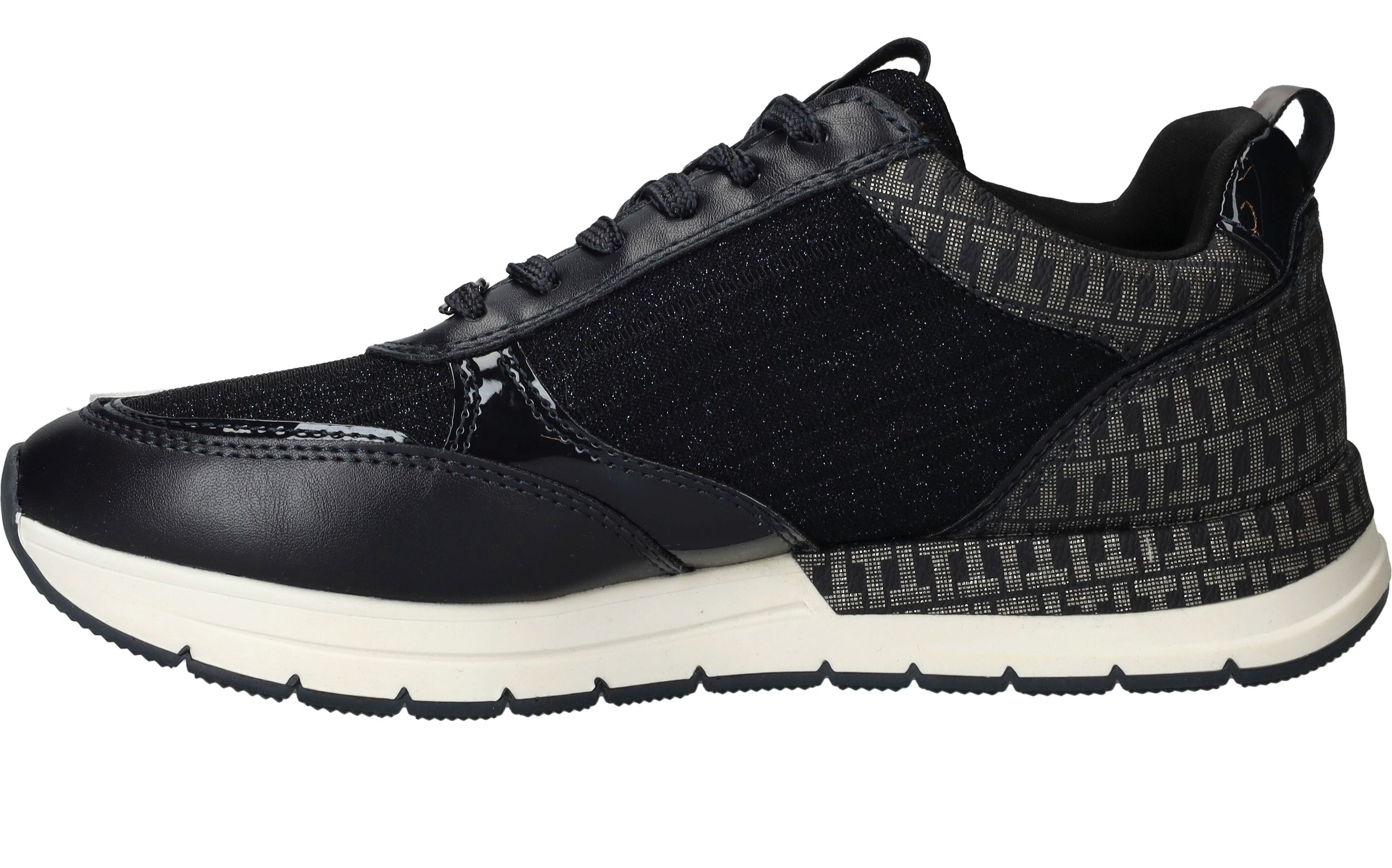 Leuke trendy donkerblauwe sneakers van Tamaris afgewerkt met glitter details. Deze Tamaris sneakers hebben een veter- en ritssluiting.