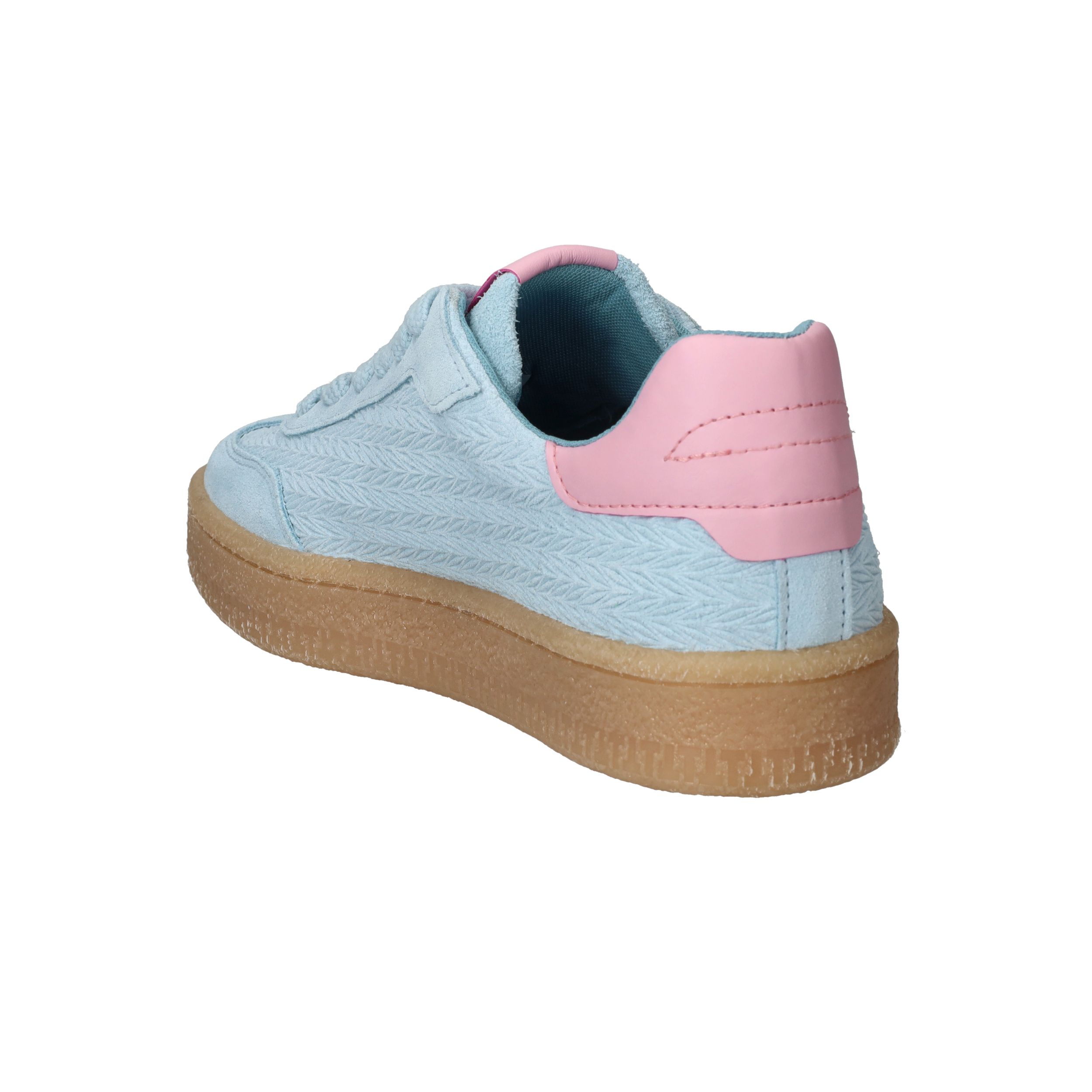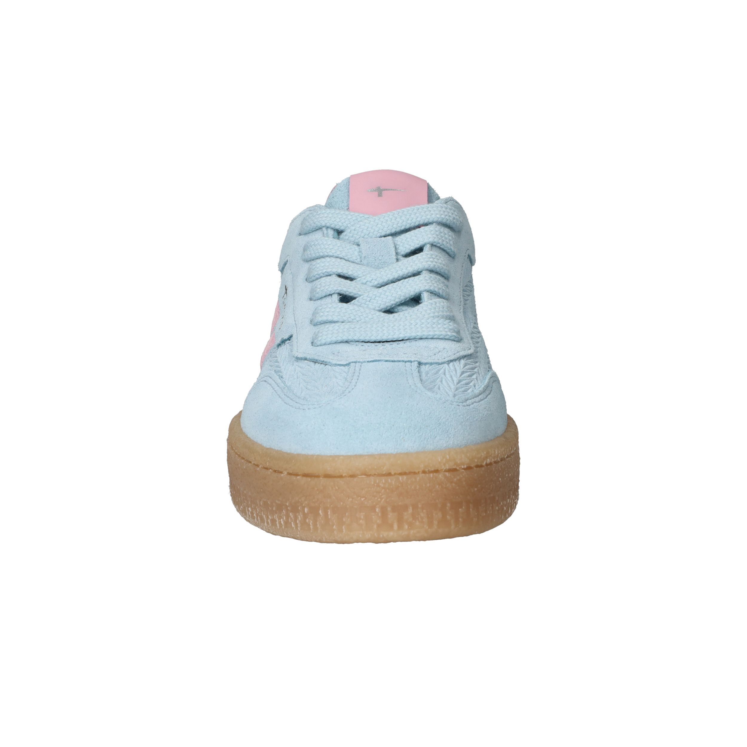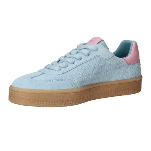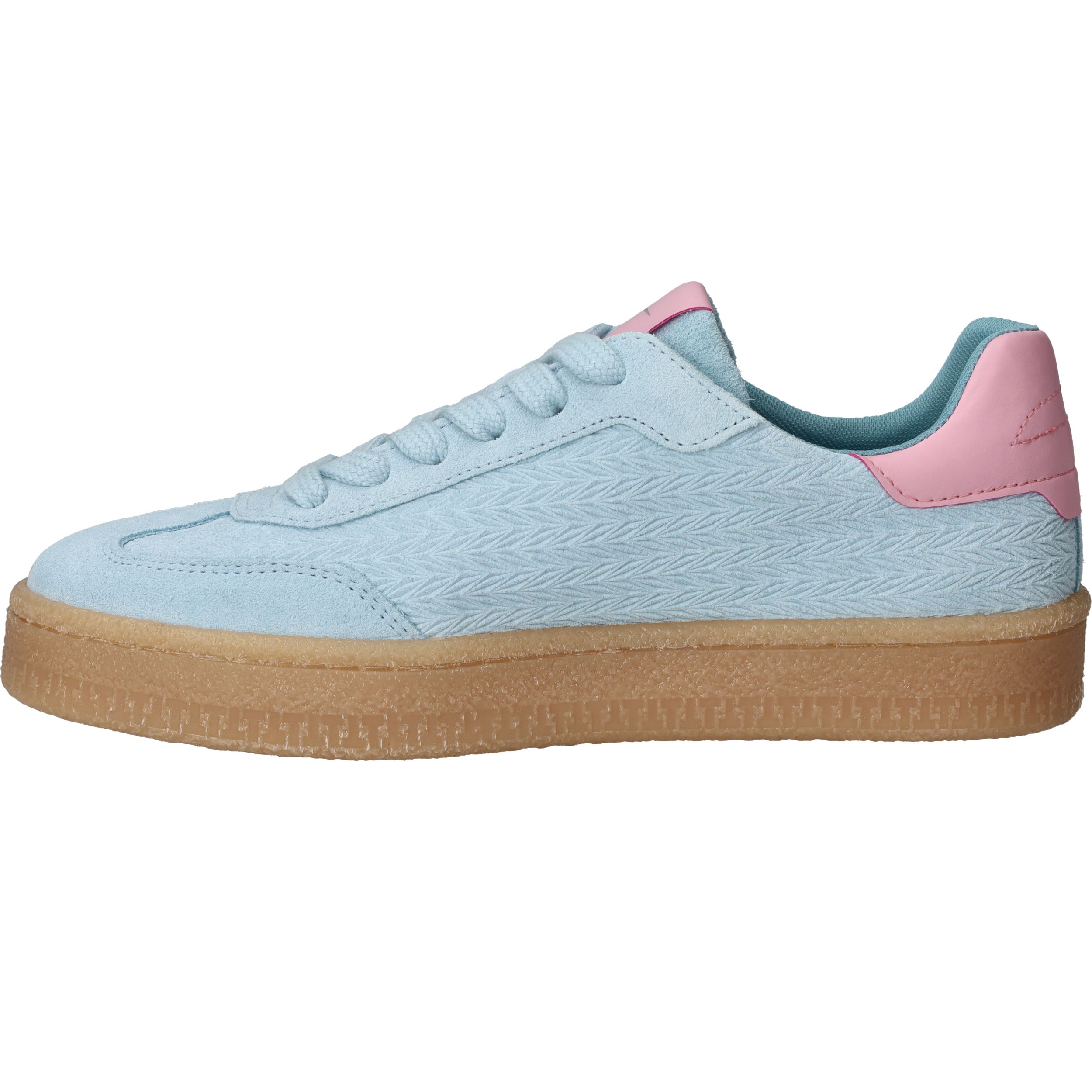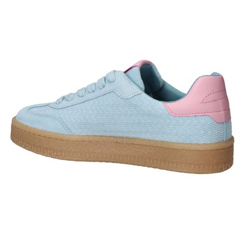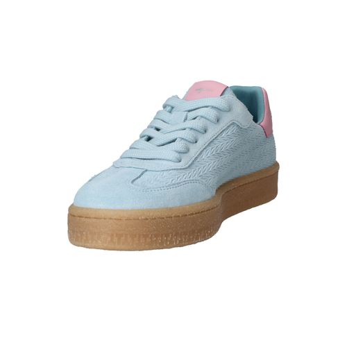 Deze Tamaris sneaker heeft echt een tof reliëf van suède! De damessneaker heeft een gave kleurencombi van lichtblauw en roze.