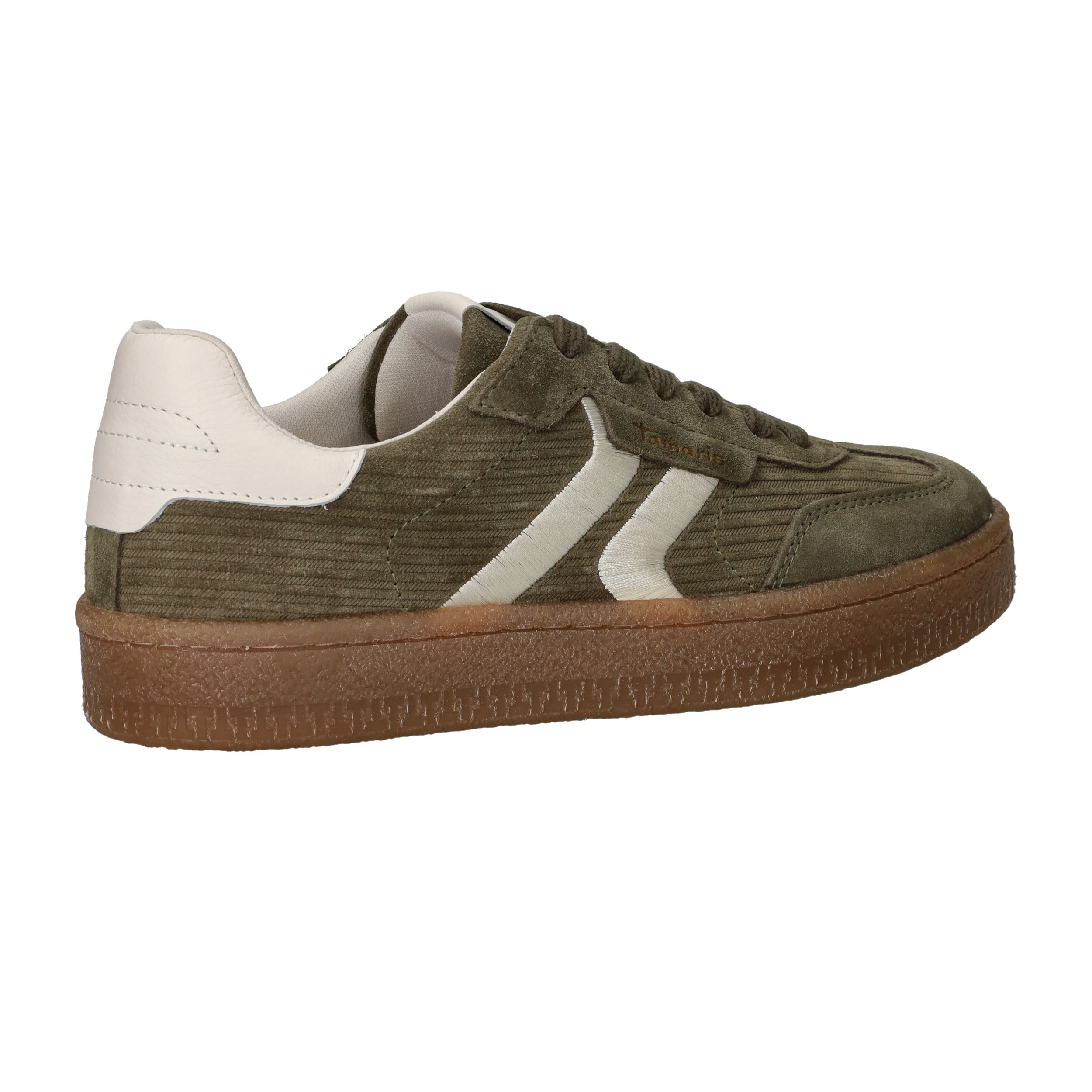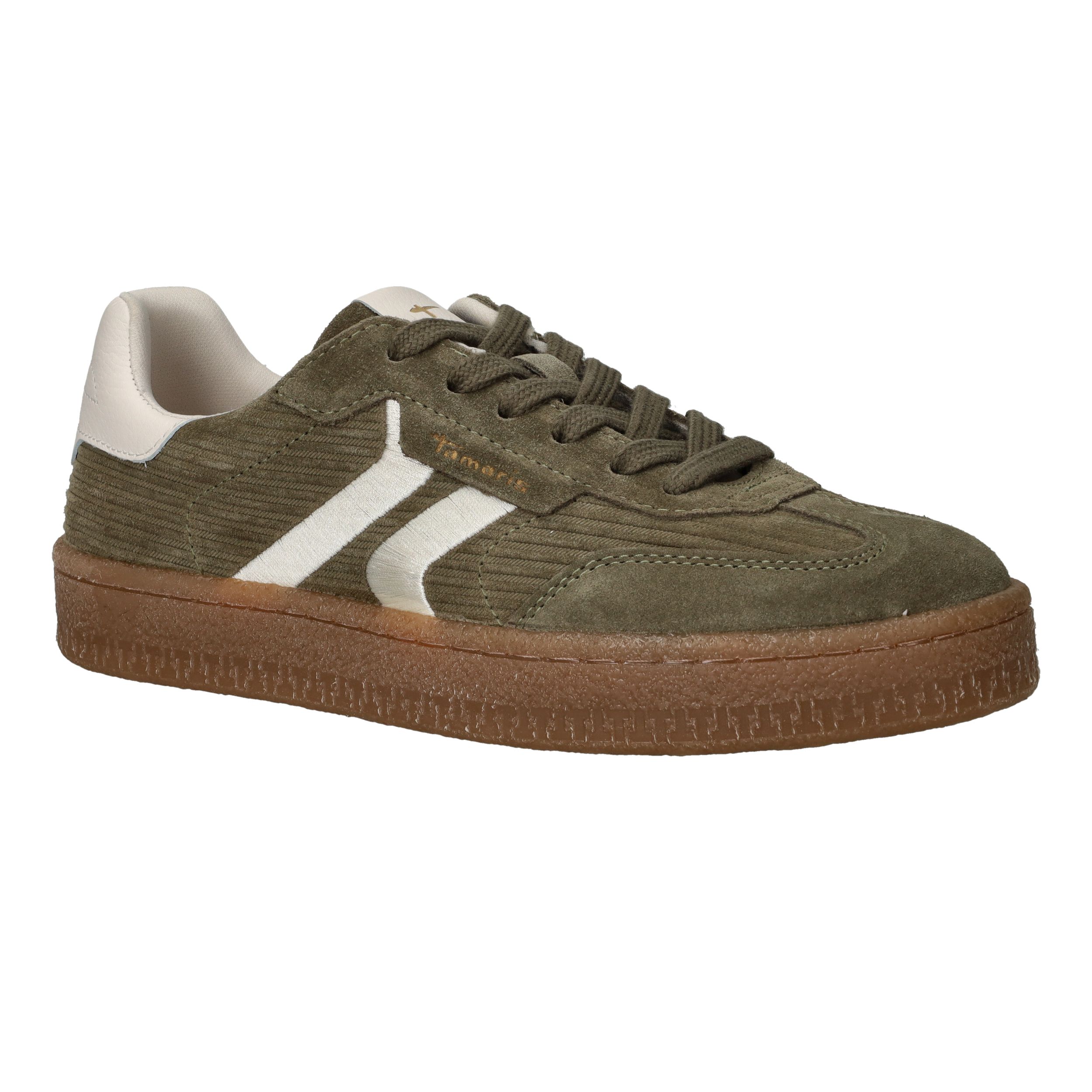 Met deze groene sneakers van Tamaris geef je je outfit een frisse en trendy touch. Het bovenwerk van zacht suède met corduroy-accenten en contrasterende witte details zorgt voor een stoere én vrouwelijke uitstraling. Dankzij het uitneembare voetbed zijn ze ook geschikt voor eigen inlegzolen.