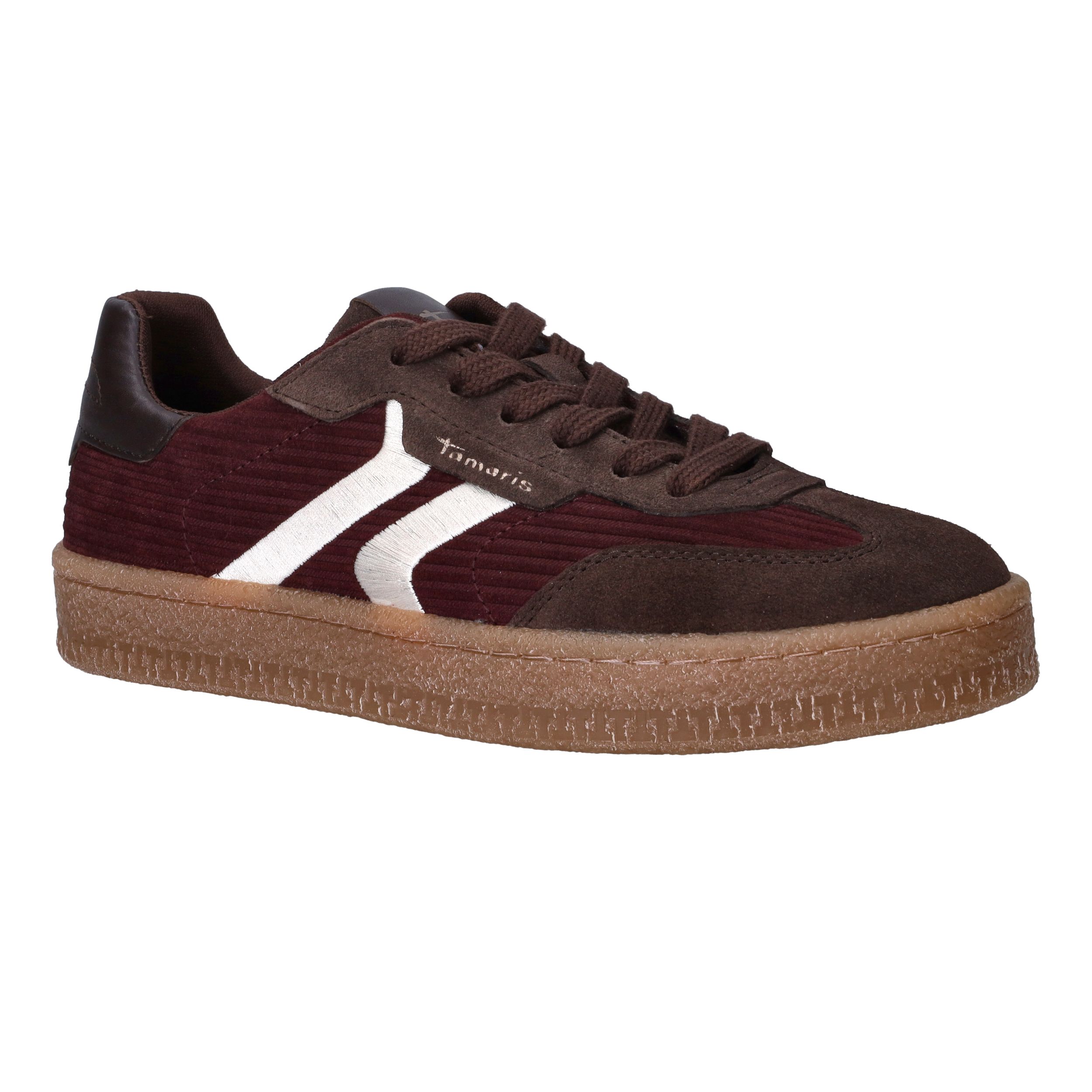 Ga voor een stijlvolle najaarslook met deze bordeaux sneakers van Tamaris. Het rijke suède in combinatie met het corduroy-accent en de witte details maakt deze schoen modieus én comfortabel. Dankzij het uitneembare voetbed kun je ook eenvoudig je eigen inlegzolen gebruiken.