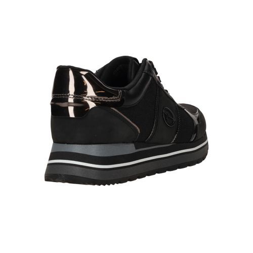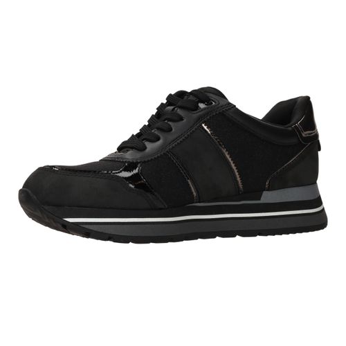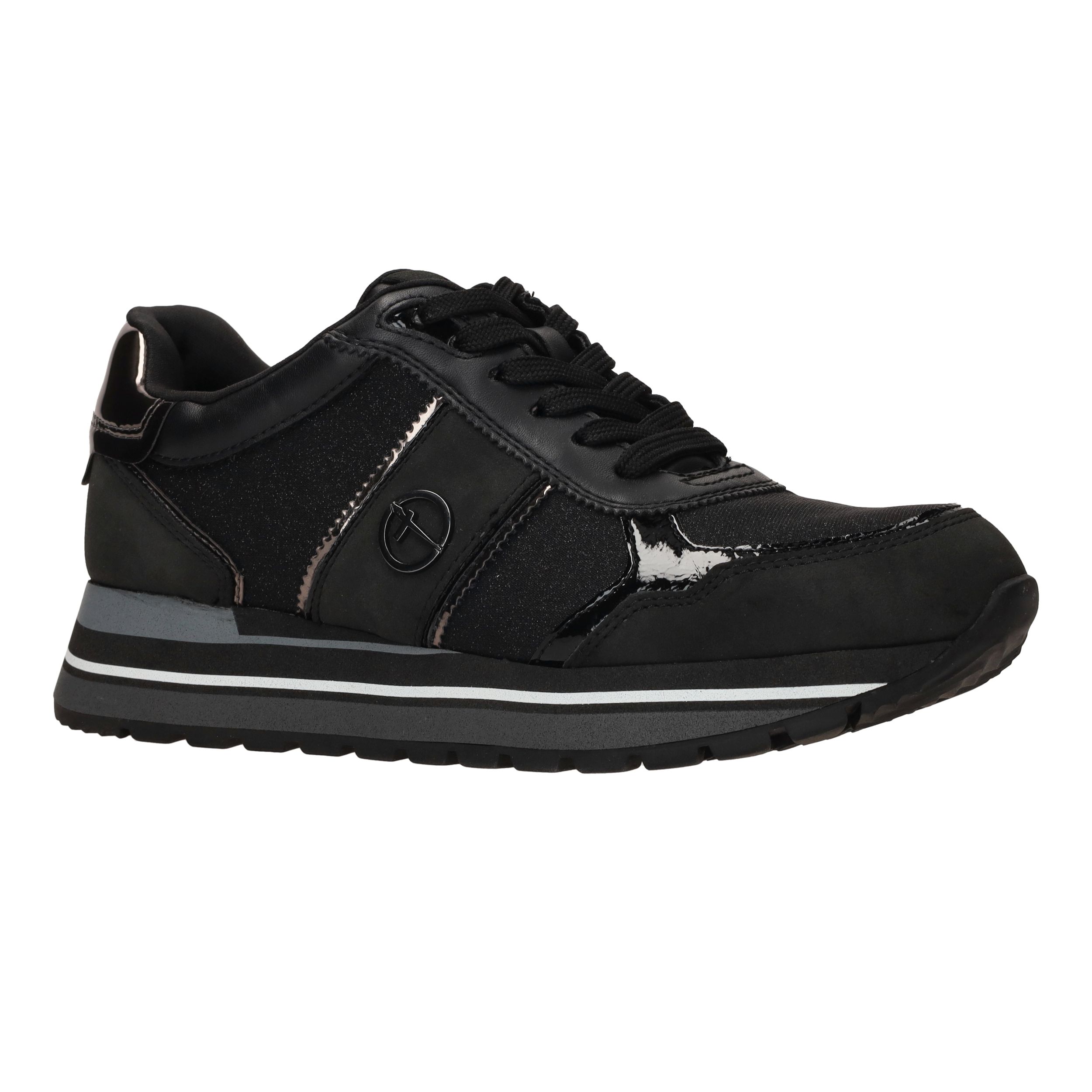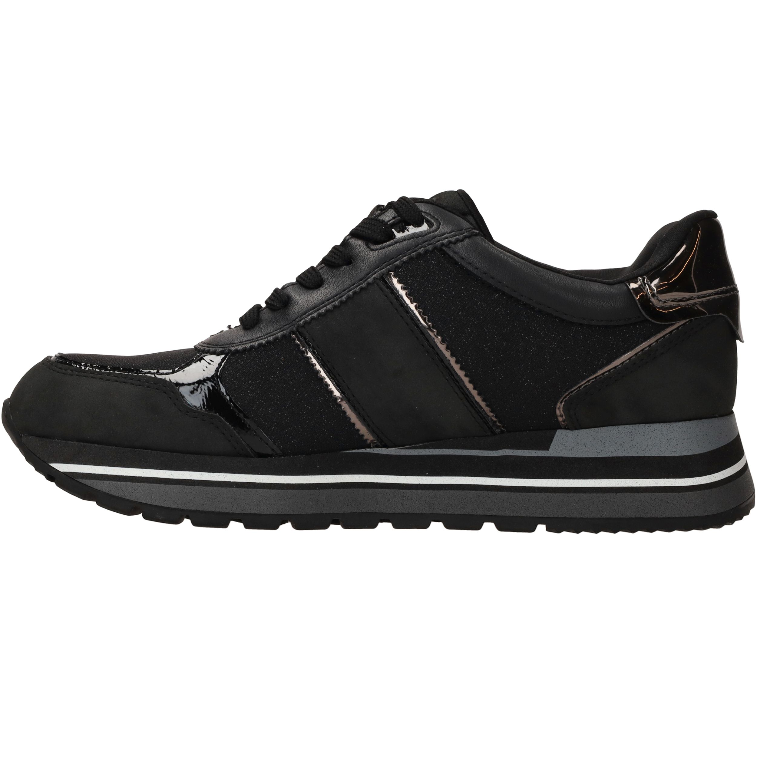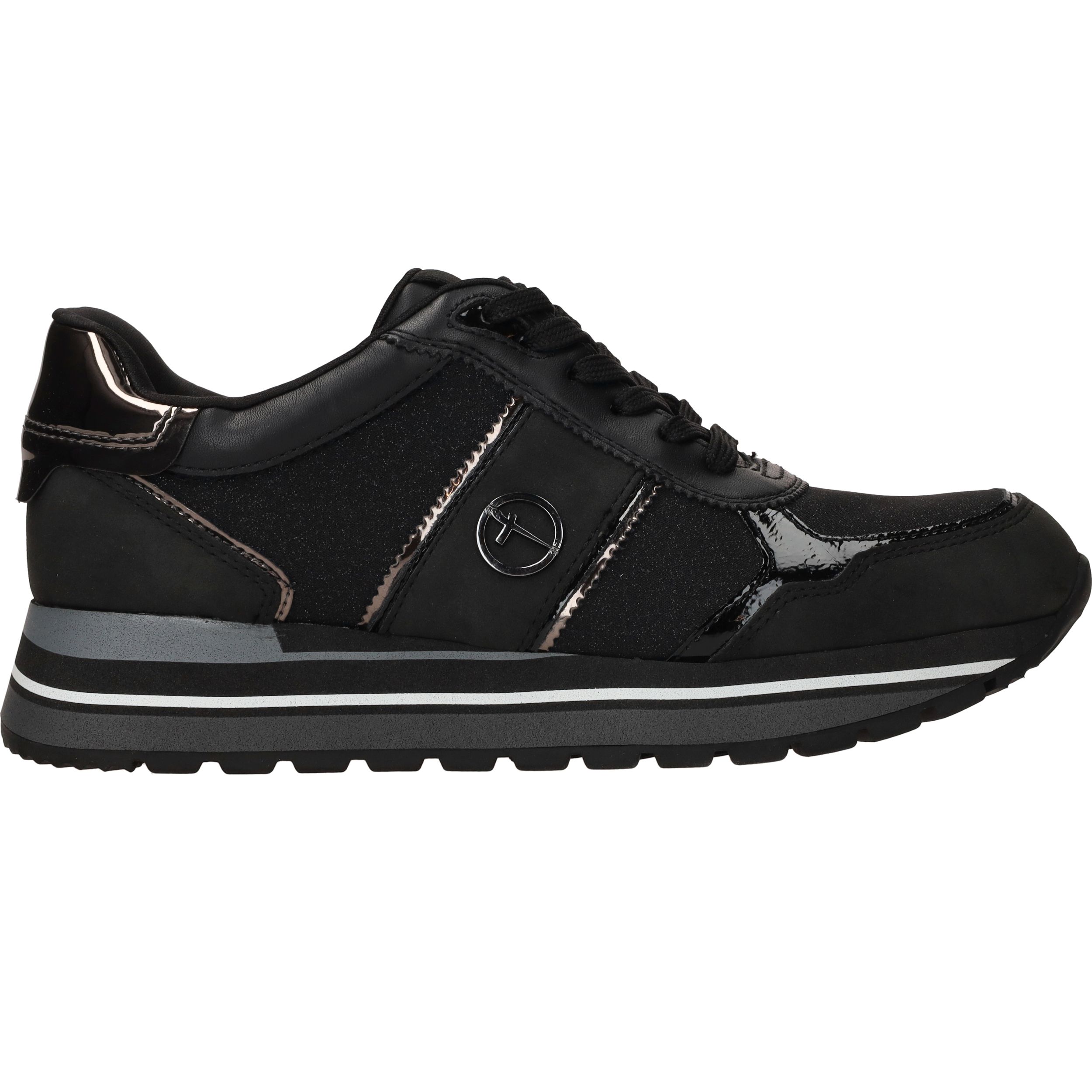 Deze zwarte Tamaris sneakers combineren een sportieve look met dagelijks comfort. Het bovenwerk van kunstleer en textiel zorgt voor een trendy uitstraling en een lichte, flexibele pasvorm. Dankzij de comfortabele voering van textiel voelen ze prettig aan, zelfs bij langdurig dragen. Perfect voor dames die graag casual en stijlvol voor de dag komen.