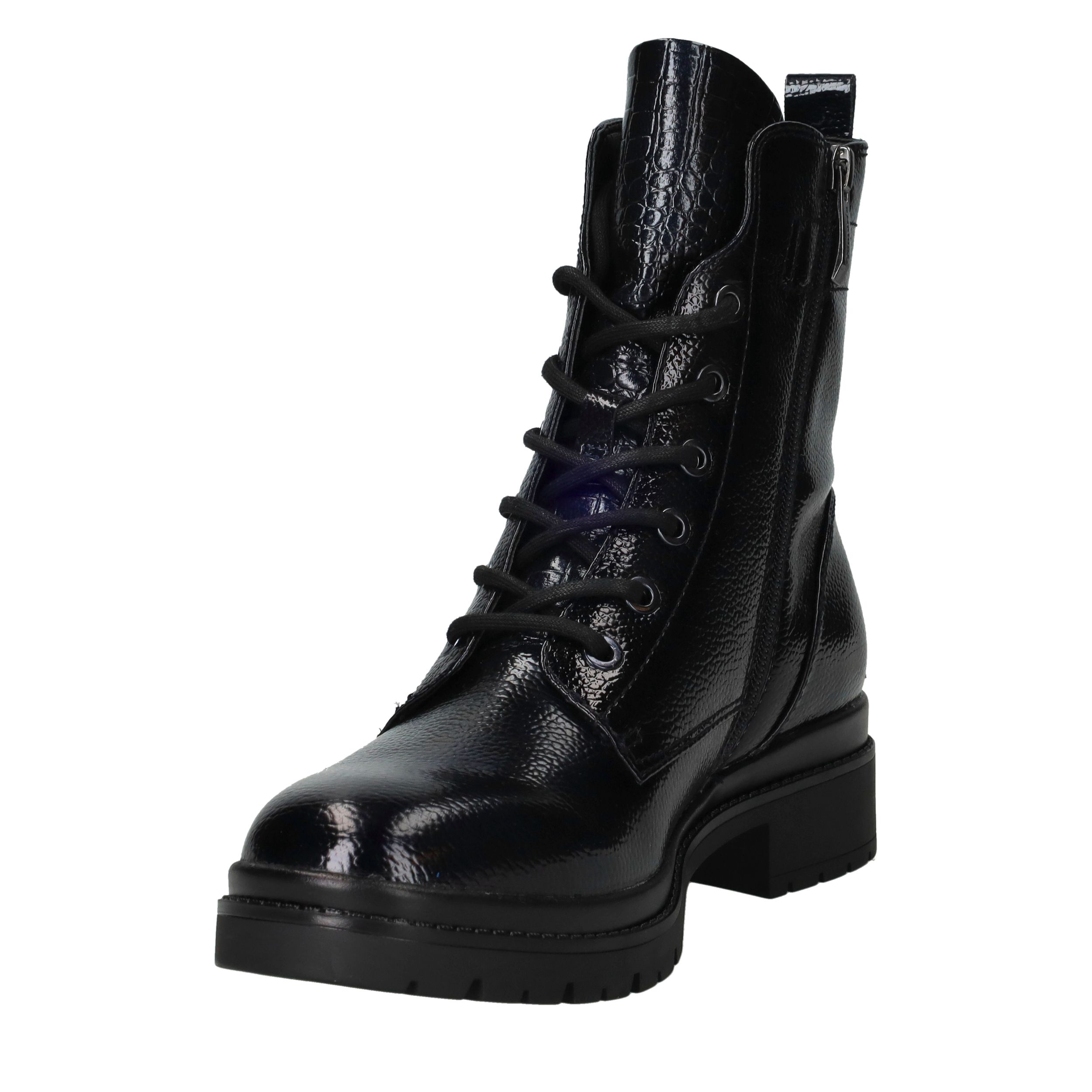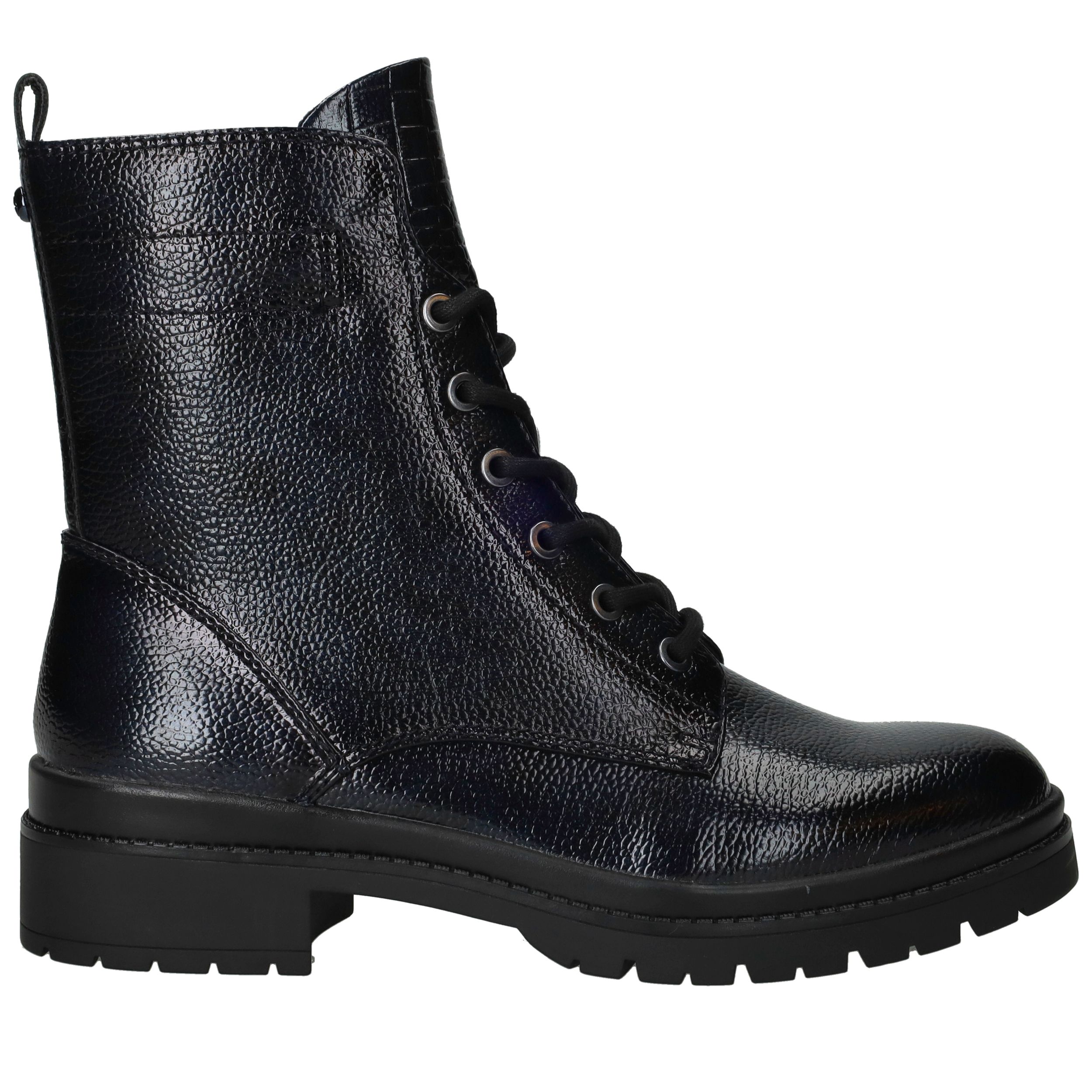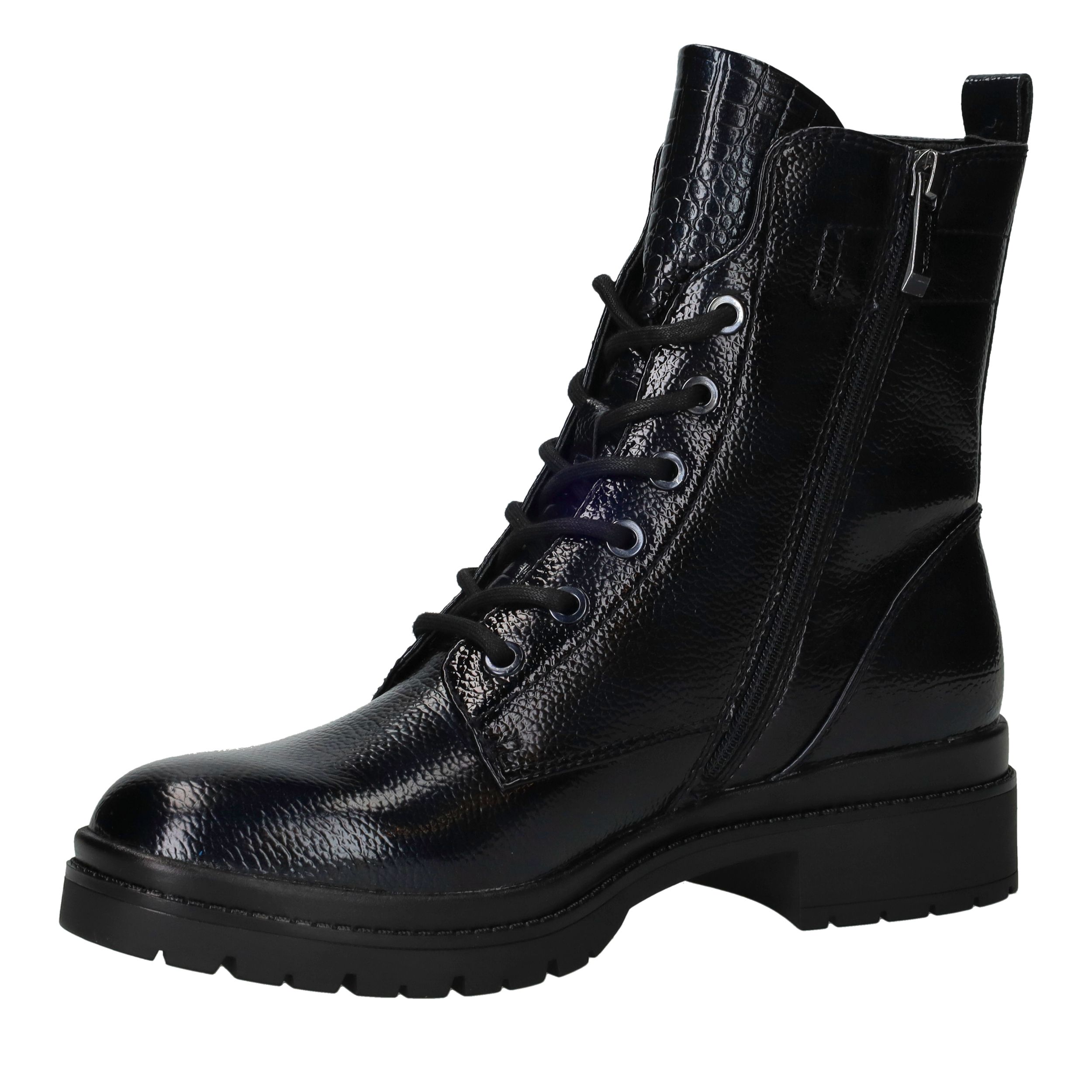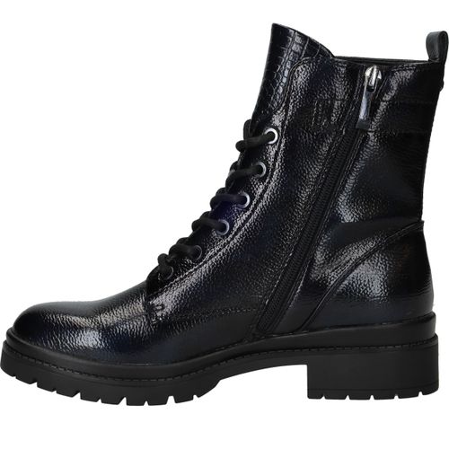Deze stoere Tamaris boots in donkerblauw kunstleer zijn een modieuze en veelzijdige keuze. De glanzende afwerking geeft de schoenen een luxe uitstraling, terwijl de stevige profielzool zorgt voor grip en stabiliteit. Dankzij de comfortabele voetbreedte G geniet je de hele dag van een fijne pasvorm. Ideaal voor dames die graag stijl en comfort combineren.