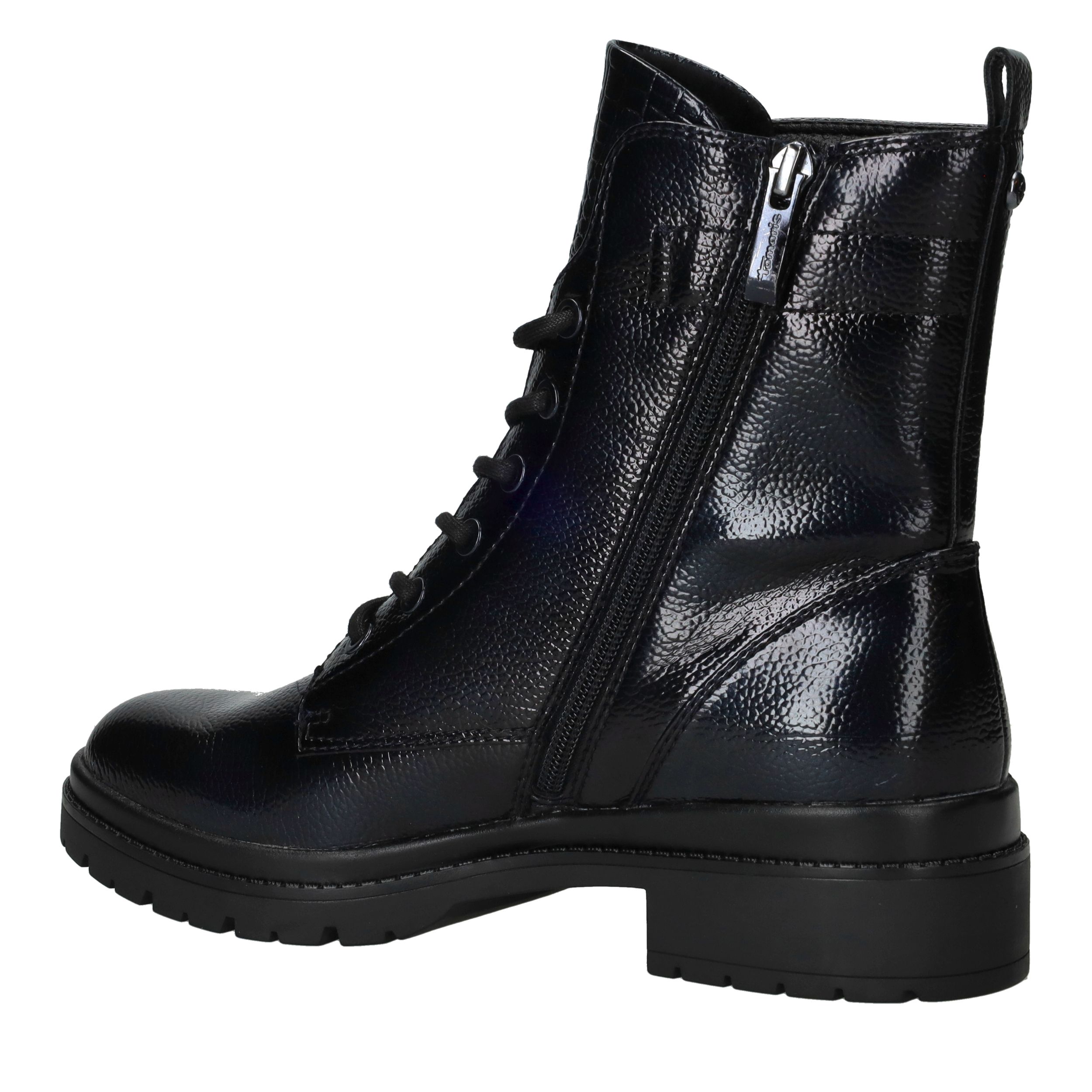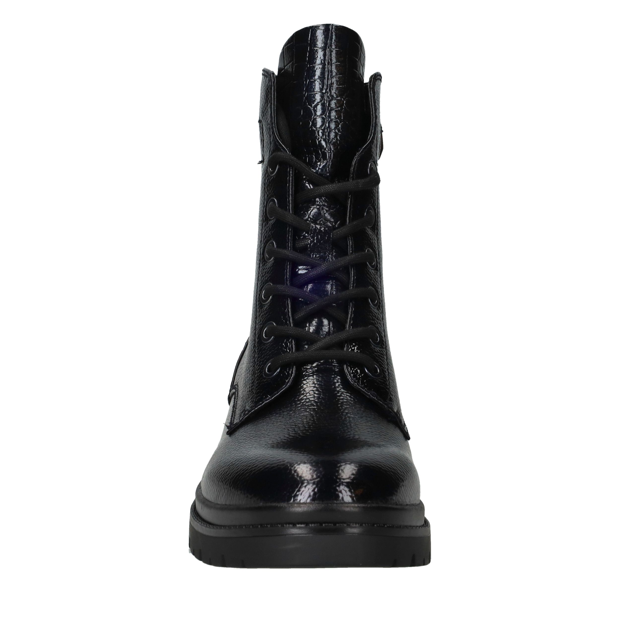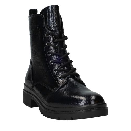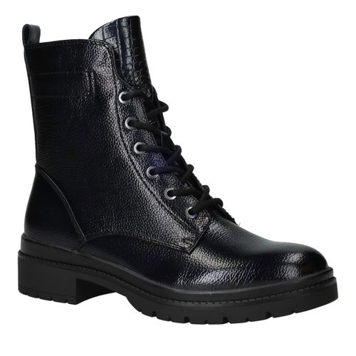 Deze stoere Tamaris boots in donkerblauw kunstleer zijn een modieuze en veelzijdige keuze. De glanzende afwerking geeft de schoenen een luxe uitstraling, terwijl de stevige profielzool zorgt voor grip en stabiliteit. Dankzij de comfortabele voetbreedte G geniet je de hele dag van een fijne pasvorm. Ideaal voor dames die graag stijl en comfort combineren.