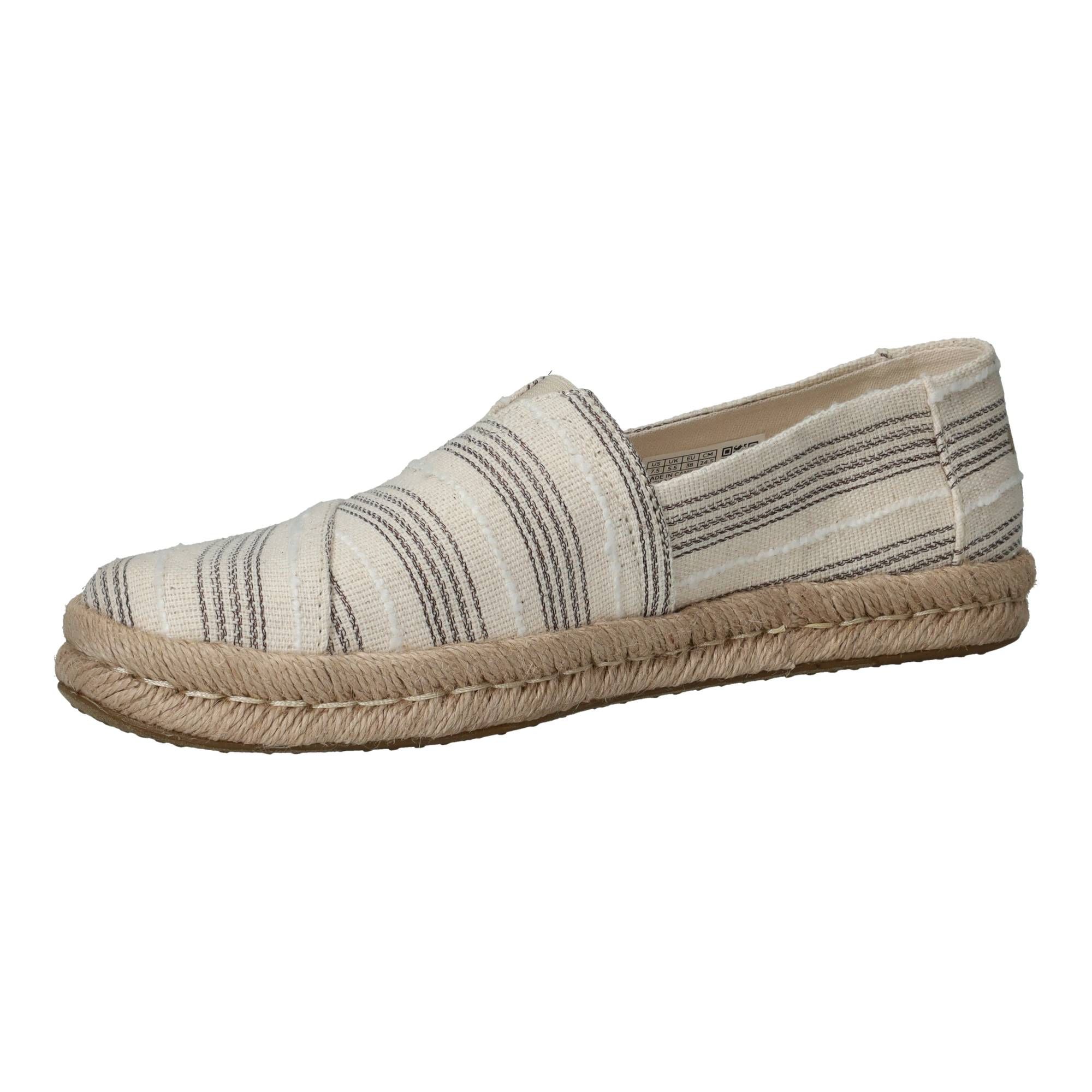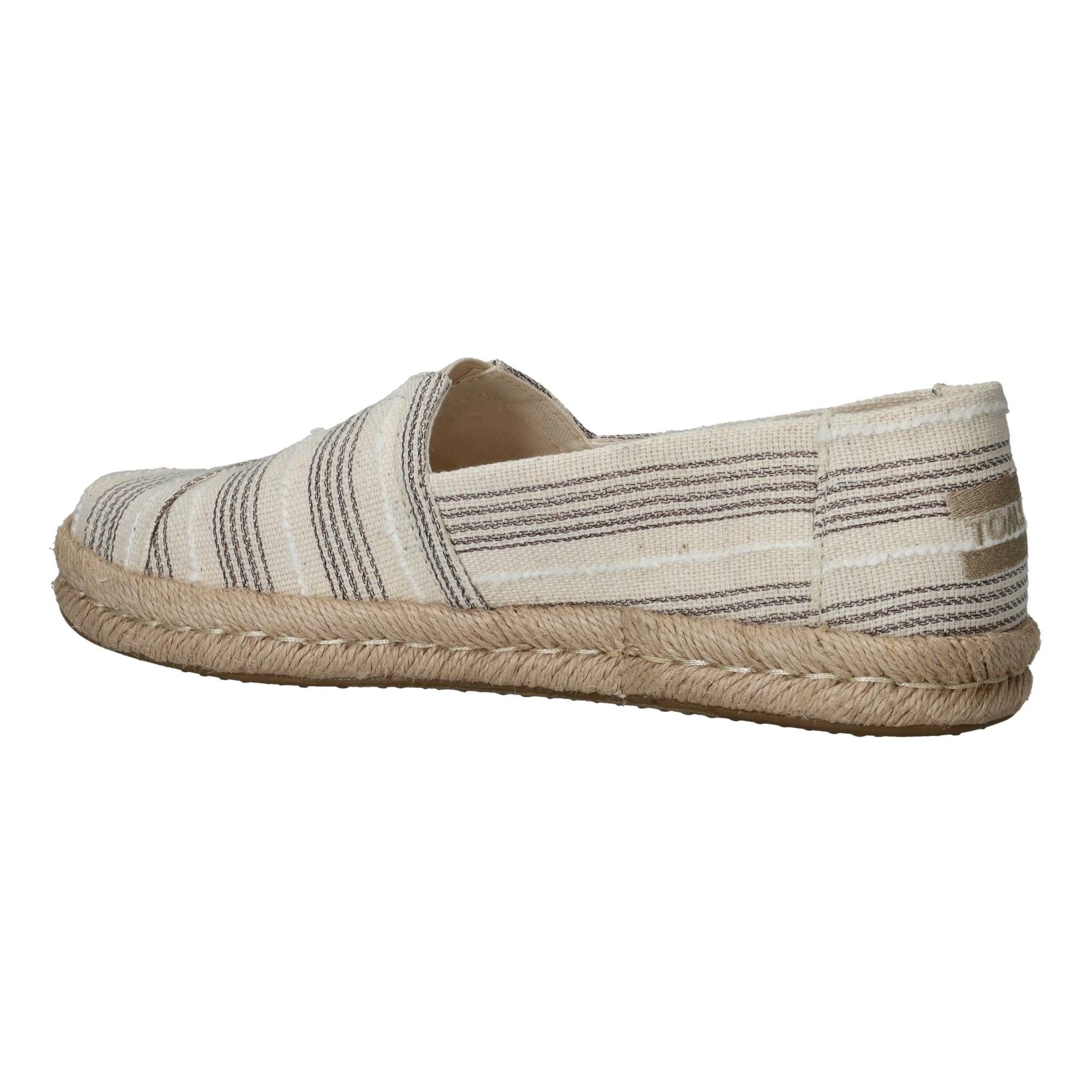 Deze Toms instapper voor dames in beige is een stijlvolle en comfortabele keuze voor warme dagen. Het eenvoudige design in combinatie met de kenmerkende espadrille zool zorgt voor een luchtige en zomerse uitstraling. De zachte beige tint geeft de schoen een rustige, elegante look die makkelijk te combineren is met zowel casual als iets nettere outfits.
